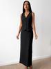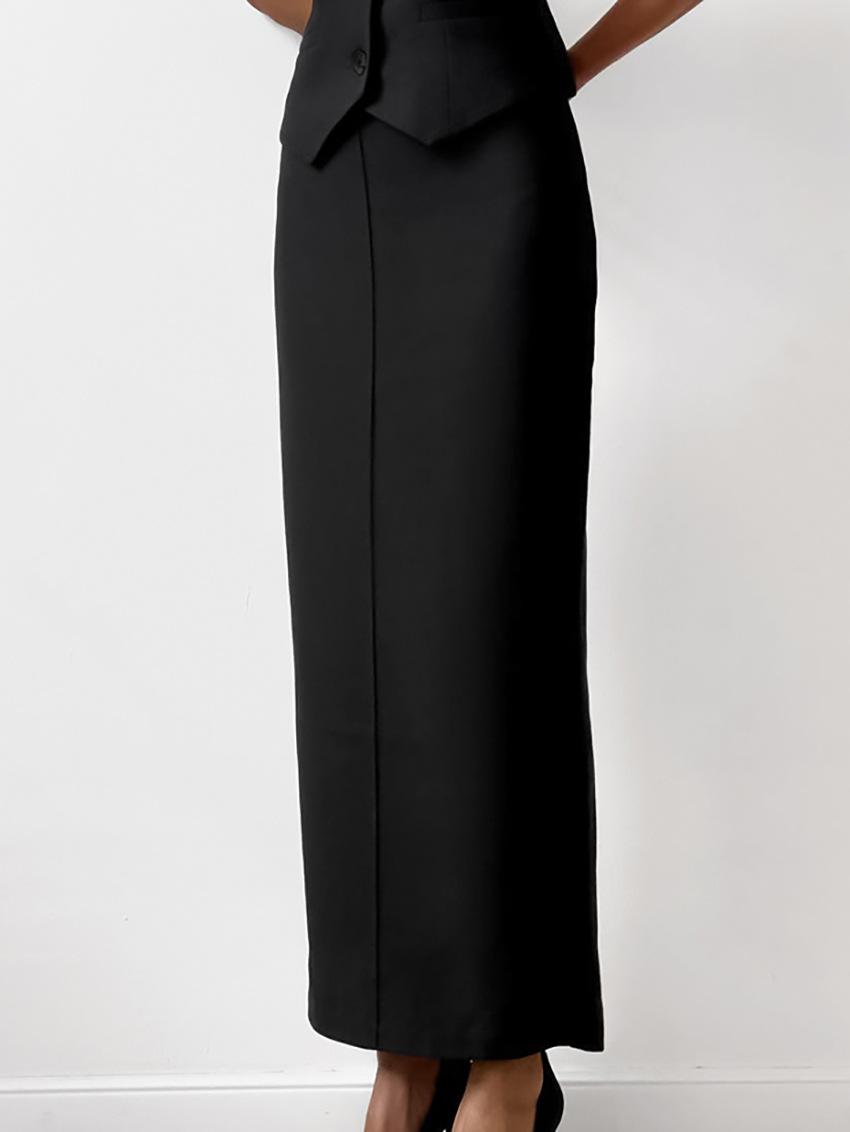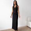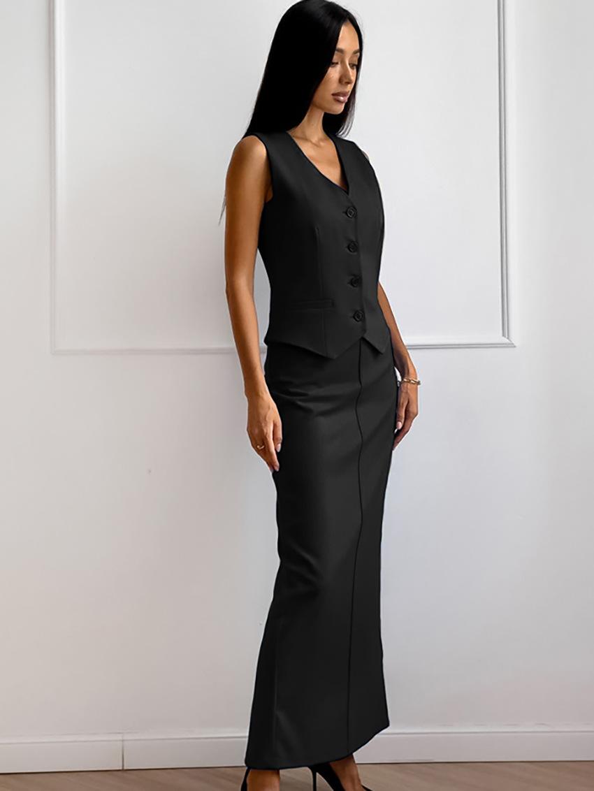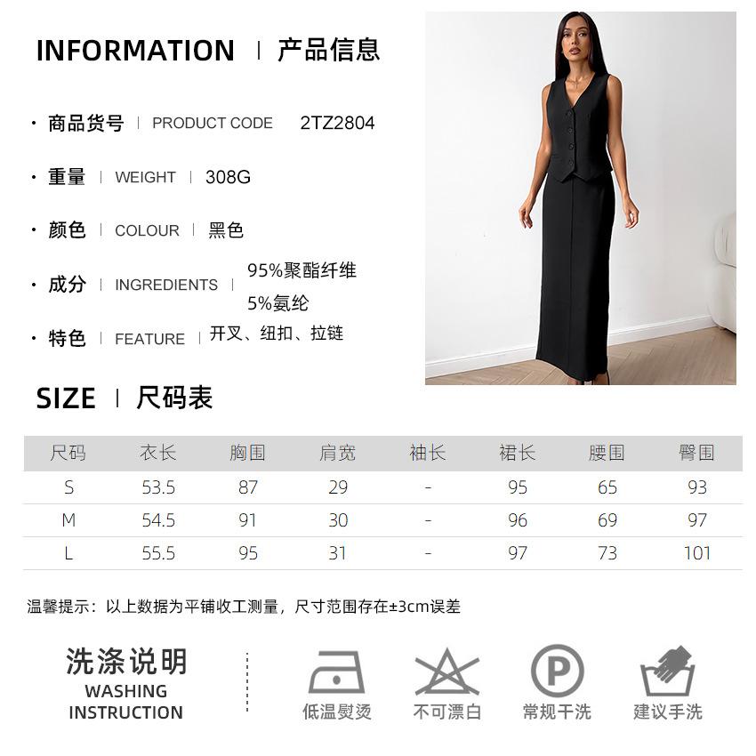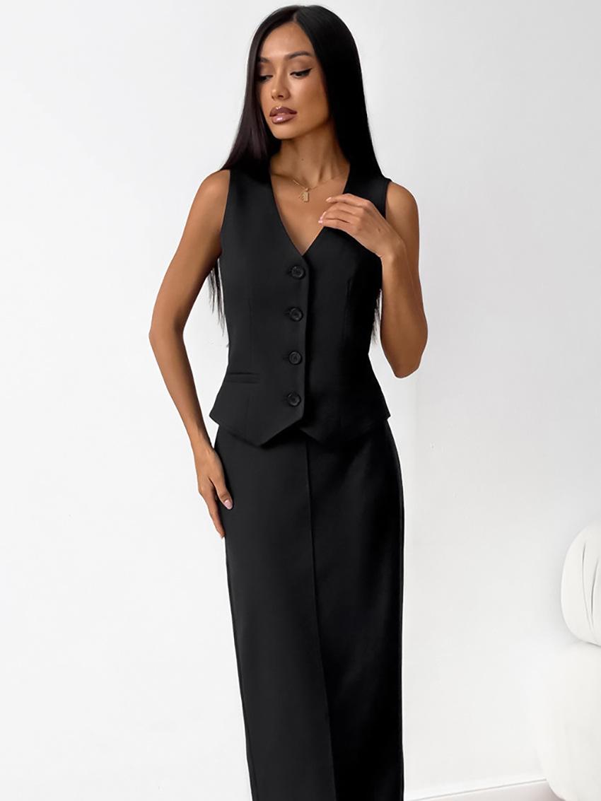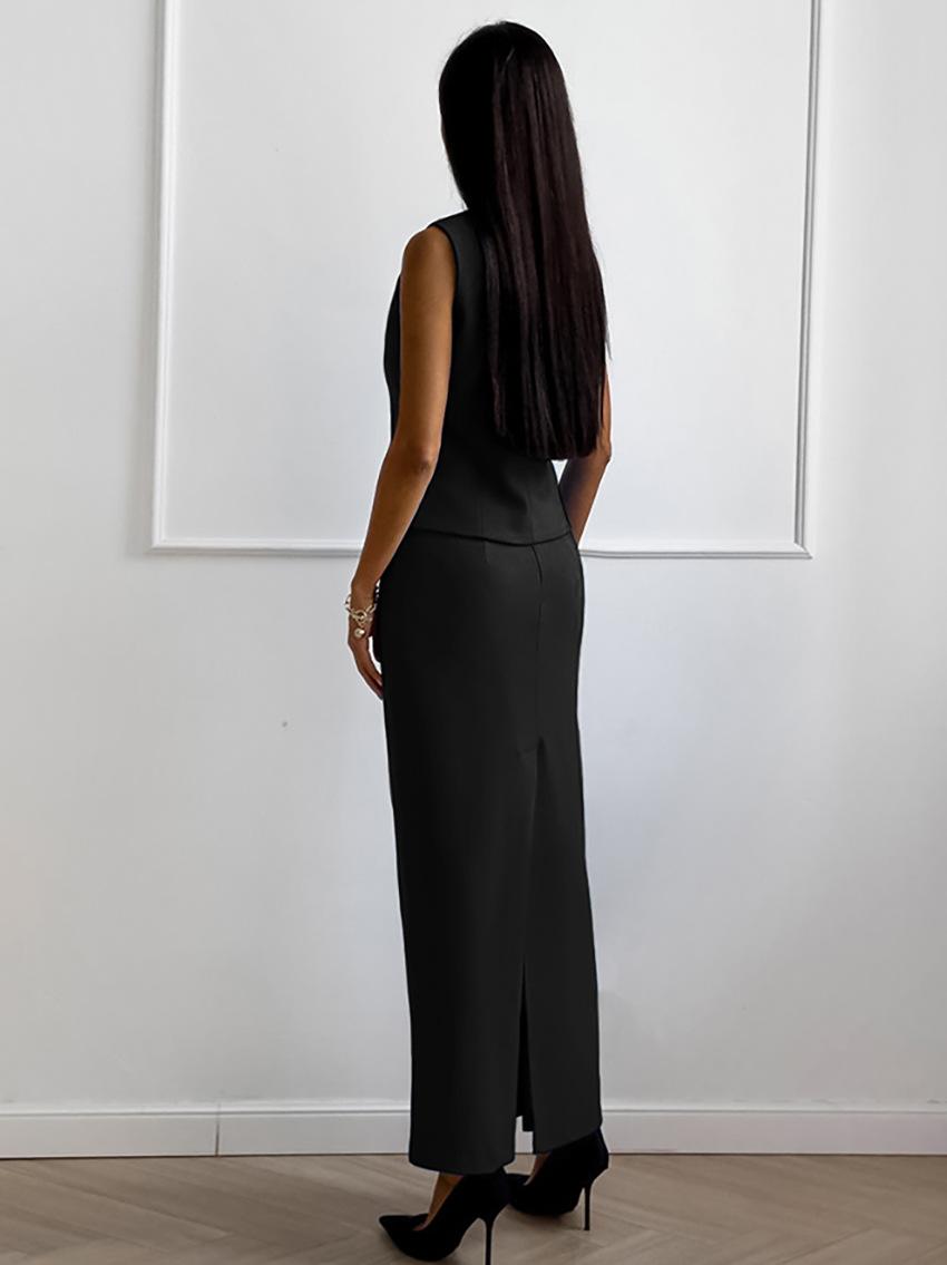 Traje casual negro sencillo dividido con diseño europeo y americano, nuevo traje de dos piezas ajustado de verano y otoño 2024.