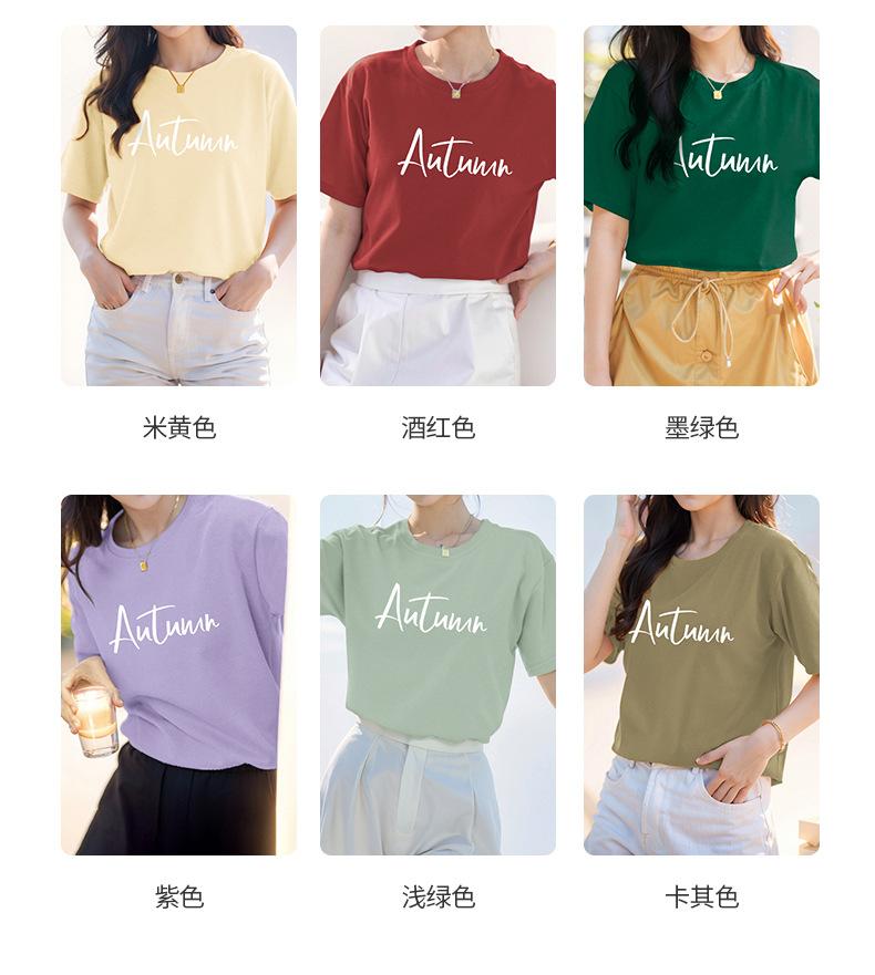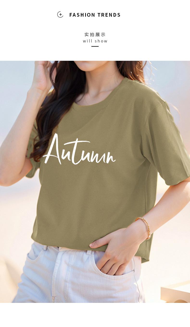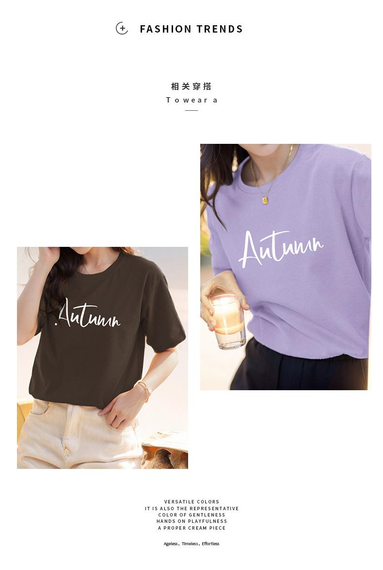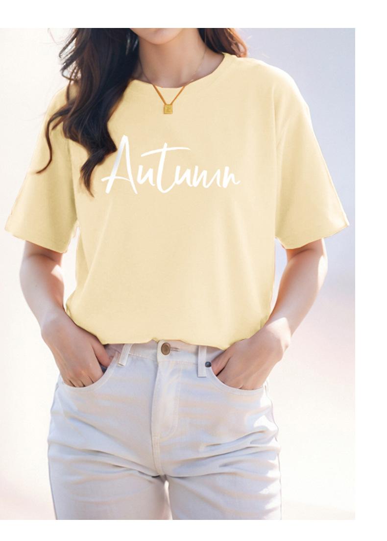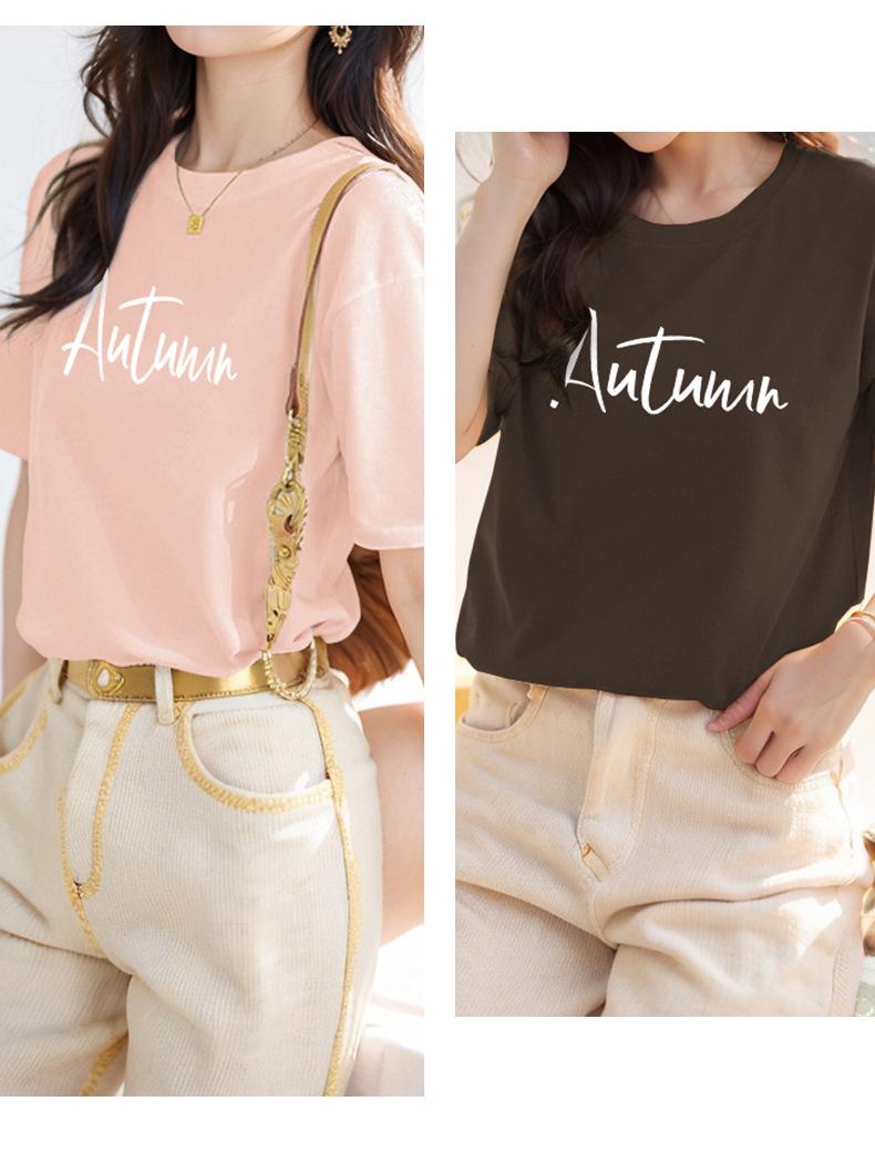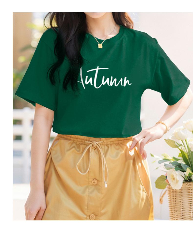 Camiseta de algodón grueso de 260 g para mujer, de manga corta, con estampado de letras, estilo occidental, de verano, de media manga.