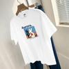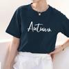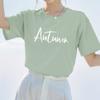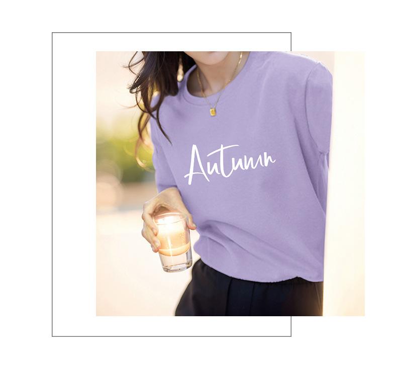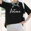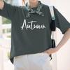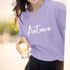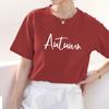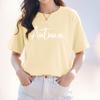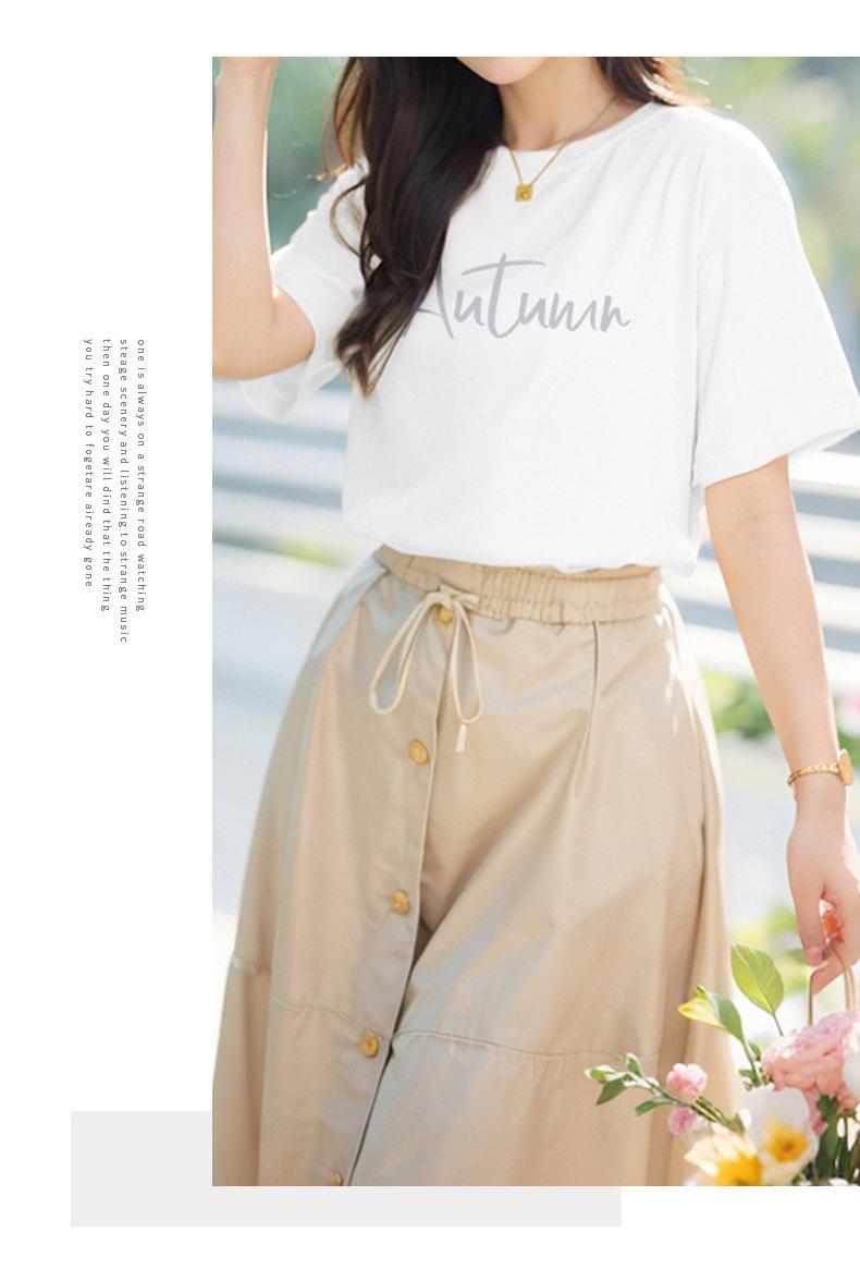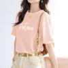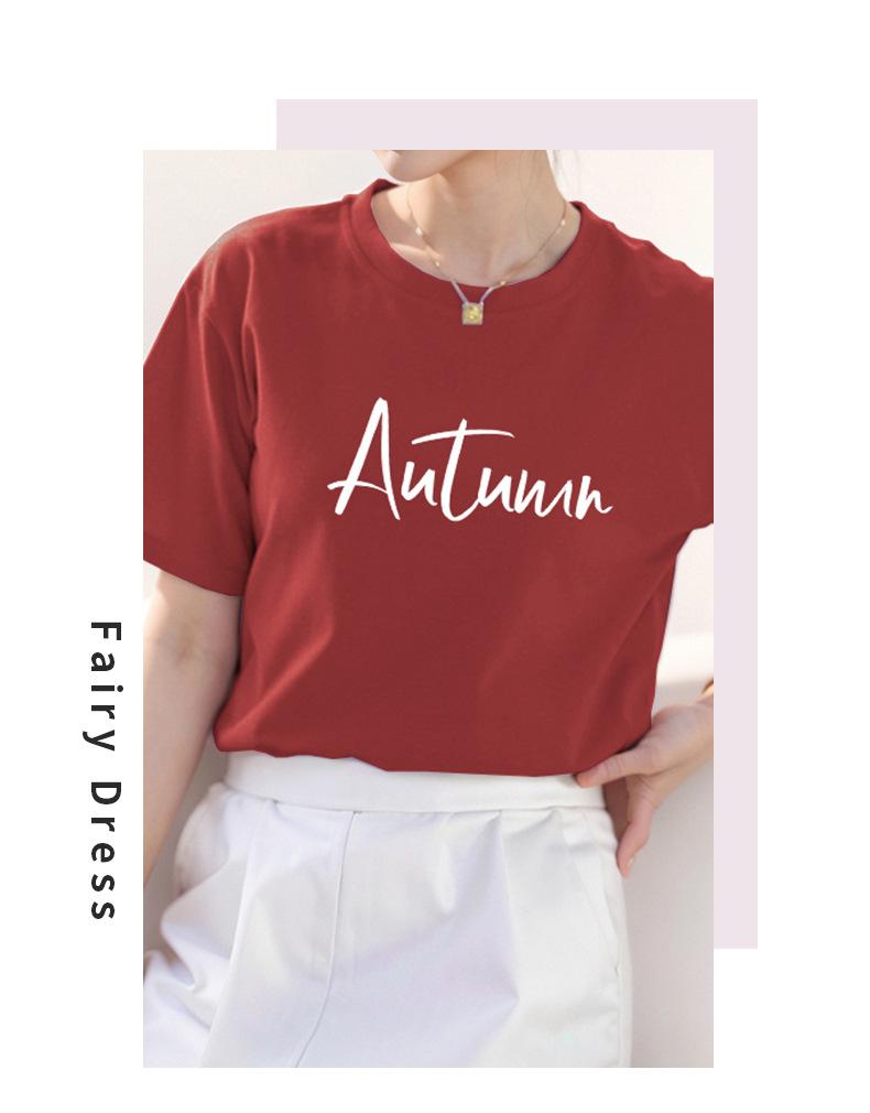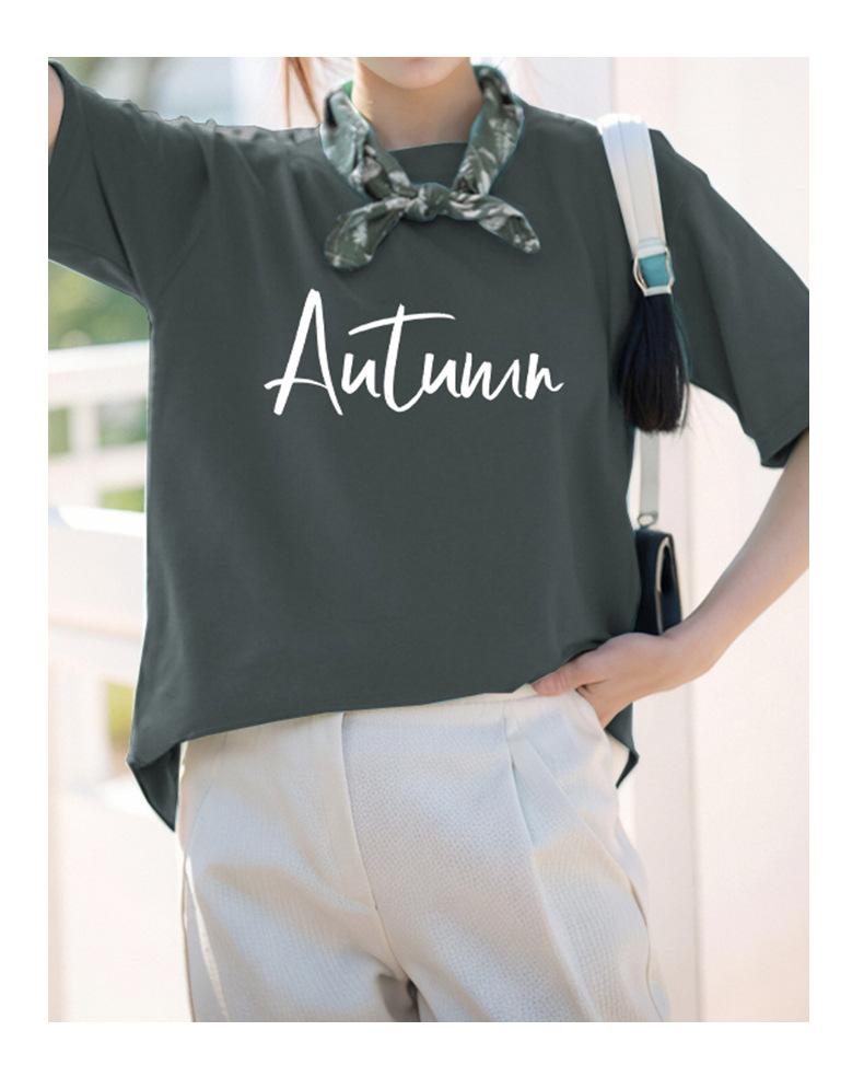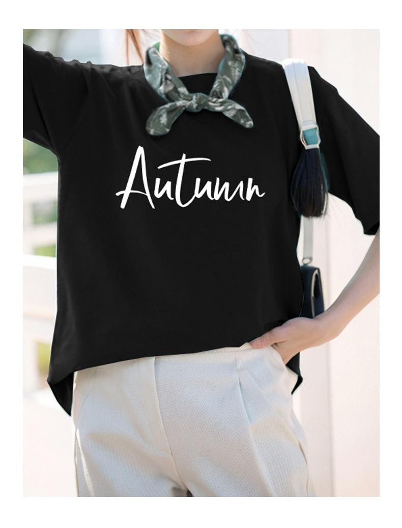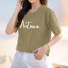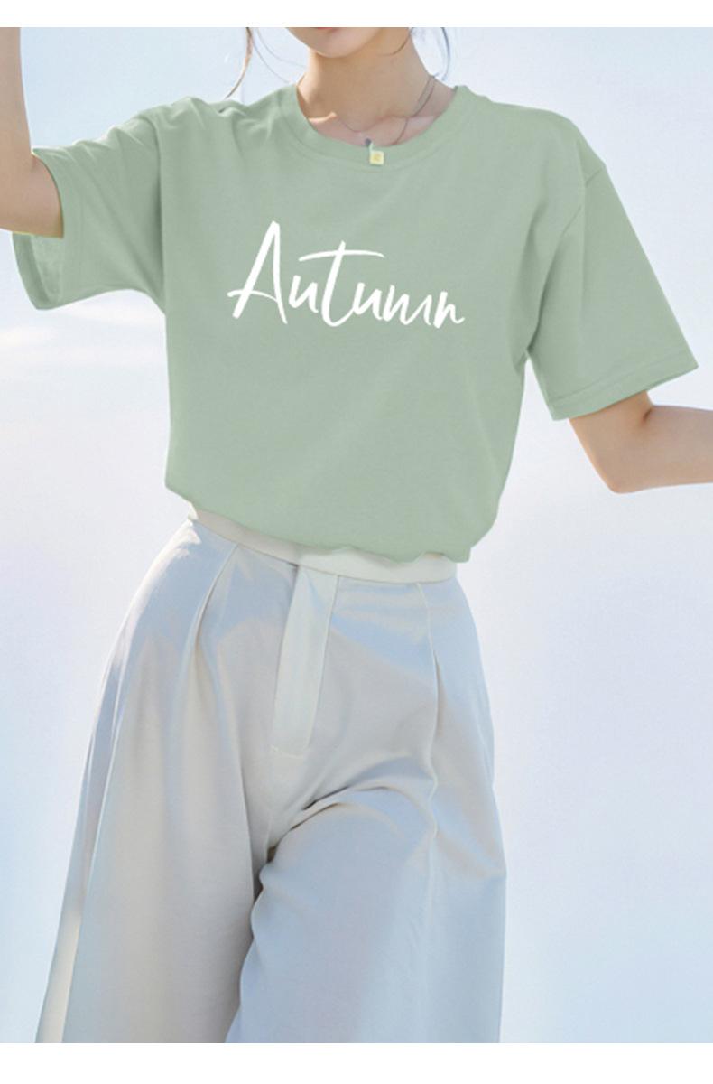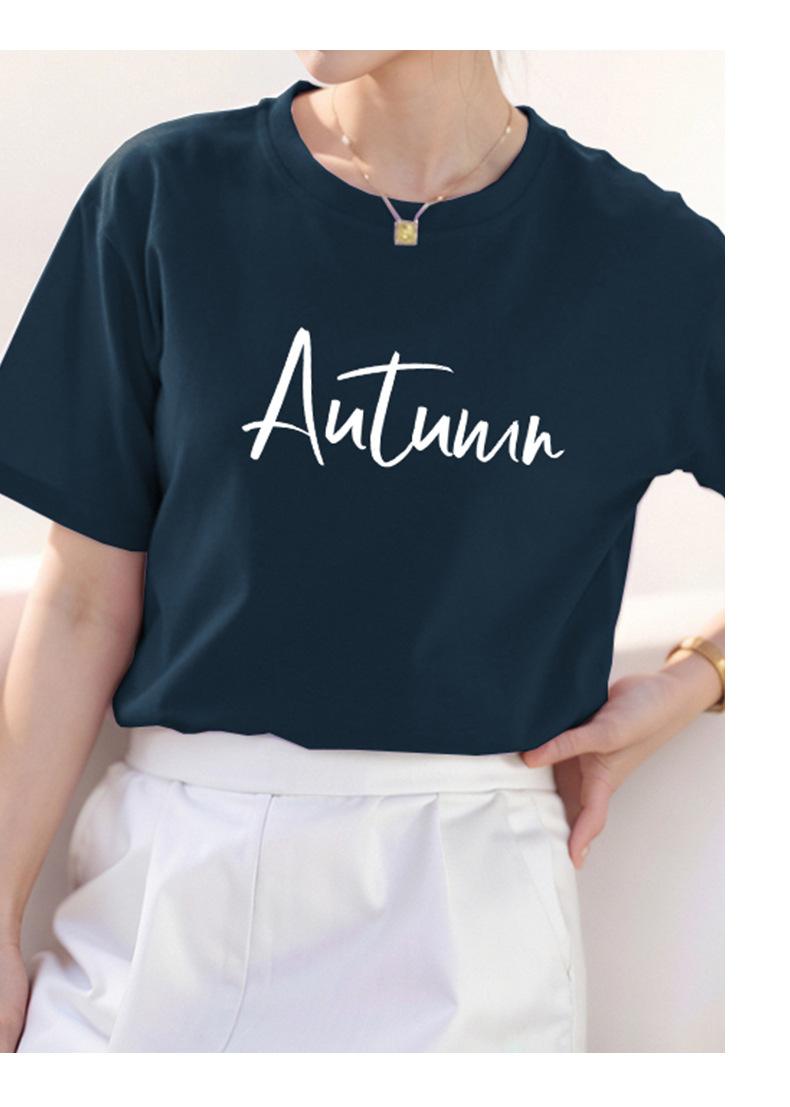 Camiseta de algodón grueso de 260 g para mujer, de manga corta, con estampado de letras, estilo occidental, de verano, de media manga.