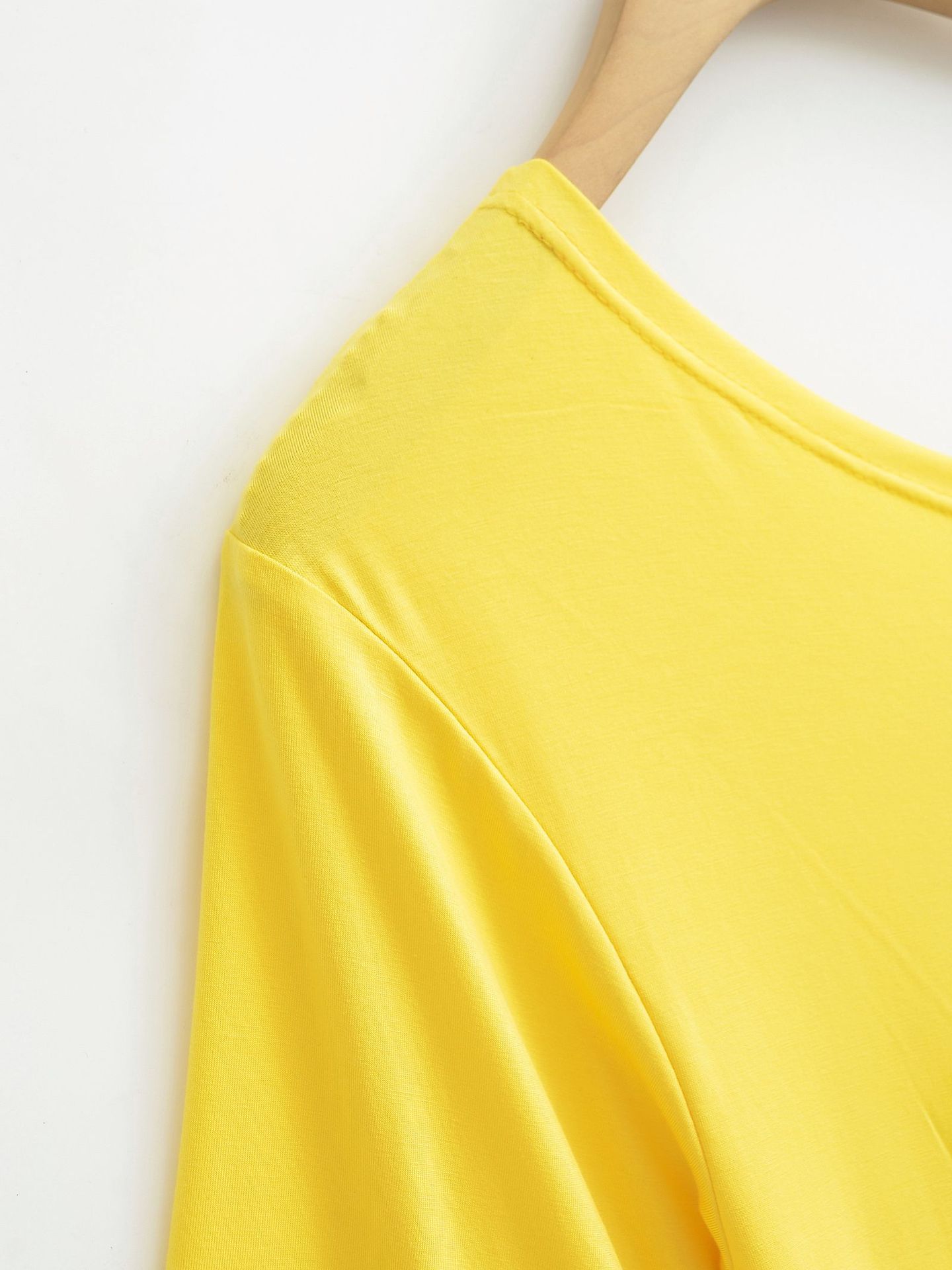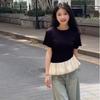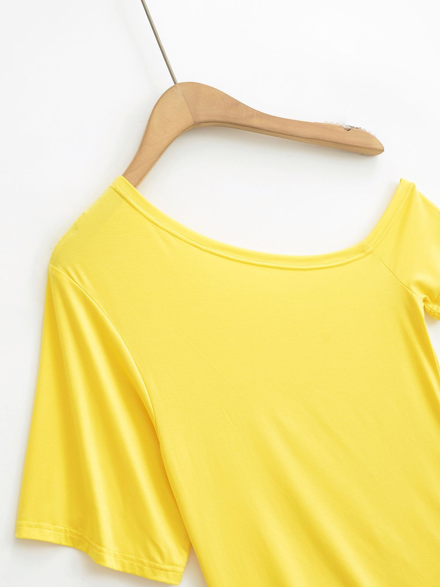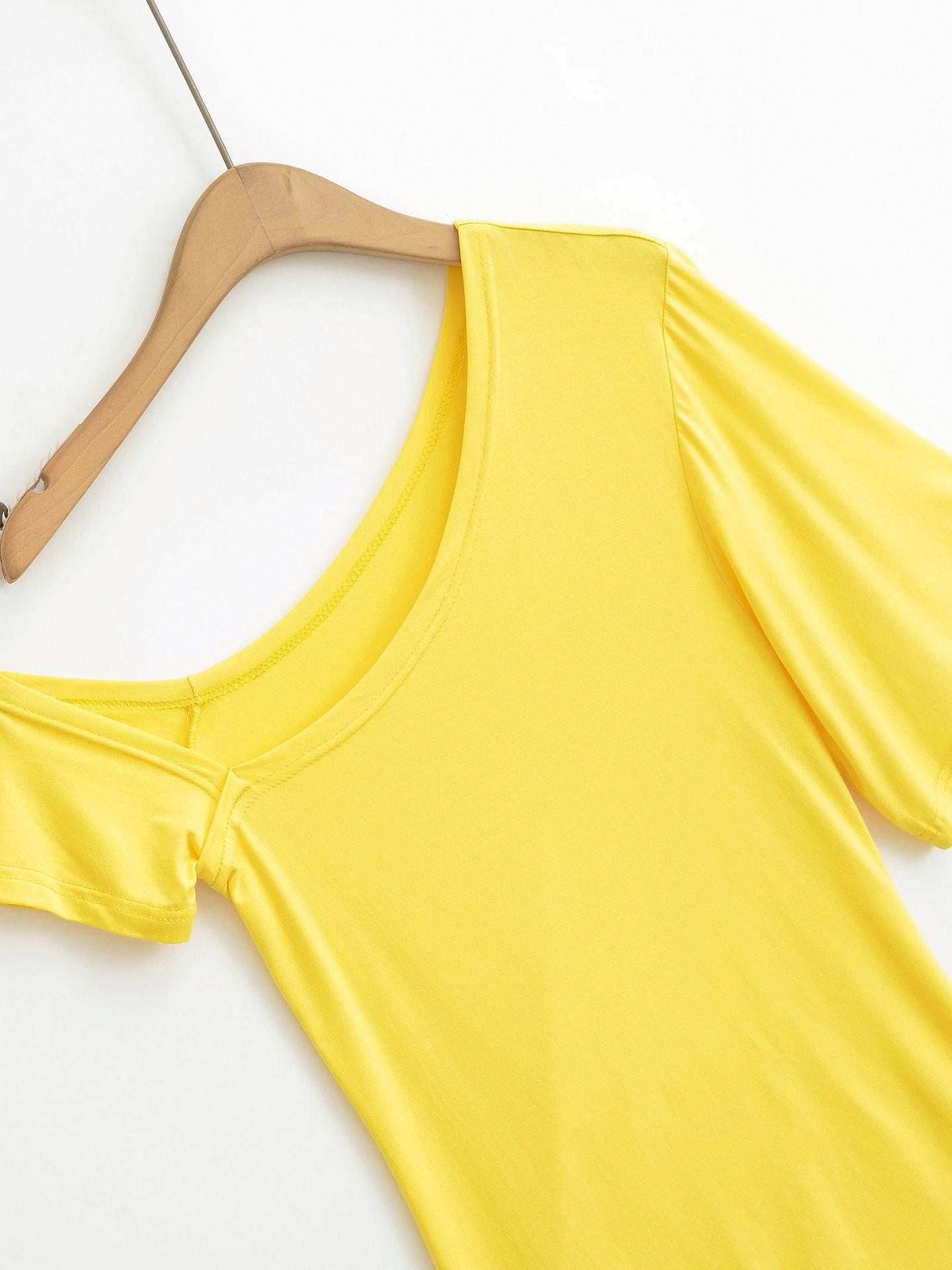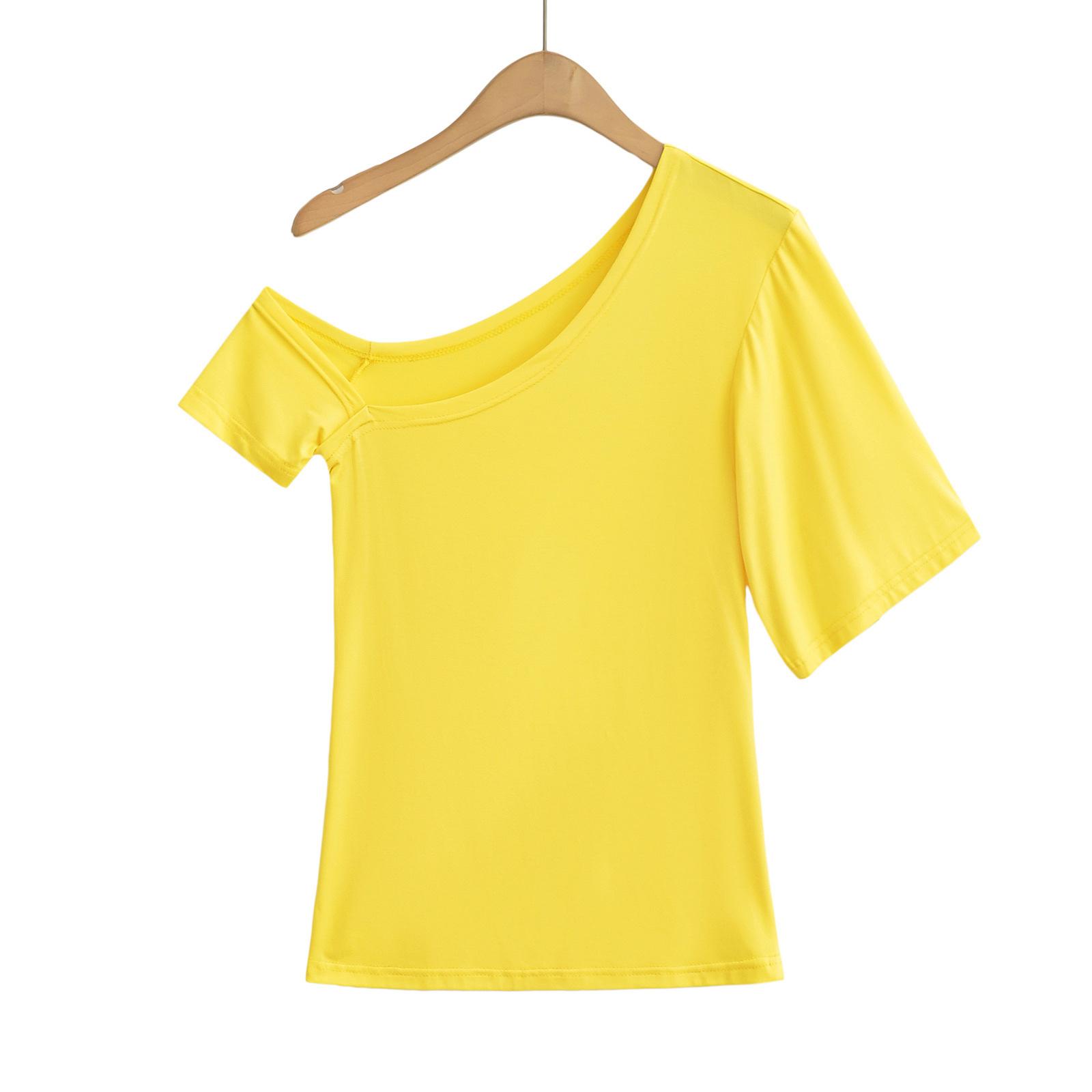 9057-24 Verano Nuevo Viento Puro Curvado Irregular Hombro Top Mujer Francés Adelgazante Hombro Manga Corta Camiseta