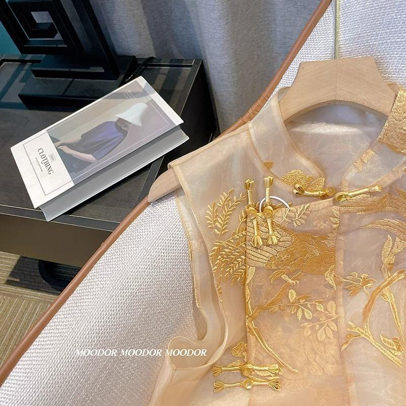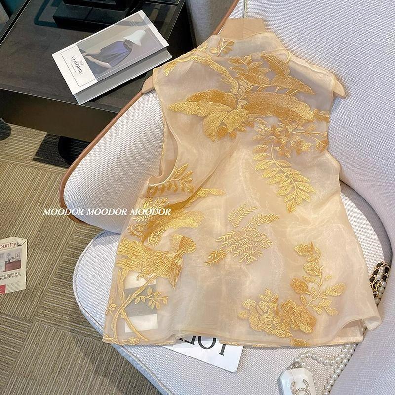 Compra Nueva Camisa Chaleco Chinoiserie para Mujer 2025 Primavera y Verano Estilo Nacional Bordado de Industria Pesada Cuello Mao Organza Estilo Retro al por mayor en Joom.pro