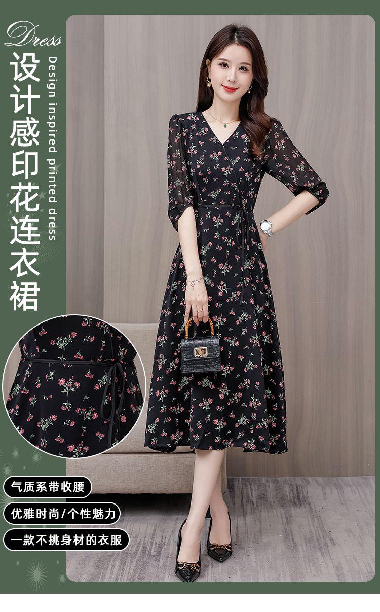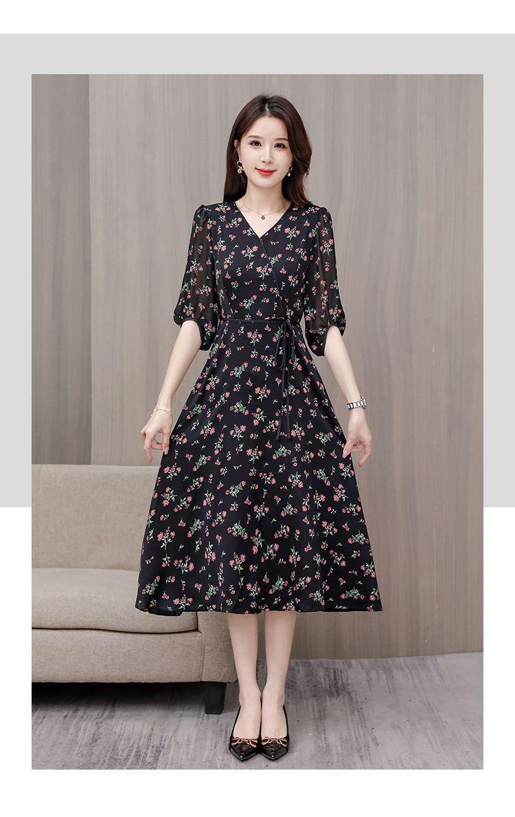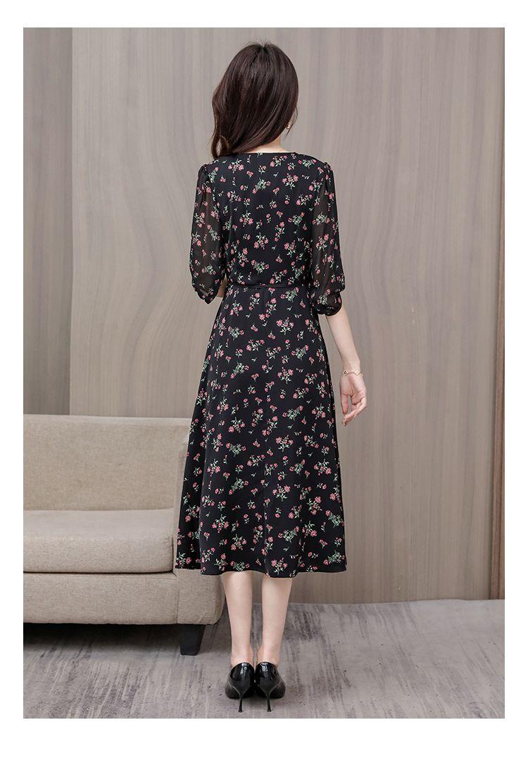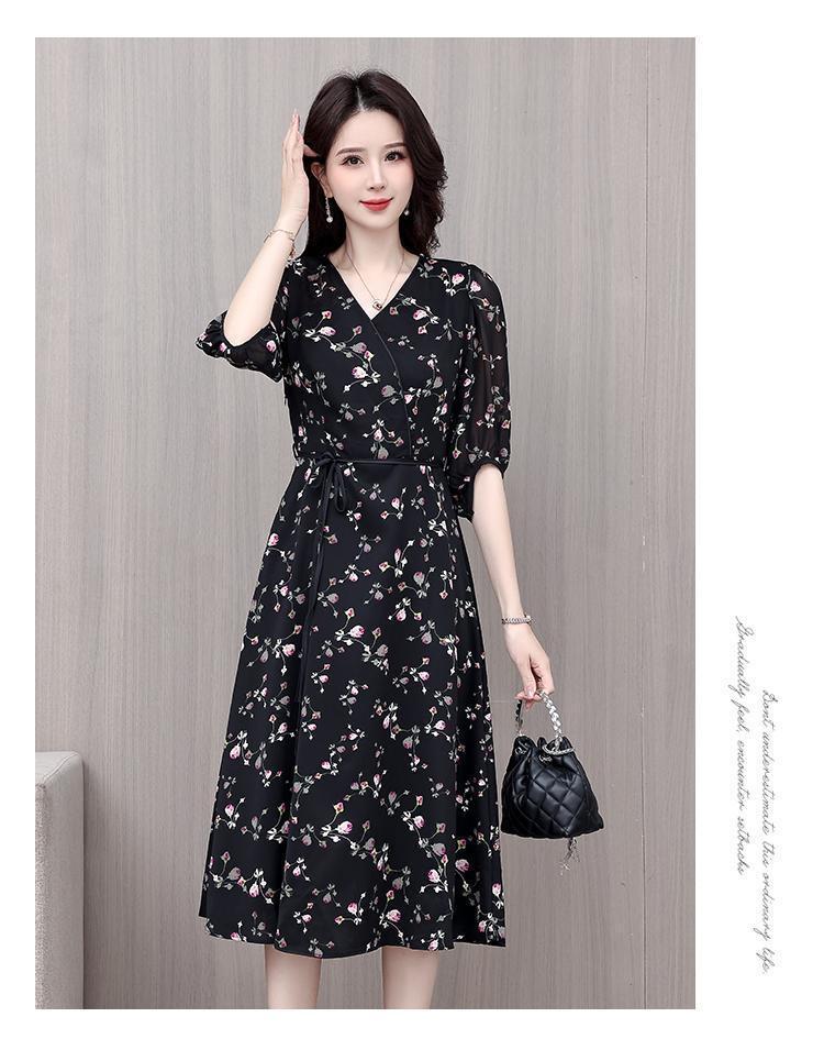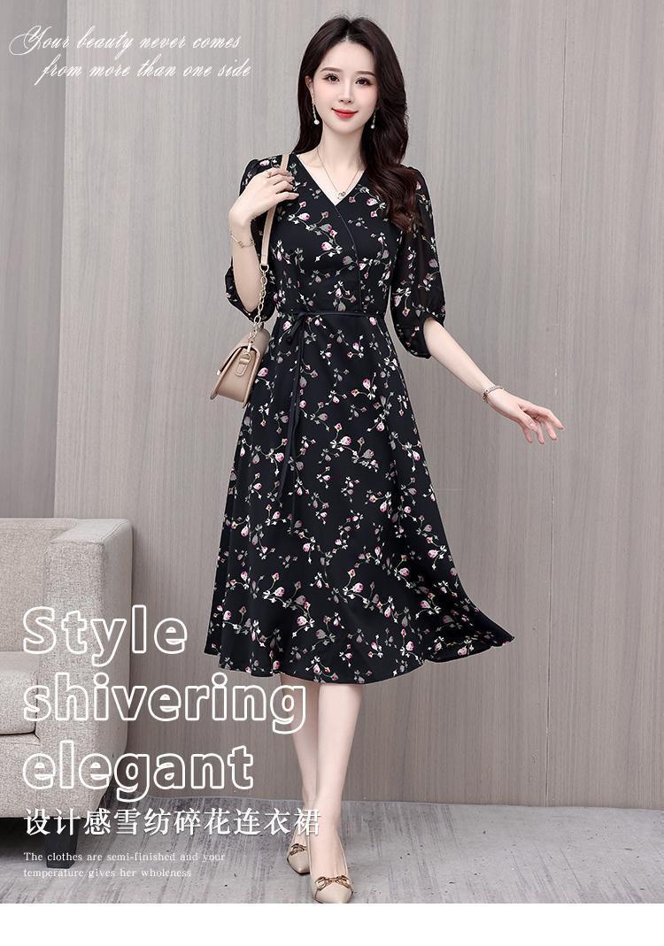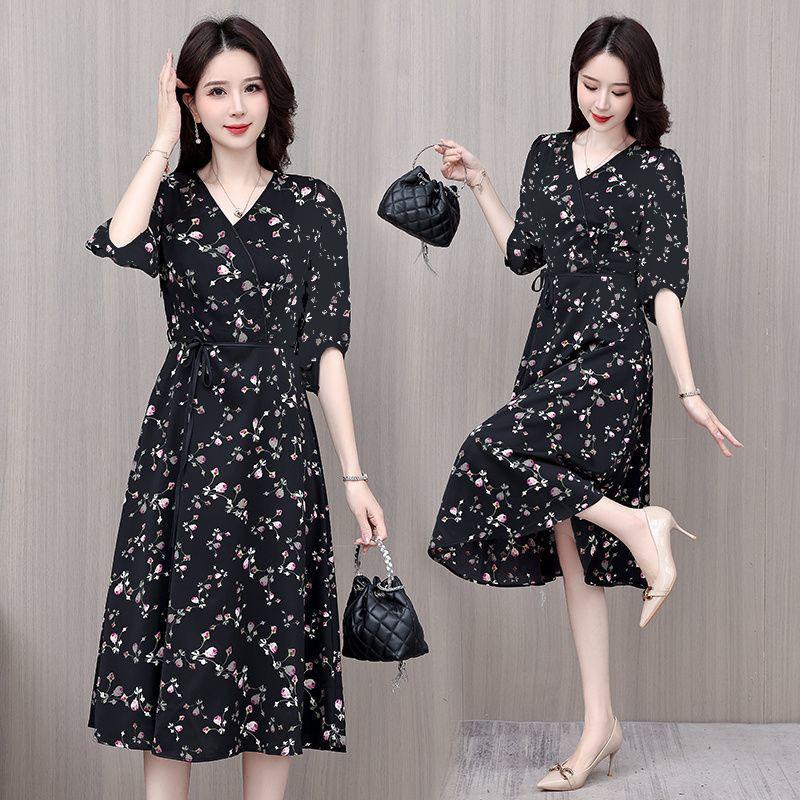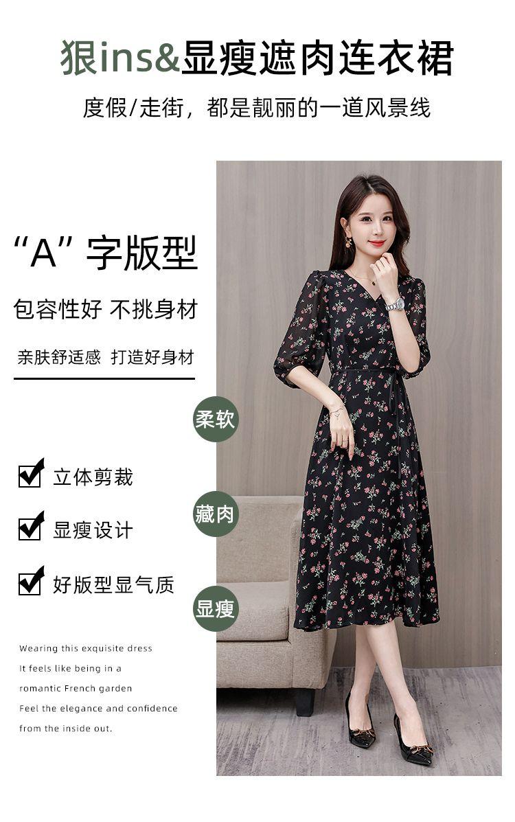 Compra Vestido de verano estilo coreano con encaje, cintura ajustada, media manga, escote en V y estampado floral, elegante, holgado y adelgazante, falda midi de corte A. al por mayor en Joom.pro