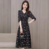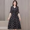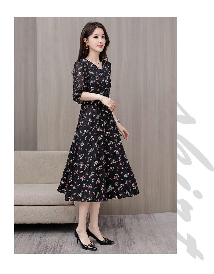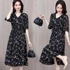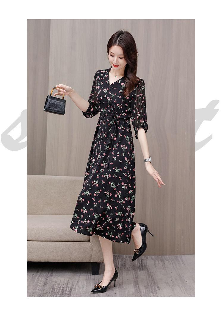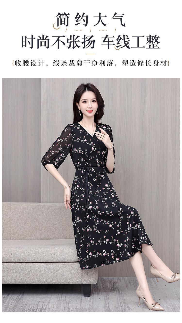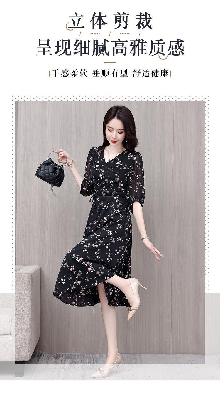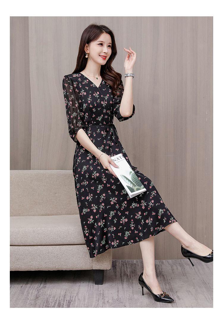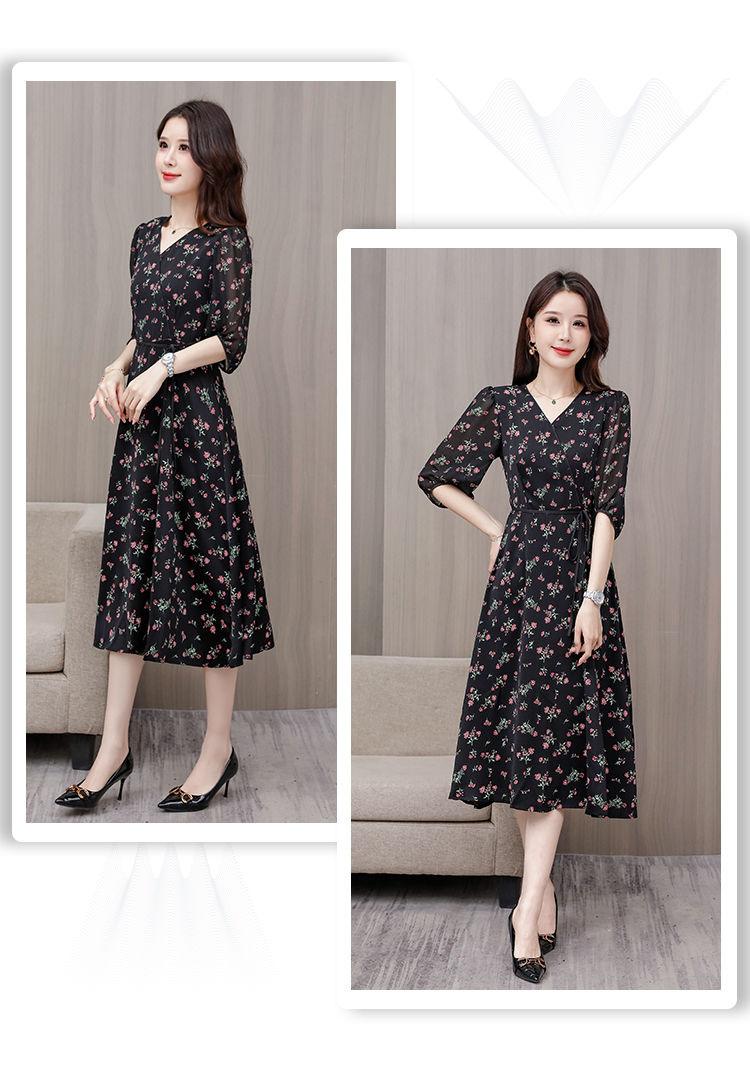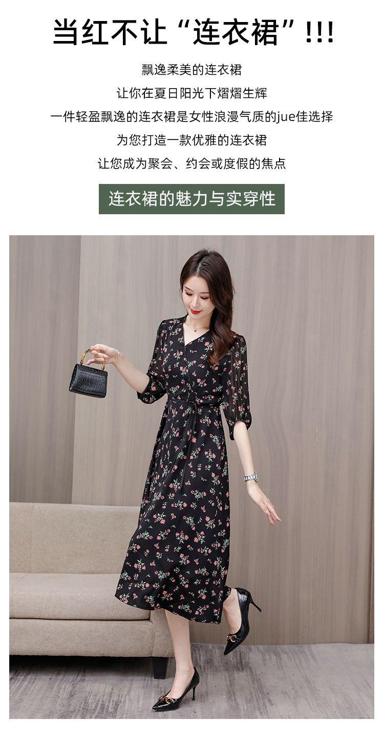 Compra Vestido de verano estilo coreano con encaje, cintura ajustada, media manga, escote en V y estampado floral, elegante, holgado y adelgazante, falda midi de corte A. al por mayor en Joom.pro
