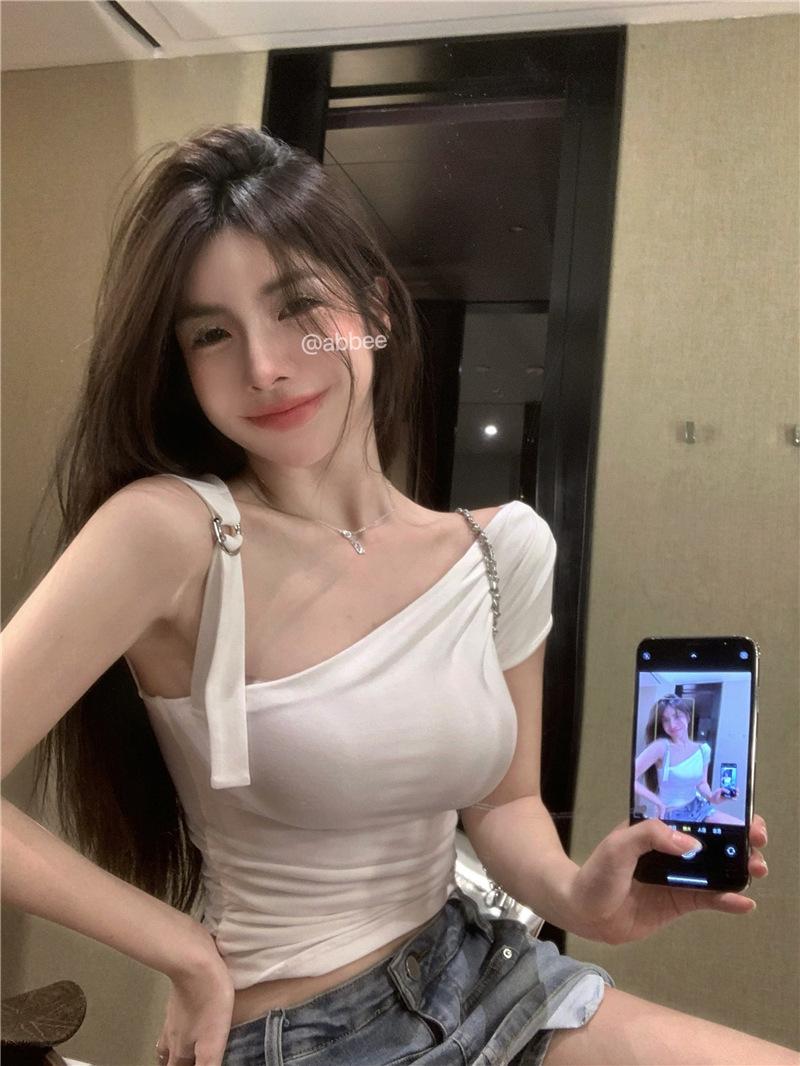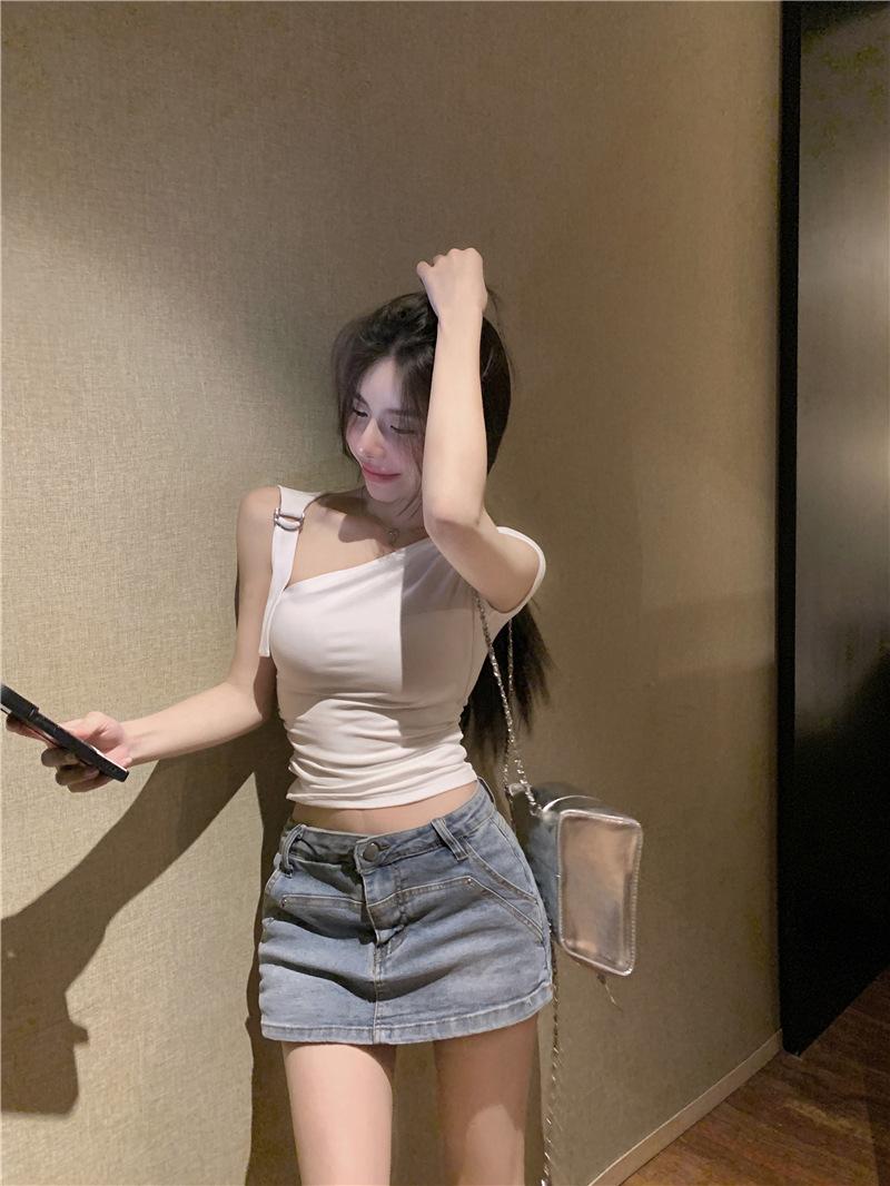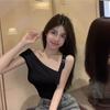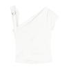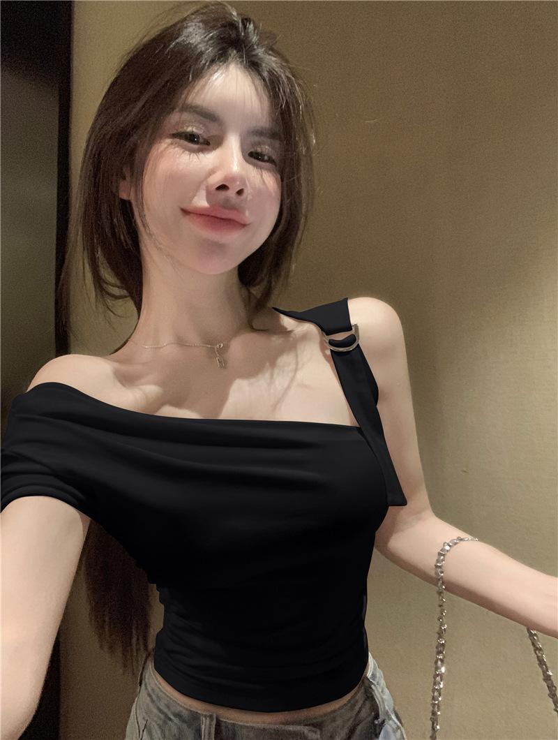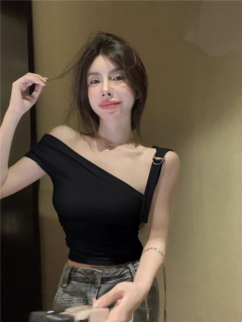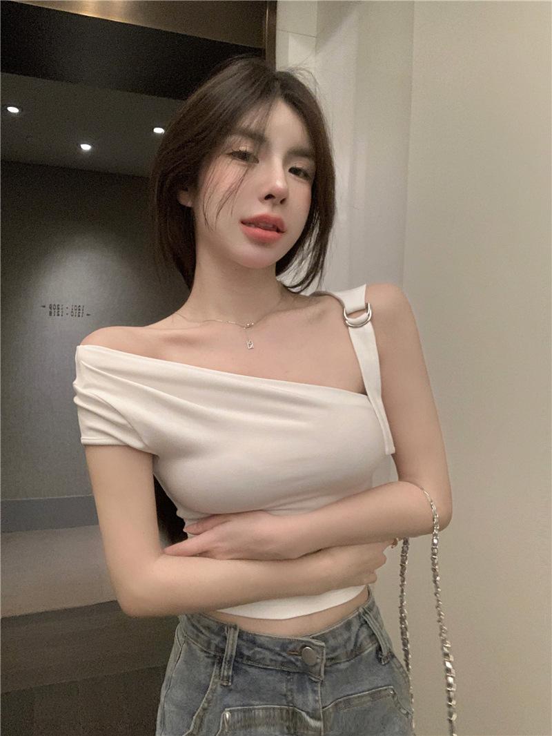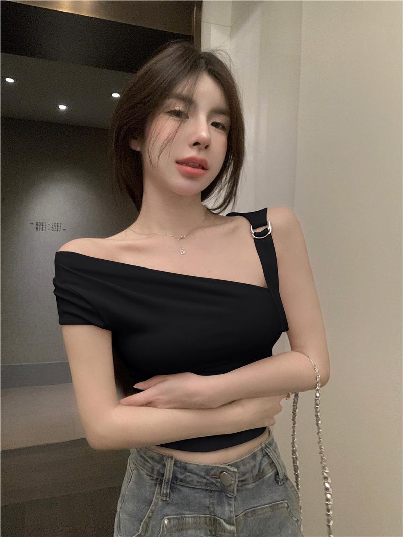 Playera Sexy de Modal con Diseño de un Hombro y Manga Corta para Mujer Estilo Europeo y Americano Transfronterizo Nueva Top Corto Ajustado sin Espalda