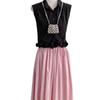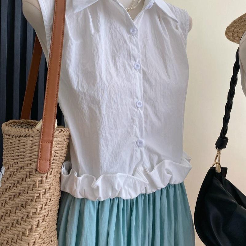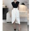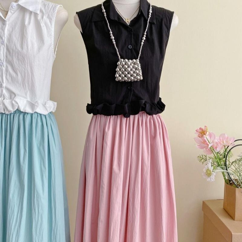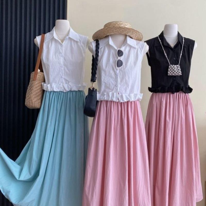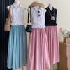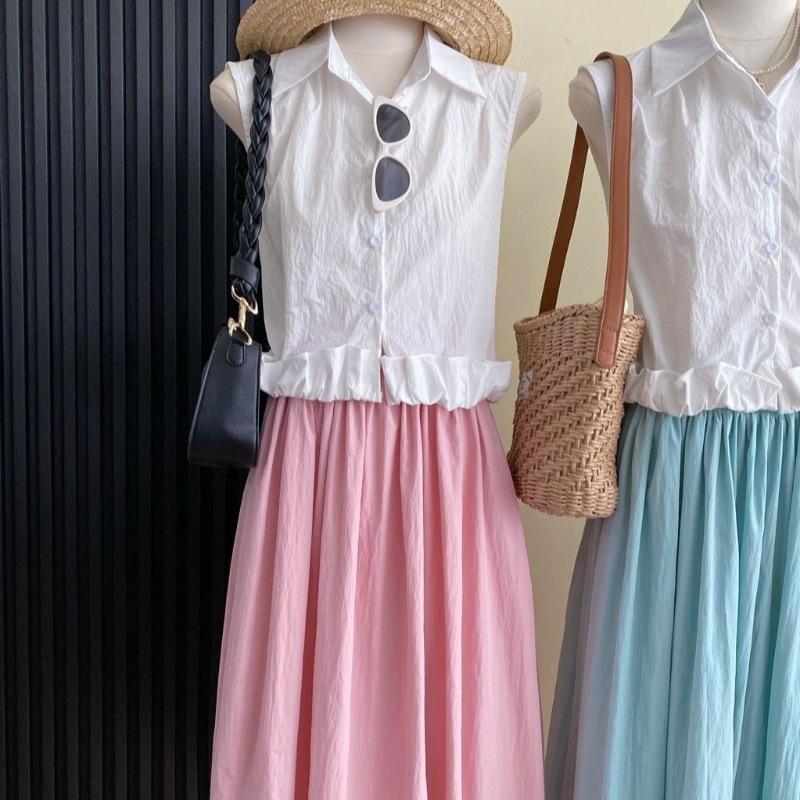 Traje de Estilo Suave para Mujer 2023 Verano Nuevo Estilo Estilo Francés Color Puro Camisa sin Mangas + Falda Conjunto de Dos Piezas