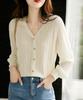 Compra 2023 primavera nuevo temperamento francés manga larga calado gasa costura cuello en V jersey tejido top camisa mujer al por mayor en Joom.pro