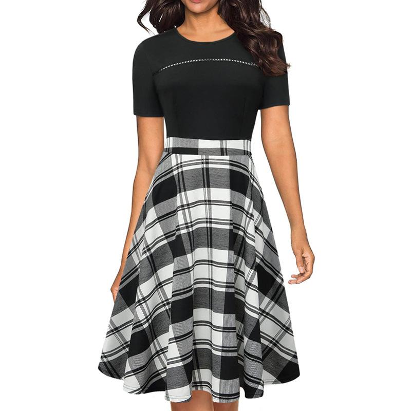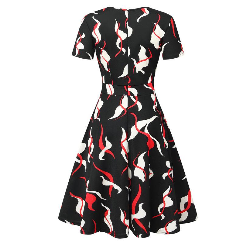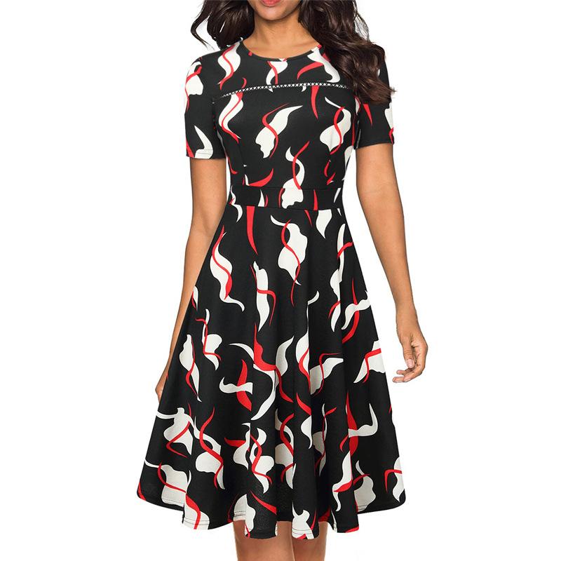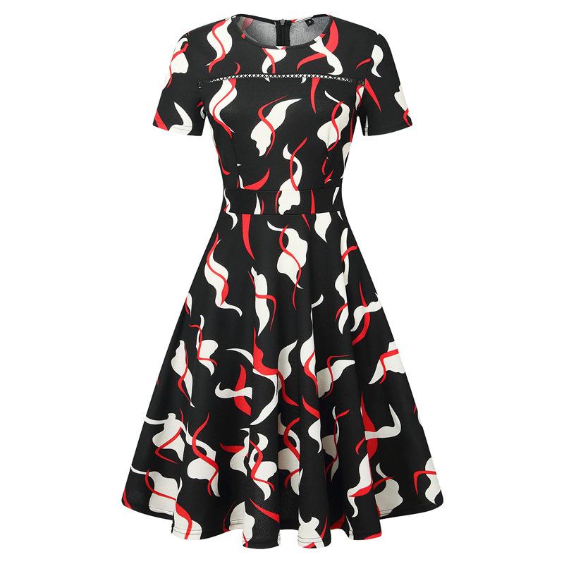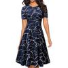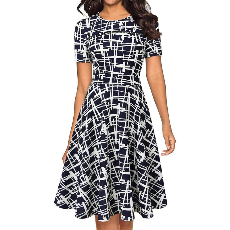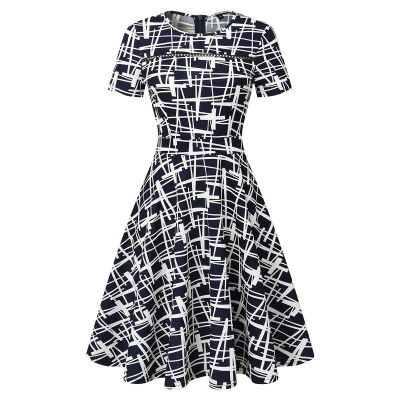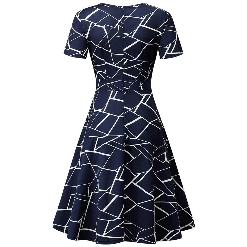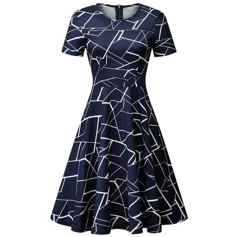 Ropa de Mujer Europea y Americana Transfronteriza 2024 Amazon Vestido Versátil Estampado Geométrico de Cintura Alta Falda Línea A Estilo Europeo y Americano Manga Corta