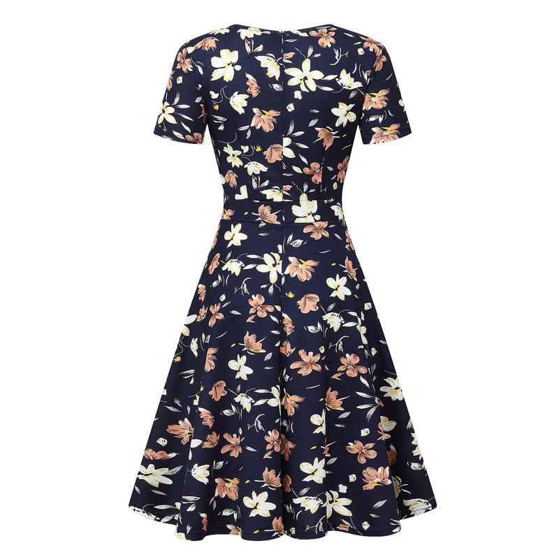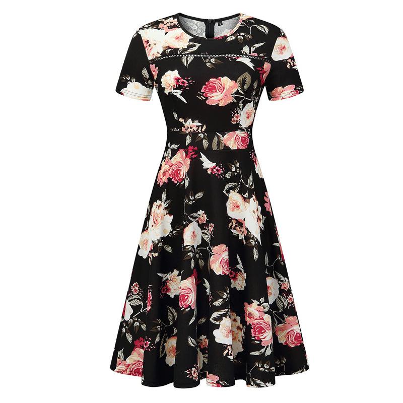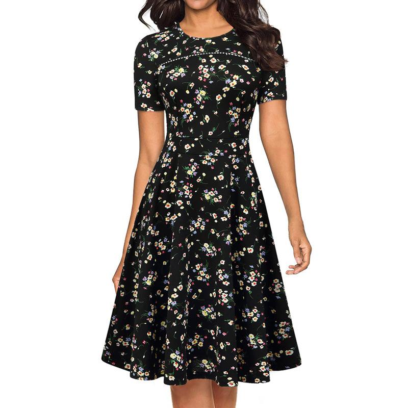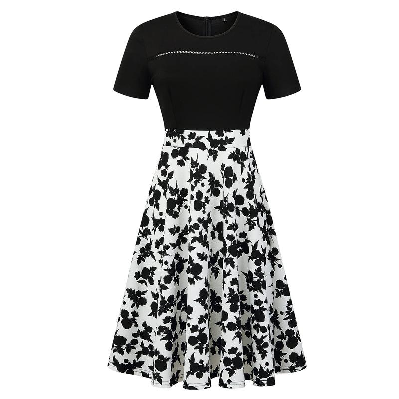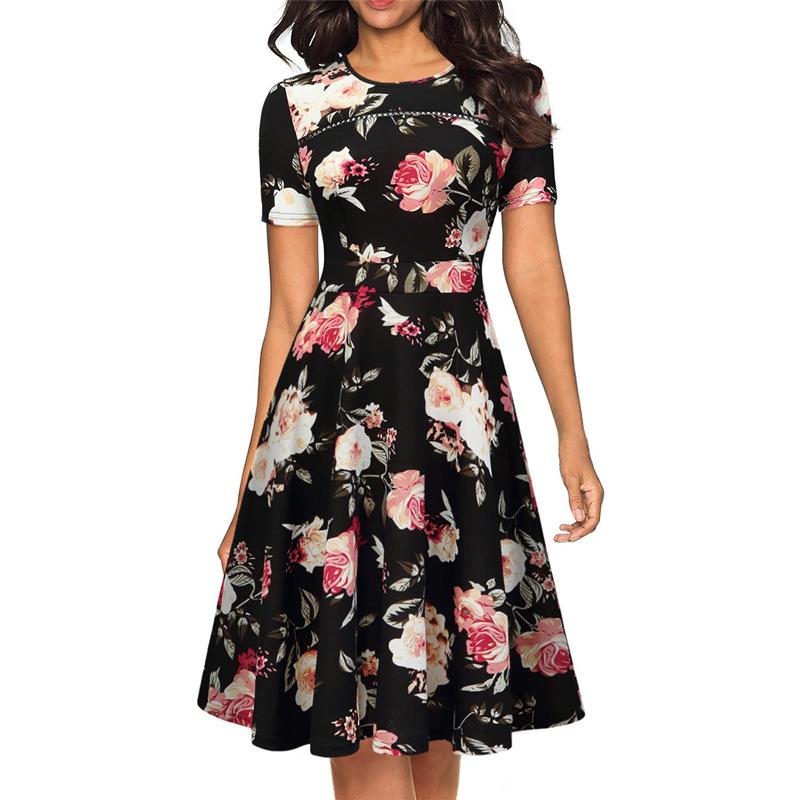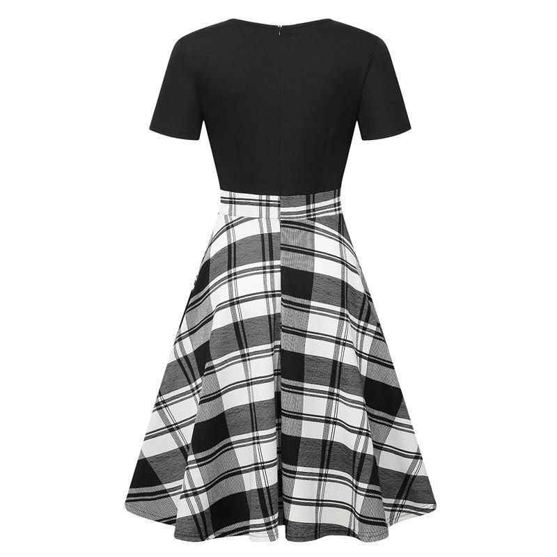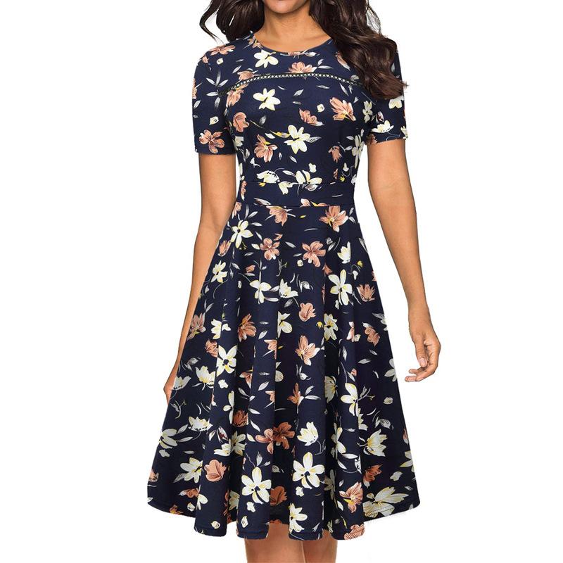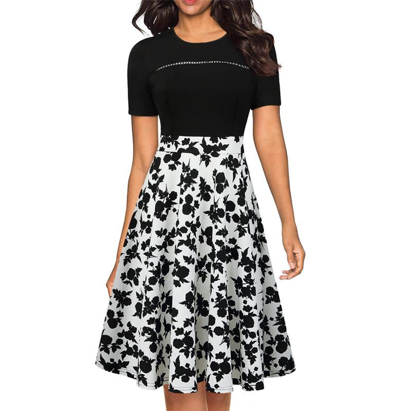 Ropa de Mujer Europea y Americana Transfronteriza 2024 Amazon Vestido Versátil Estampado Geométrico de Cintura Alta Falda Línea A Estilo Europeo y Americano Manga Corta