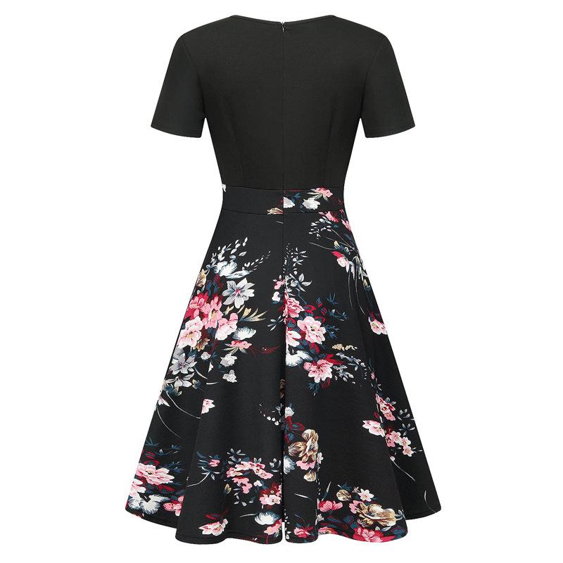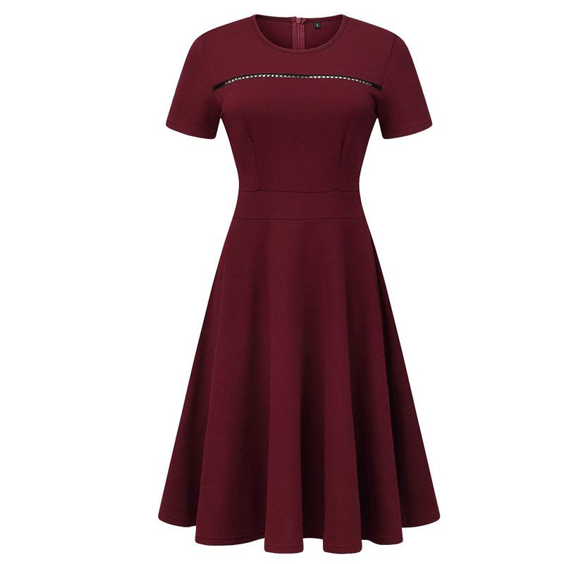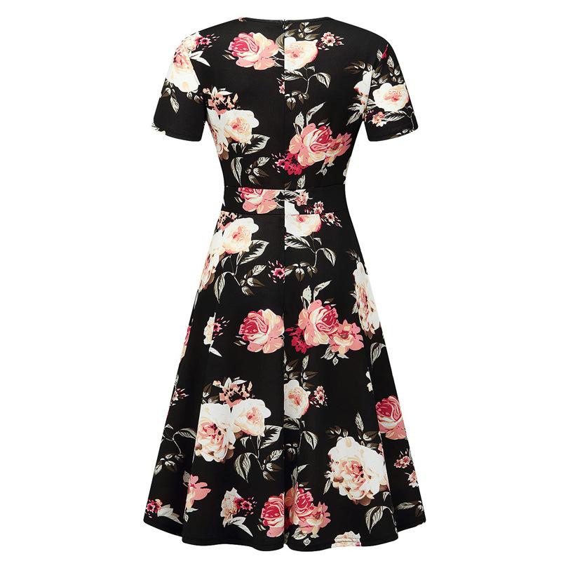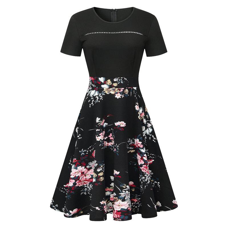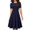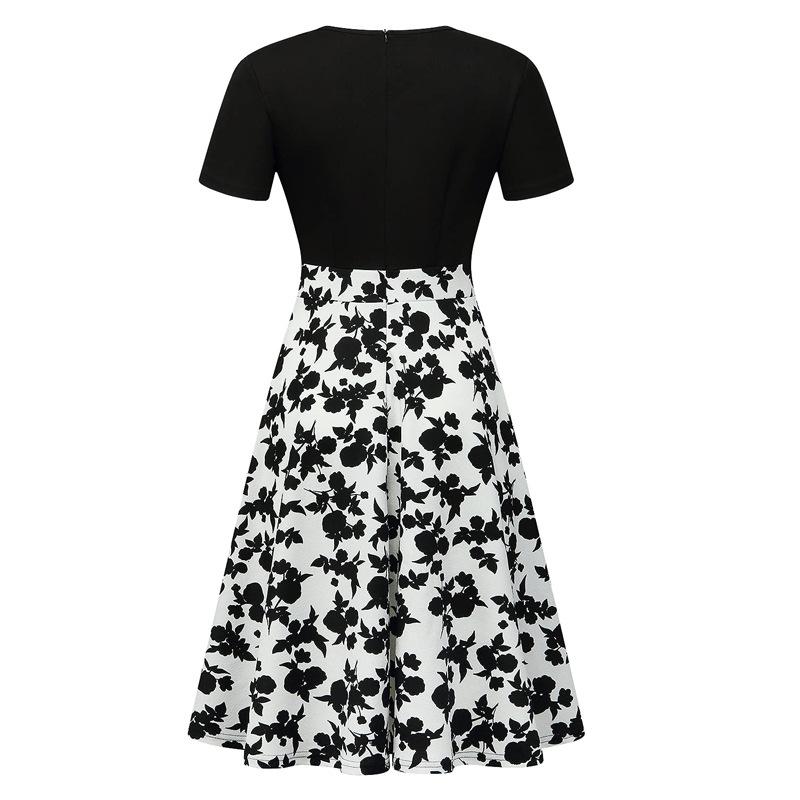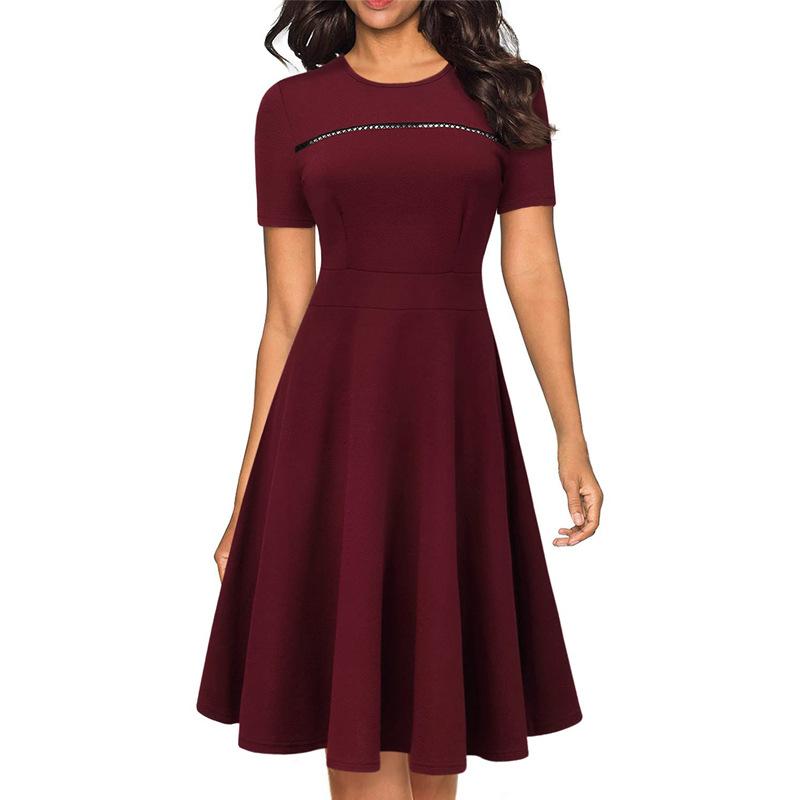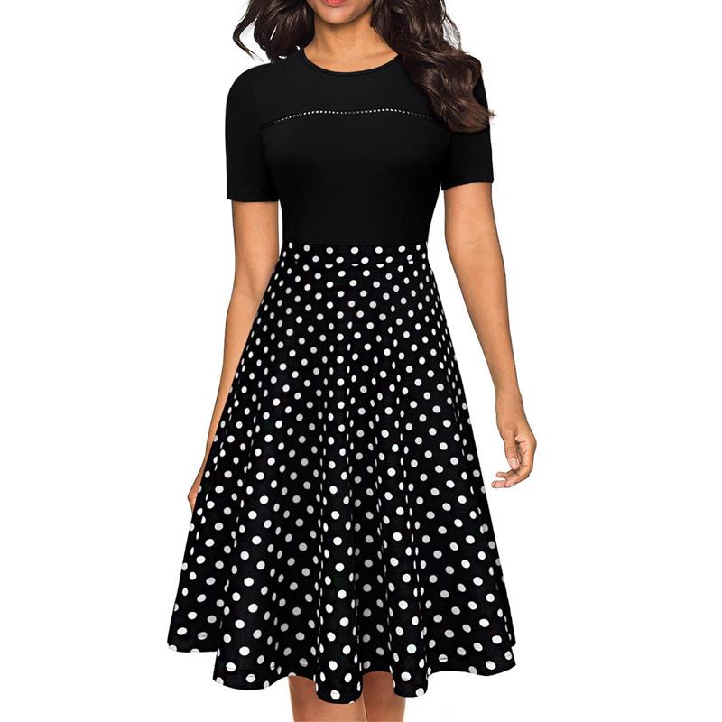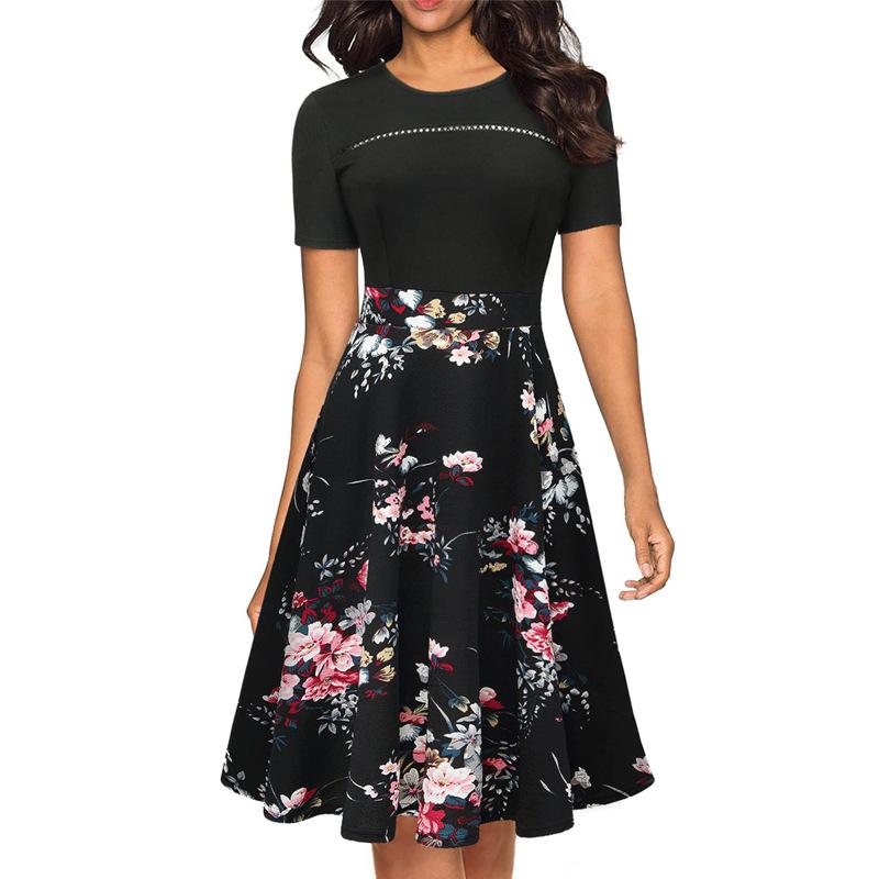 Ropa de Mujer Europea y Americana Transfronteriza 2024 Amazon Vestido Versátil Estampado Geométrico de Cintura Alta Falda Línea A Estilo Europeo y Americano Manga Corta