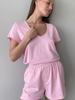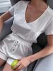 Conjunto de Pijama de Shorts Moda Transfronteriza Europea y Americana Cómodo Casual para Casa Pantalones con Bolsillo de Solapa Camiseta de Cuello en V Traje de Manga Corta