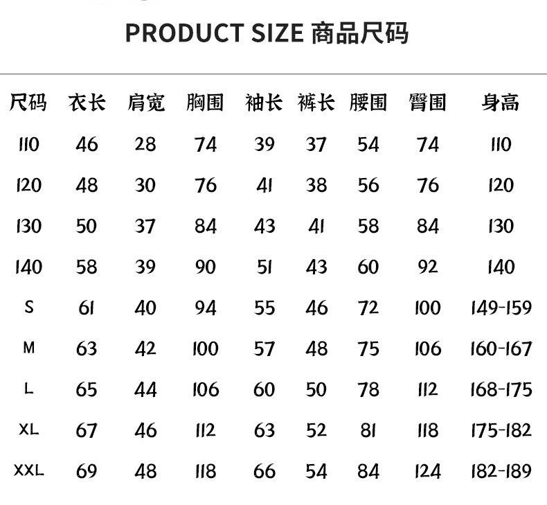 S, M, L, XL, XXL, XXXL, 110, 120, 130, 140, 150, One size fits all