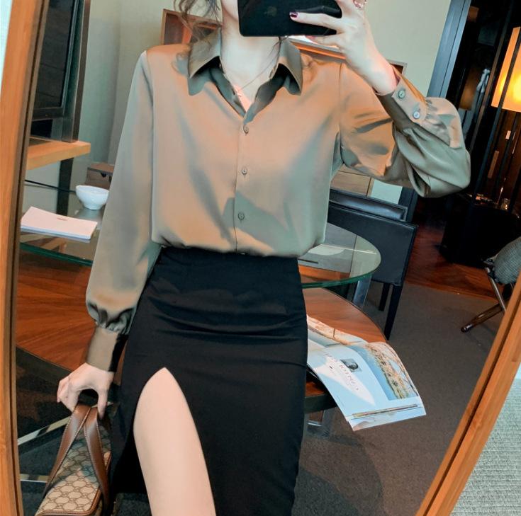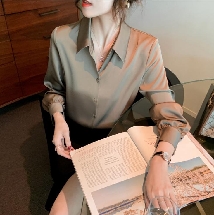 Camisa de satén de manga larga para mujer, primavera y otoño 2022, nueva blusa de gasa profesional, diseño de nicho, artículos europeos populares en Internet.