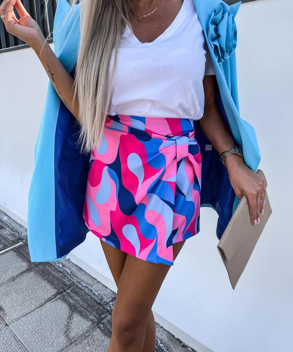 Pantalones cortos casuales de verano 2023 para mujer de Amazon, estilo europeo y americano, con cintura alta, estampados y falda recta.