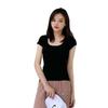 Compra Playera de Algodón de Alta Calidad para Mujer de Manga Corta Ajustada Cuello Redondo Sexy Ceñida 2025 Nueva Top de Verano Color Puro Camiseta Básica para Mujer al por mayor en Joom.pro