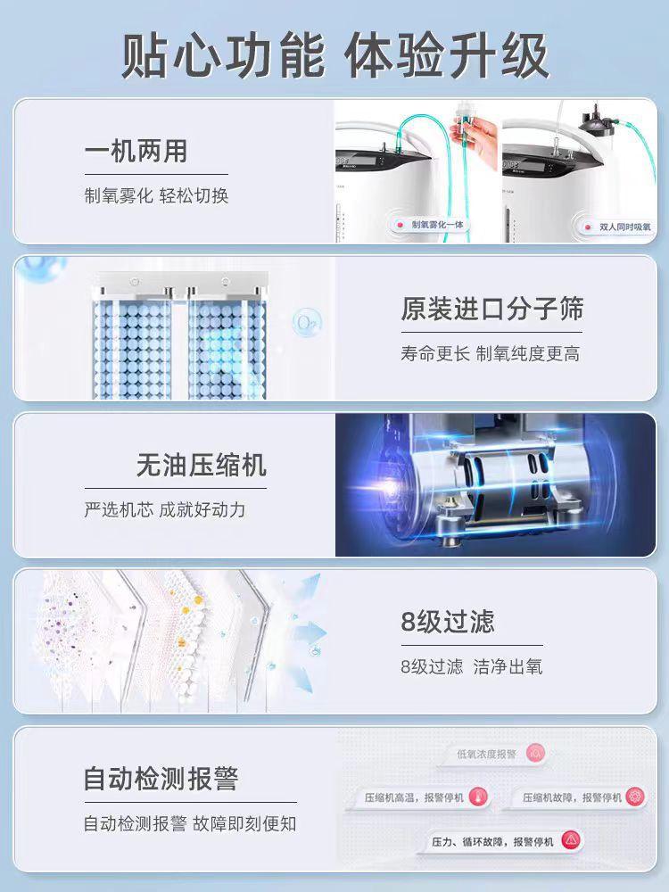 Concentrador de Oxígeno Yuyue 8F-5Aw Médico 5L con Máquina de Oxígeno Atomizado Inhalador de Oxígeno Doméstico Terapia de Oxígeno Silencioso Grado Médico