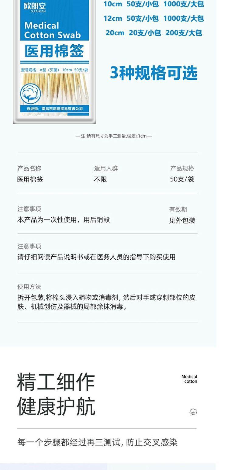 Hisopos de Algodón Médico Desechables, Apósito Médico Estéril para Heridas, Limpieza de Bebés Recién Nacidos, Desengrasado, Hisopos de Algodón para Esterilización Médica