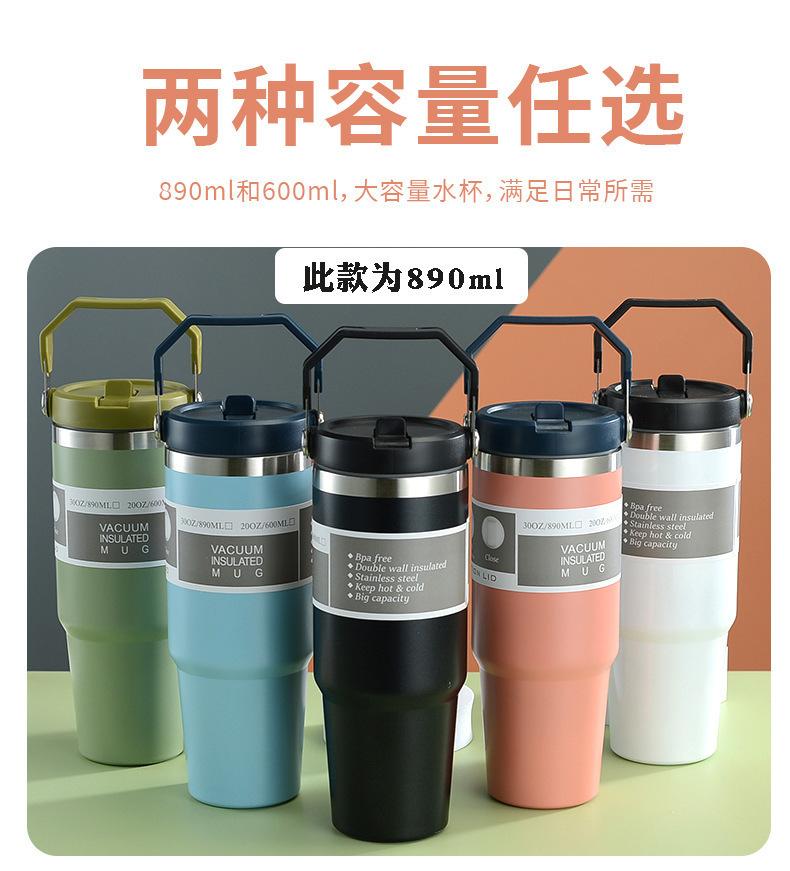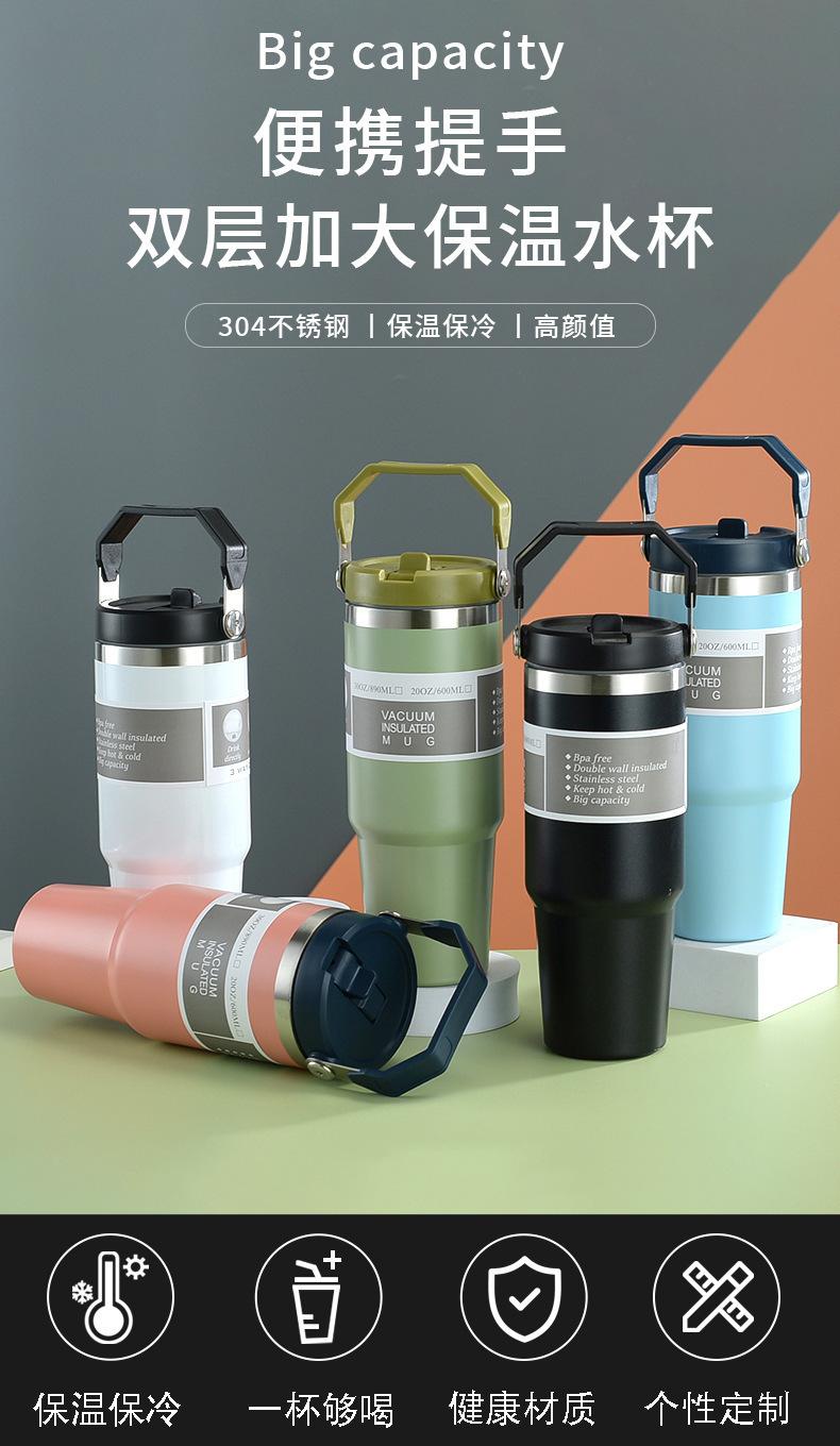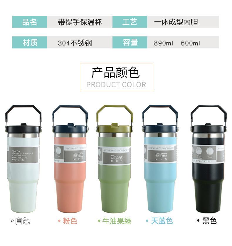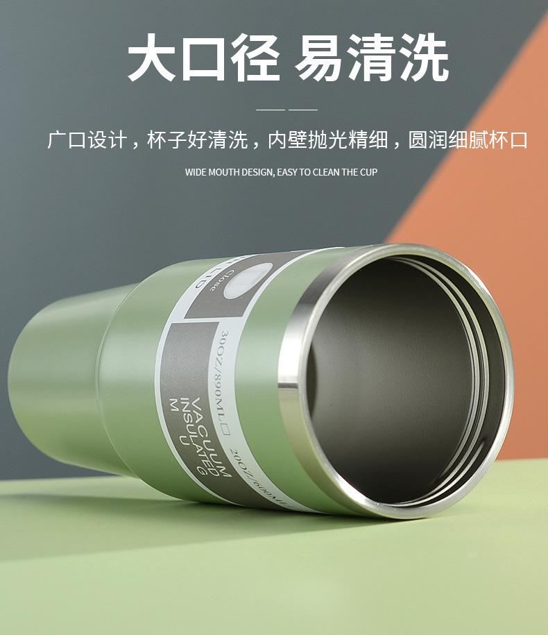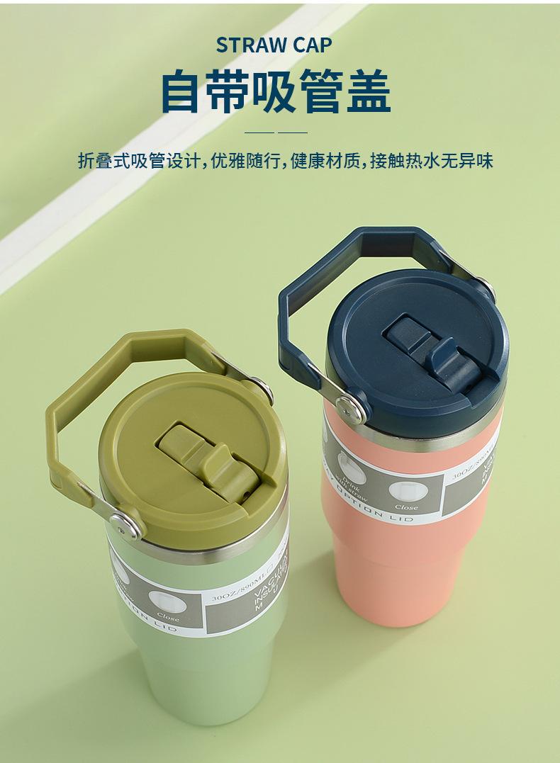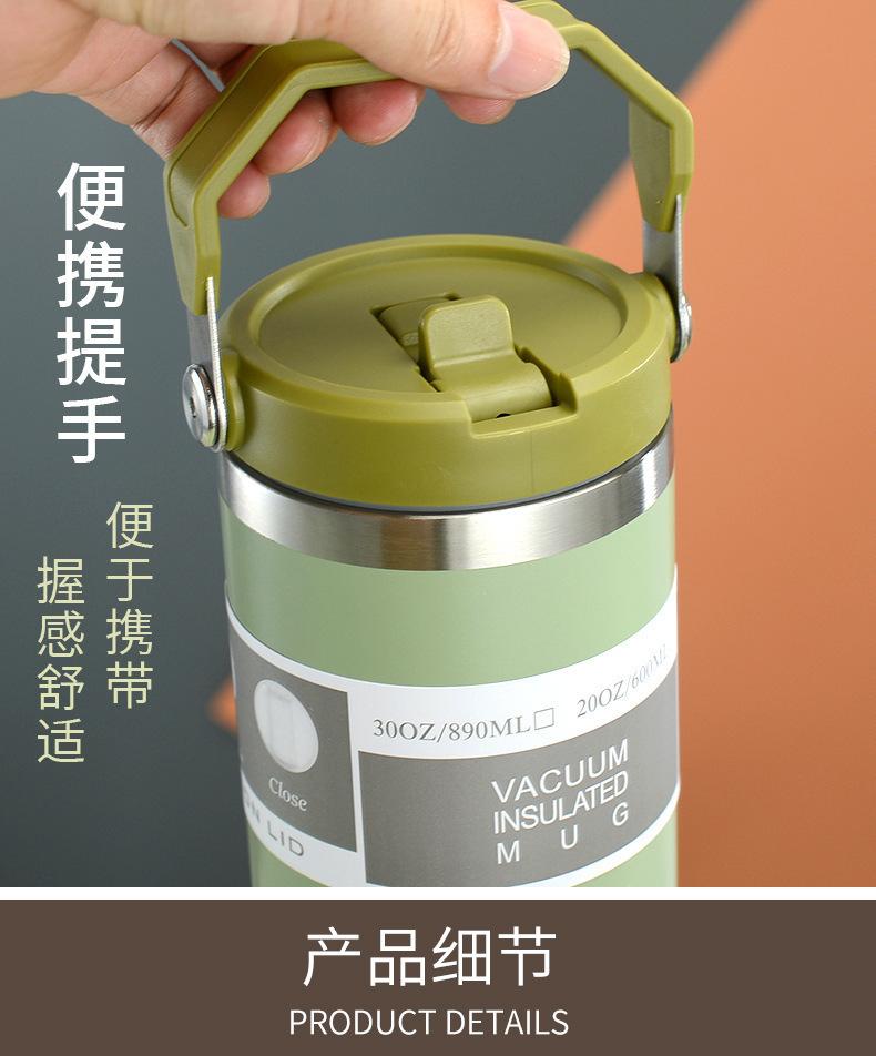 Termo de vacío de doble capa de acero inoxidable 304, 30 oz, gran capacidad, con asa, para coche, con pajita
