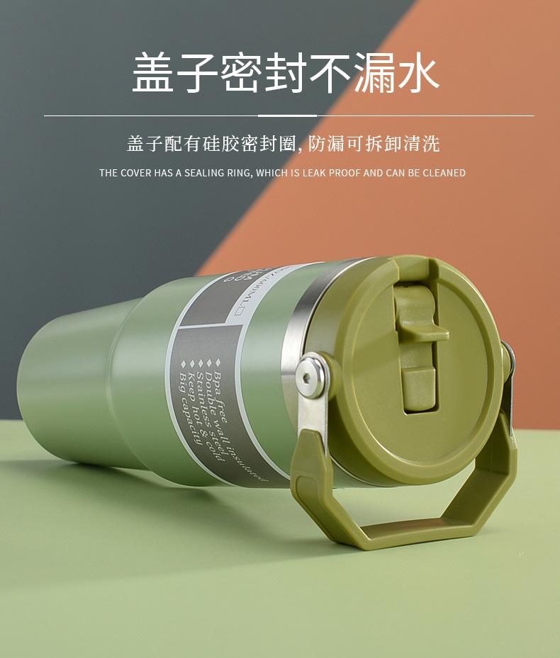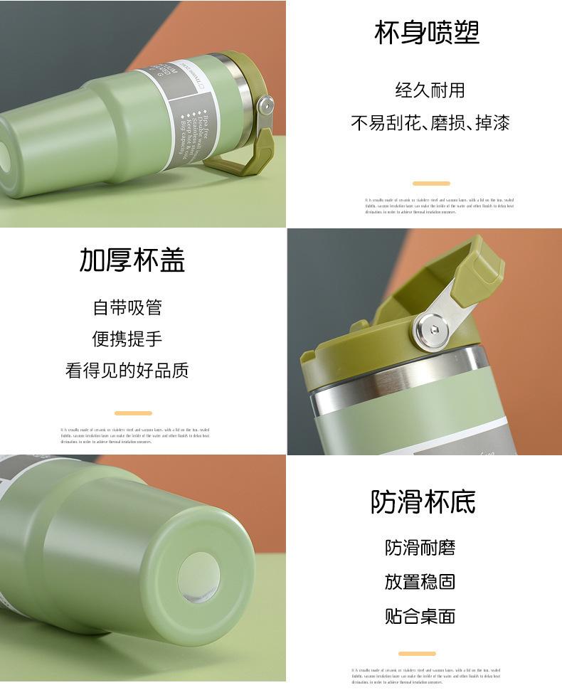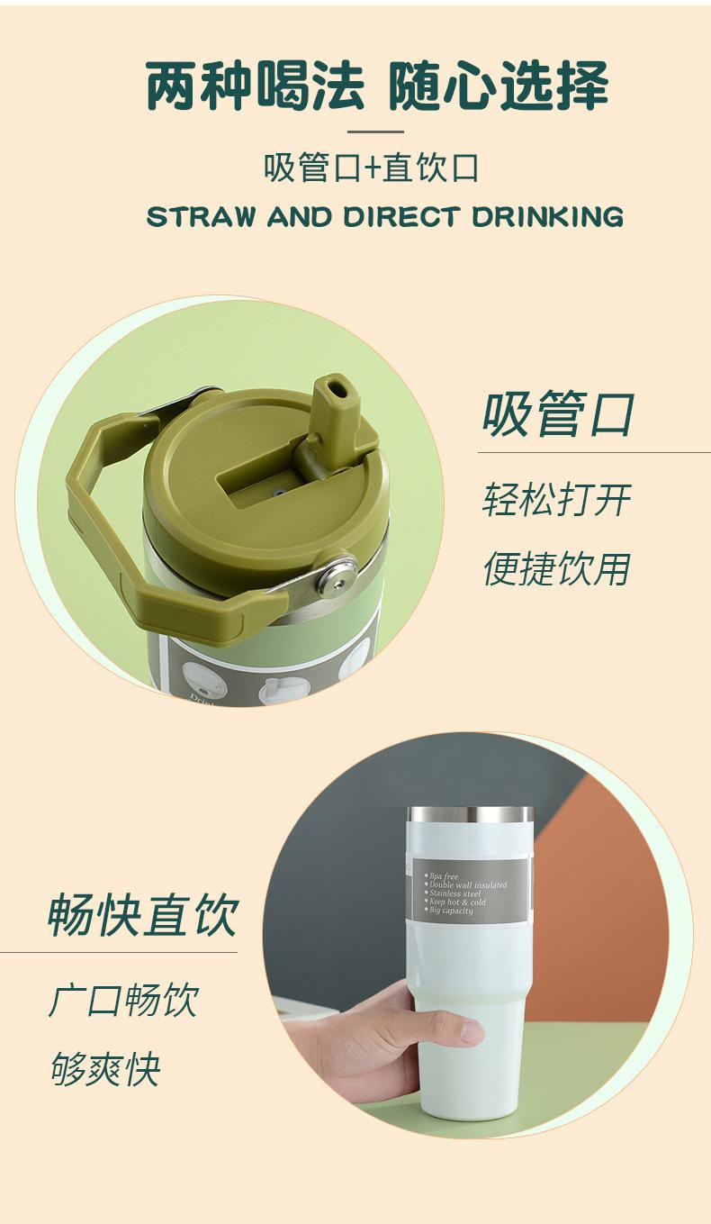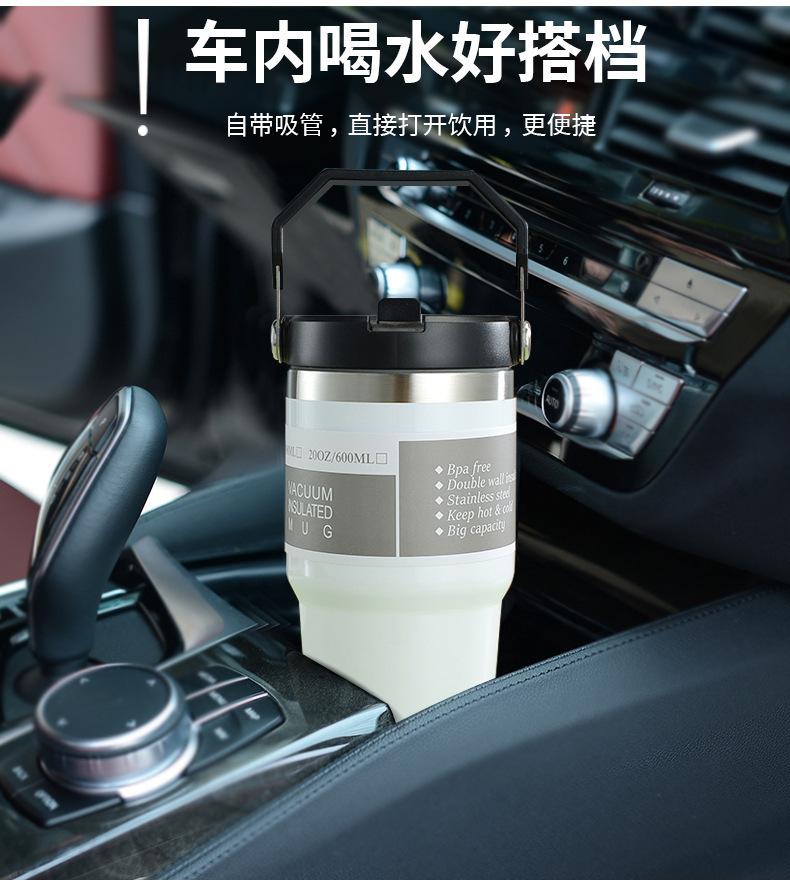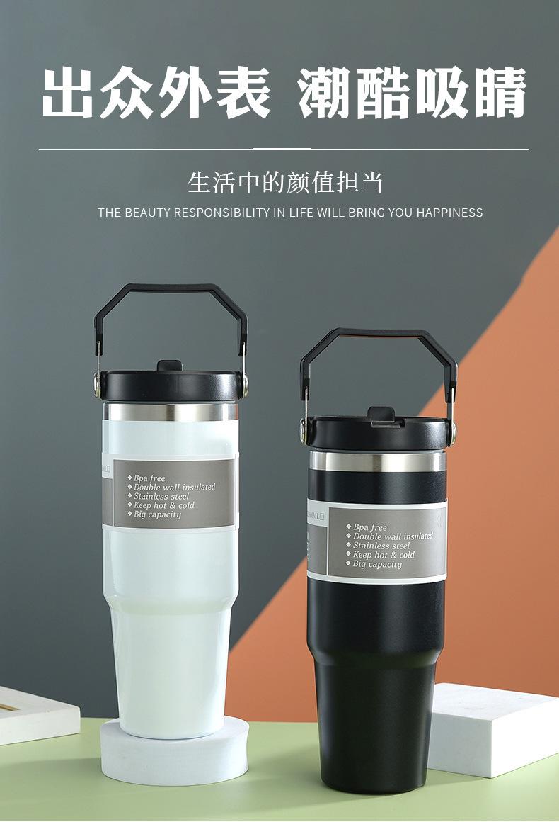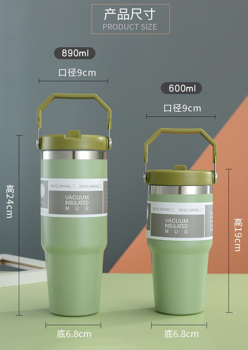 Termo de vacío de doble capa de acero inoxidable 304, 30 oz, gran capacidad, con asa, para coche, con pajita