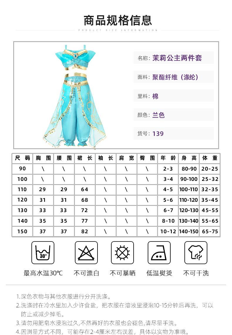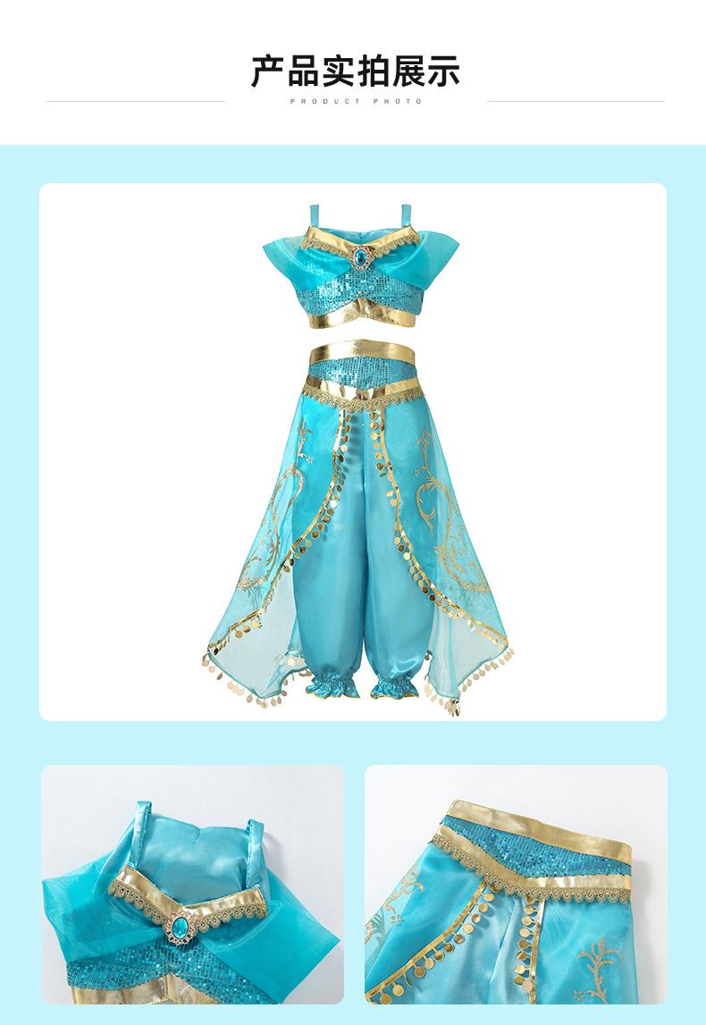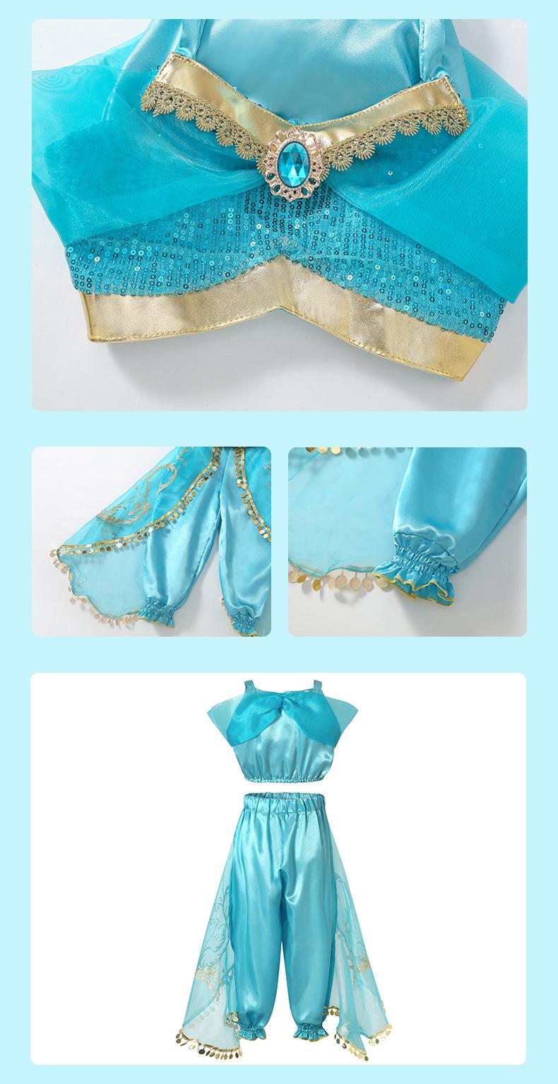 Vestido de Princesa Jazmín de Fábrica para Niñas Disfraces de Dibujos Animados para Actuación Conjunto de Dos Piezas de Aladdín Venta al por Mayor Vestidos para Niños Ropa de Práctica