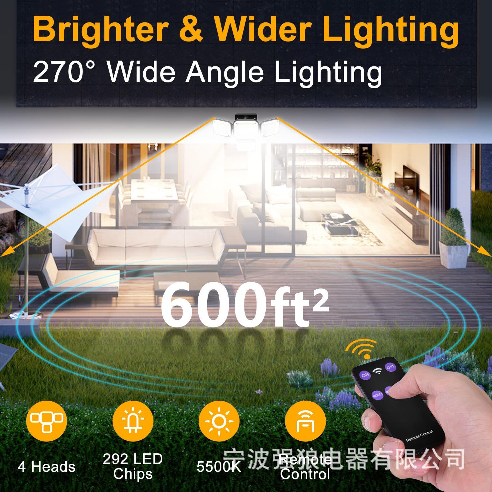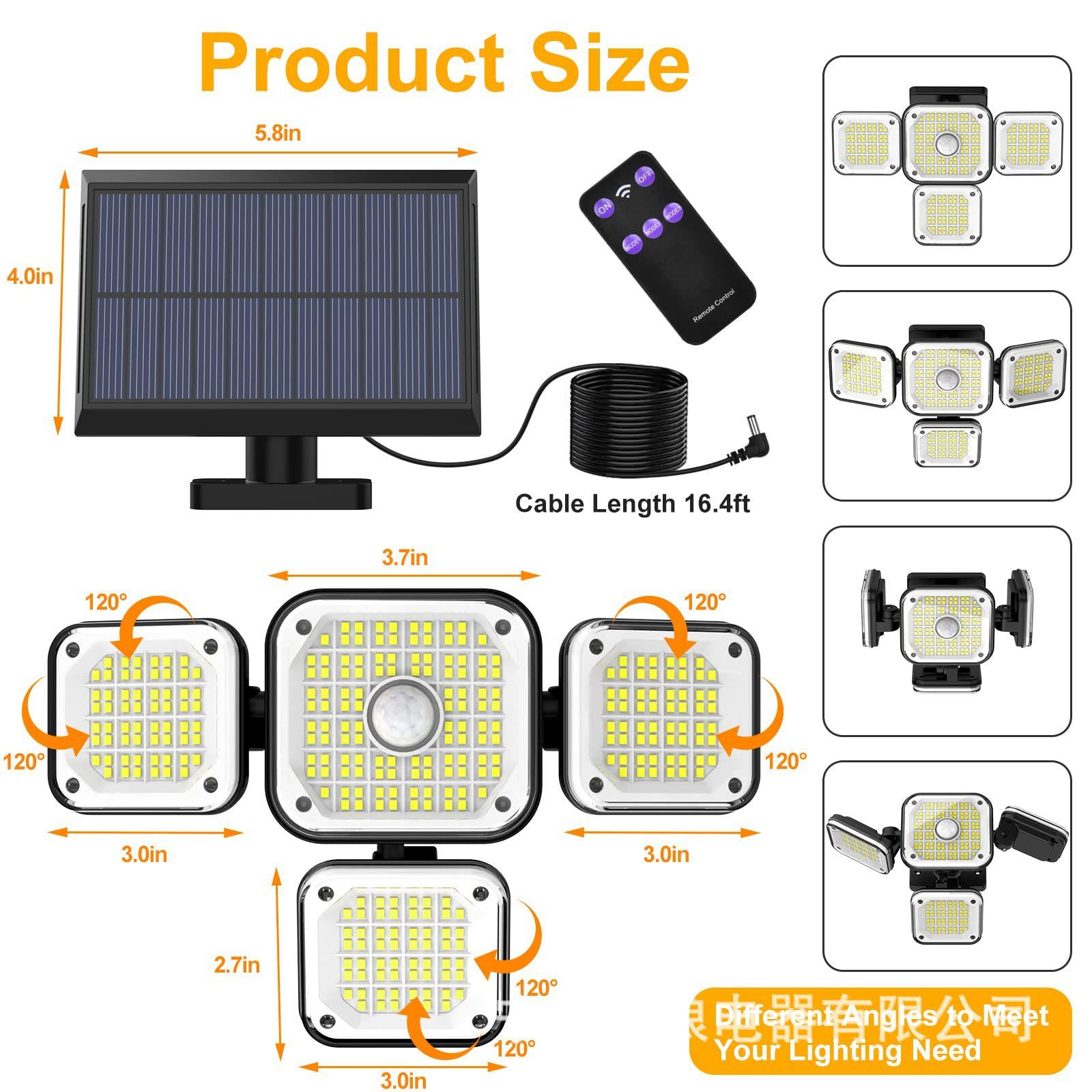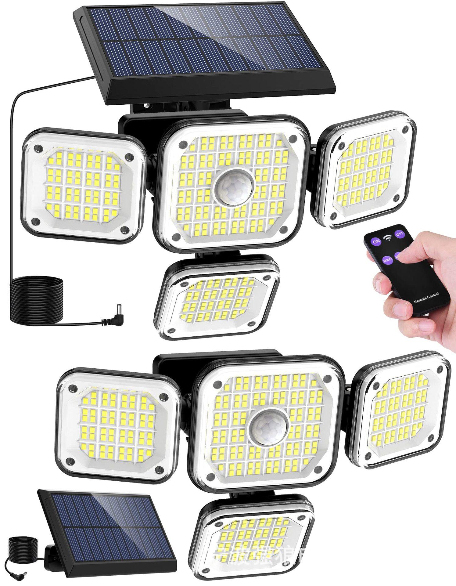 Lámpara de Pared LED Solar Nueva Personalizada Transfronteriza Sensor de Cuerpo Humano Lámpara Dividida de Cuatro Cabezales para Patio Lámpara de Pared de Luz Fuerte