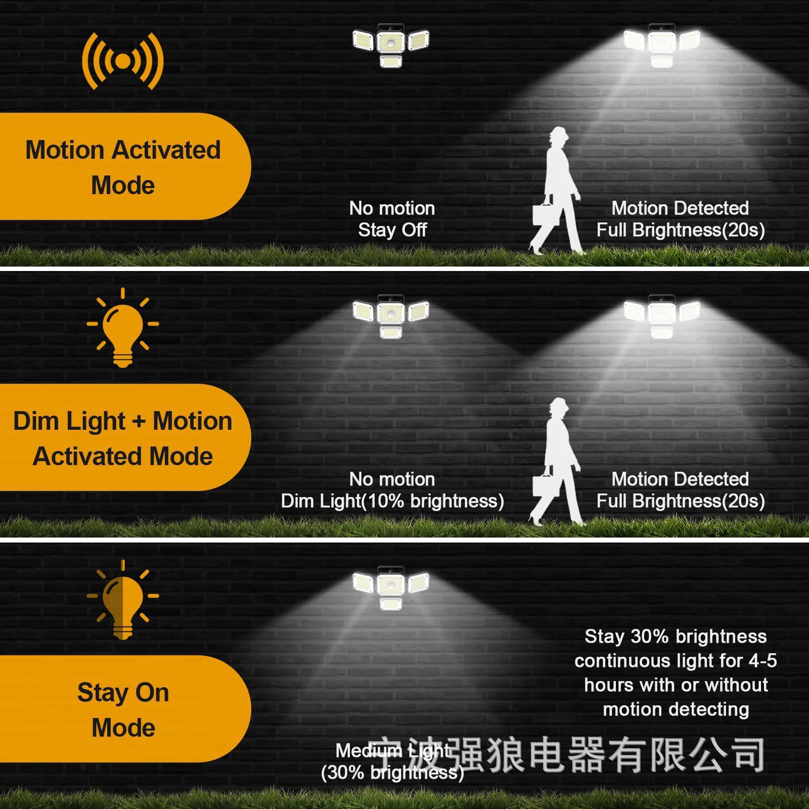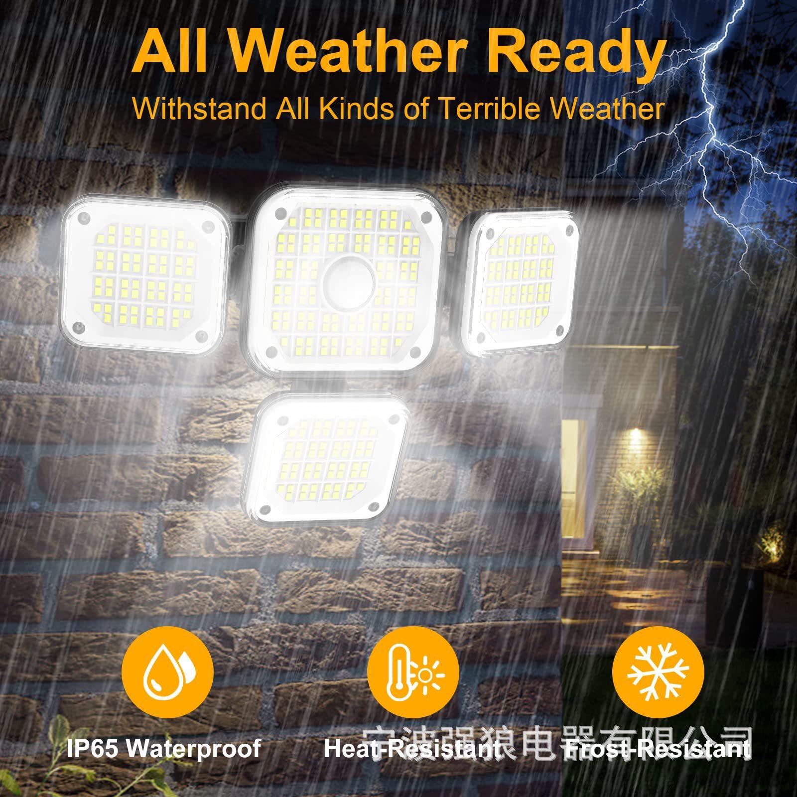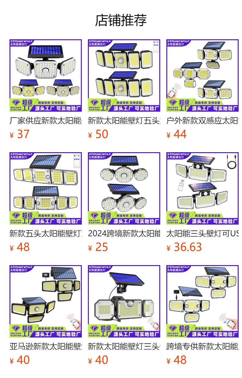 Lámpara de Pared LED Solar Nueva Personalizada Transfronteriza Sensor de Cuerpo Humano Lámpara Dividida de Cuatro Cabezales para Patio Lámpara de Pared de Luz Fuerte