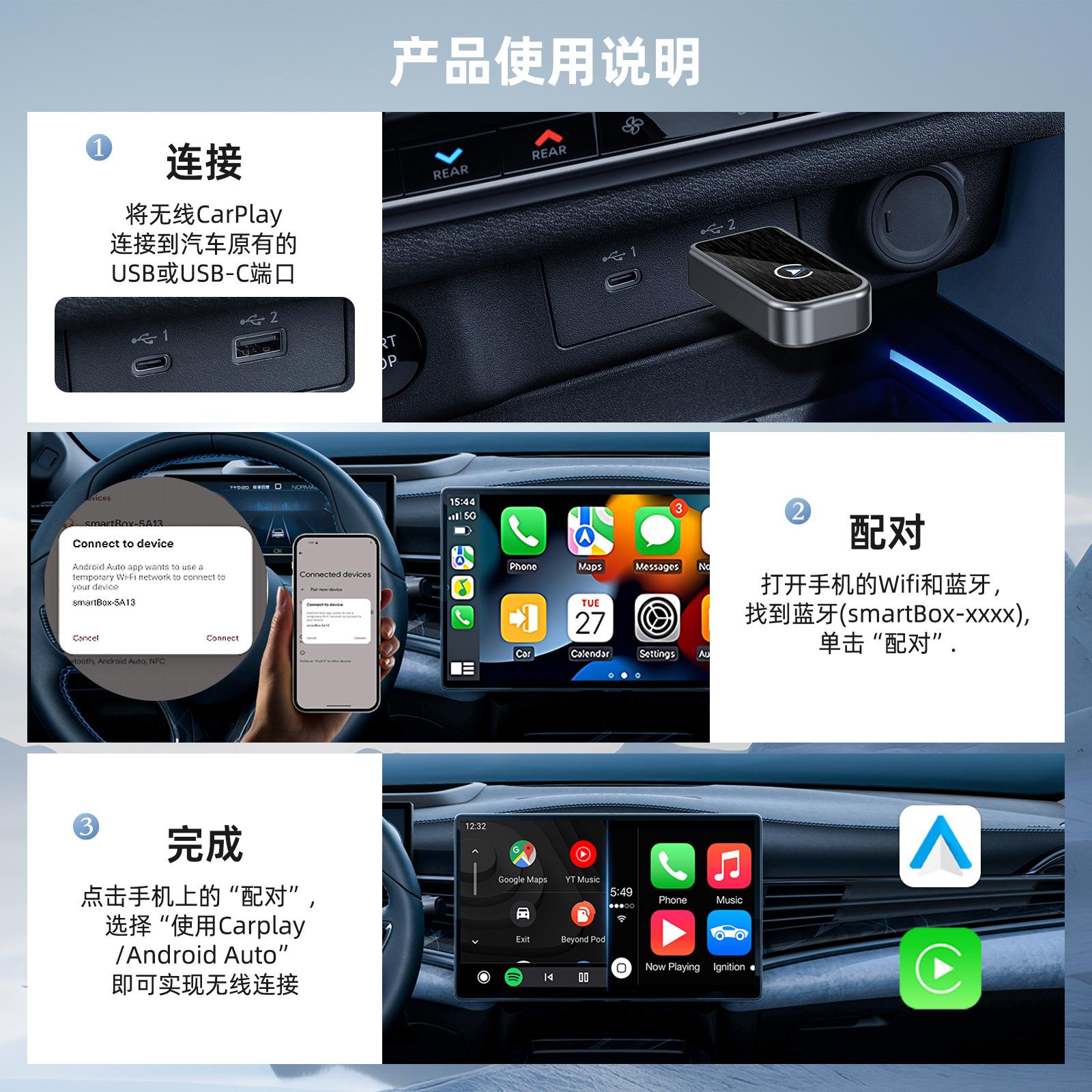 Caja carplay Android Auto para coche dos en uno coche original con cable a carplay inalámbrico venta al por mayor de fábrica