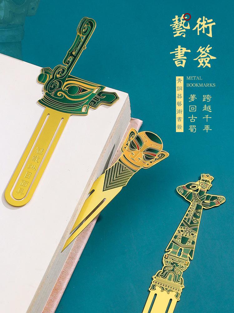 Sanxingdui Metal Marcapáginas Exquisito Creativo de Alta Gama Estilo Clásico Chino Souvenir Creativo Regalo Temporada de Graduación