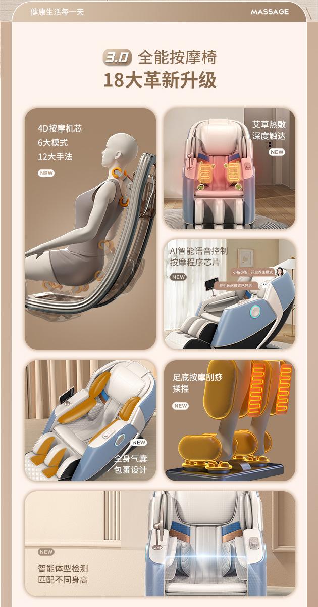 Sillón de Masaje Hogar Masaje de Cuerpo Completo Gravedad Cero Múltiple Función de Almacenamiento Pista Dual SL Cápsula Espacial Sillón de Masaje Eléctrico Transfronterizo