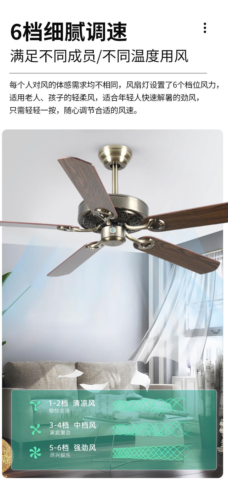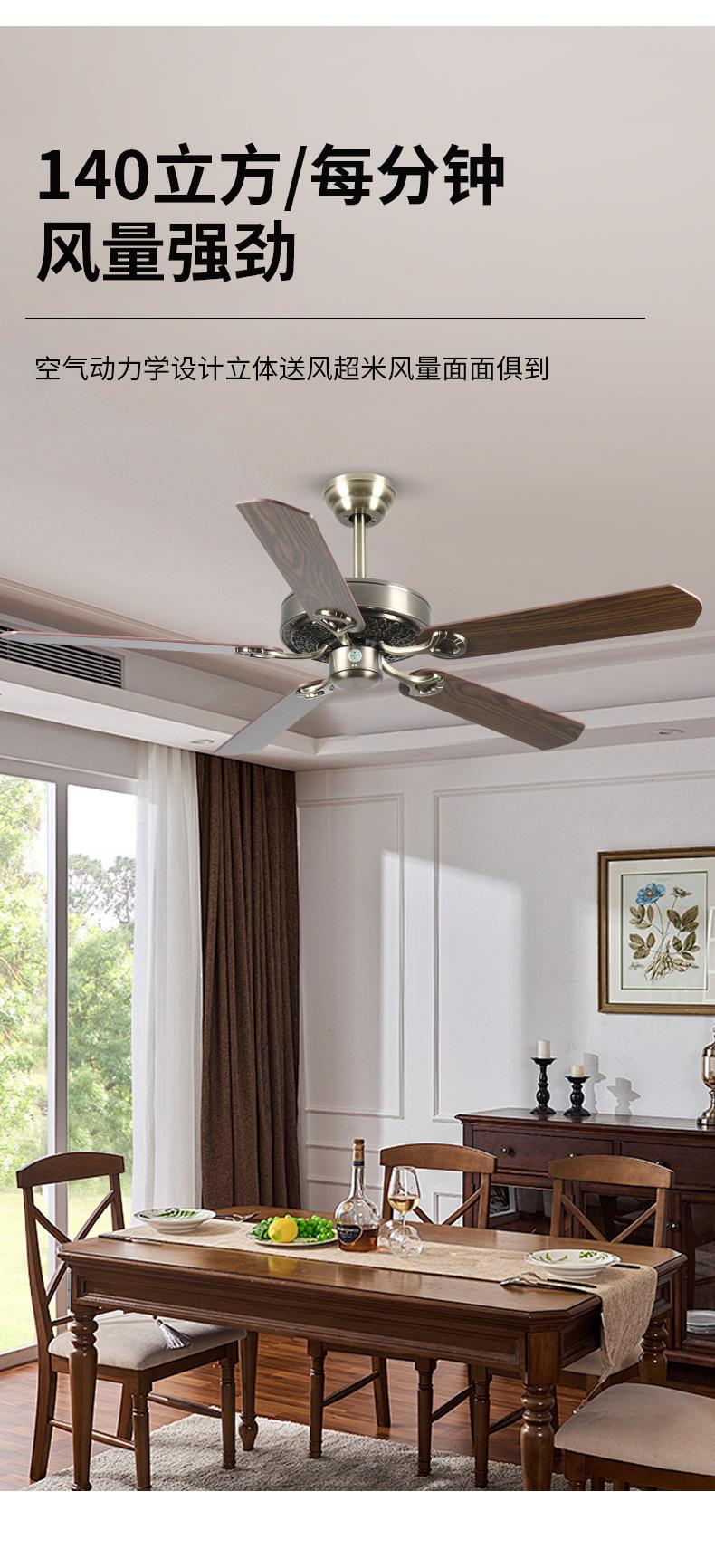 Ventilador de techo de gran tamaño estilo americano para sala de estar, comedor, ventilador antiguo comercial, conversión de frecuencia, ventilador eléctrico industrial silencioso, luz