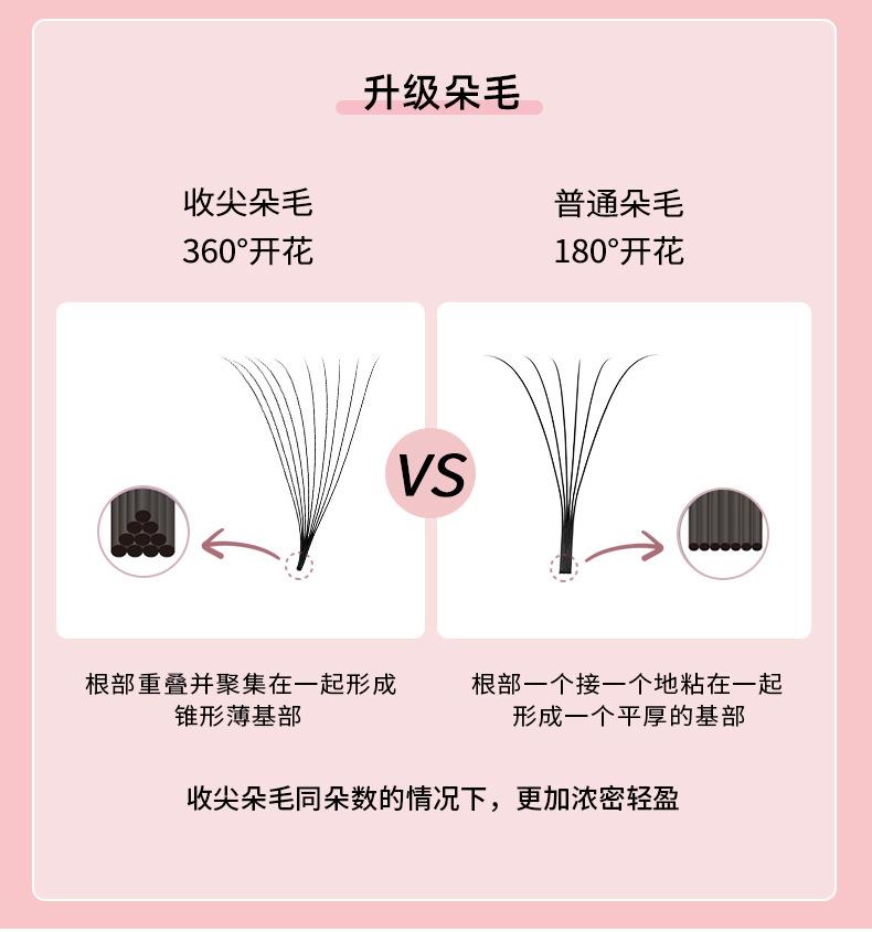 Pestañas postizas de collar de pestañas 5D medianas pegamento rizo de cabello afilado natural 5d de tallo largo pestañas florecientes tienda de belleza con 0.05mm