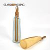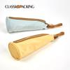 | Bolsa de almacenamiento de cosméticos de lona de algodón, ecológica, con veta de madera auténtica, color block, con cremallera, bolsa de viaje con forma de concha. |