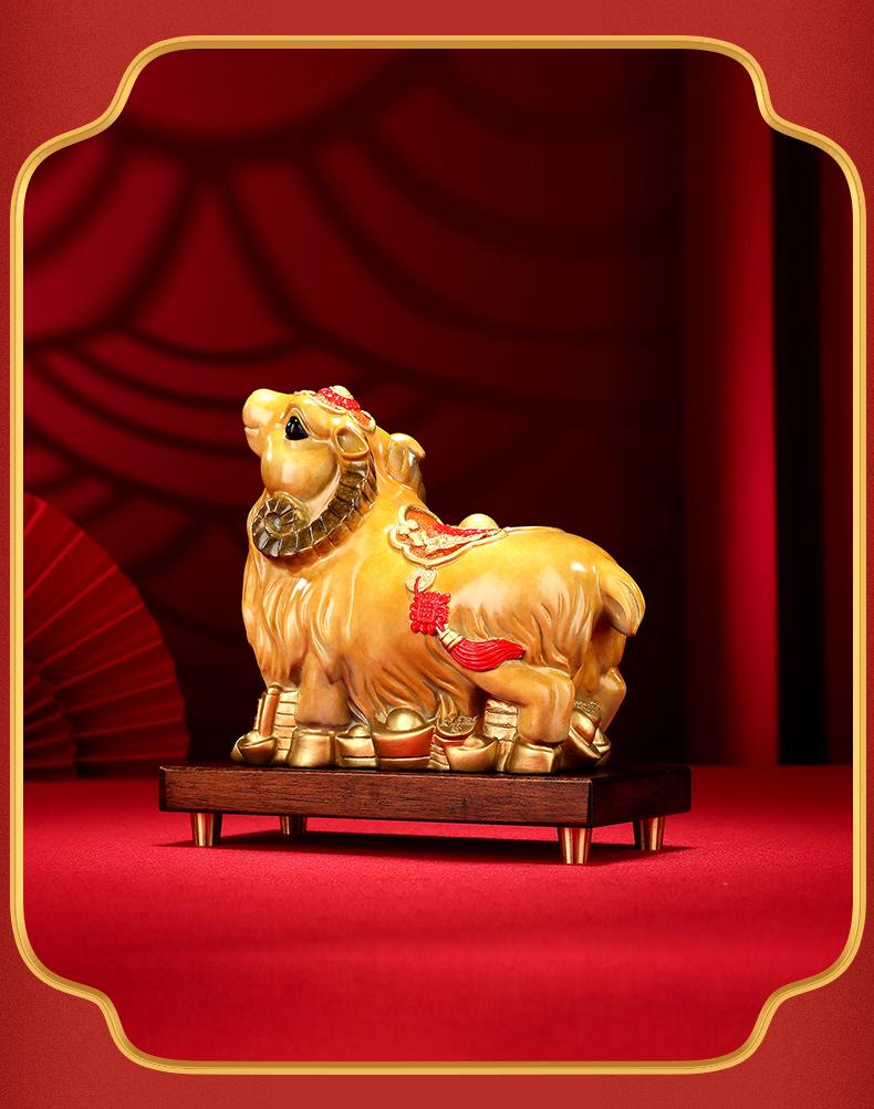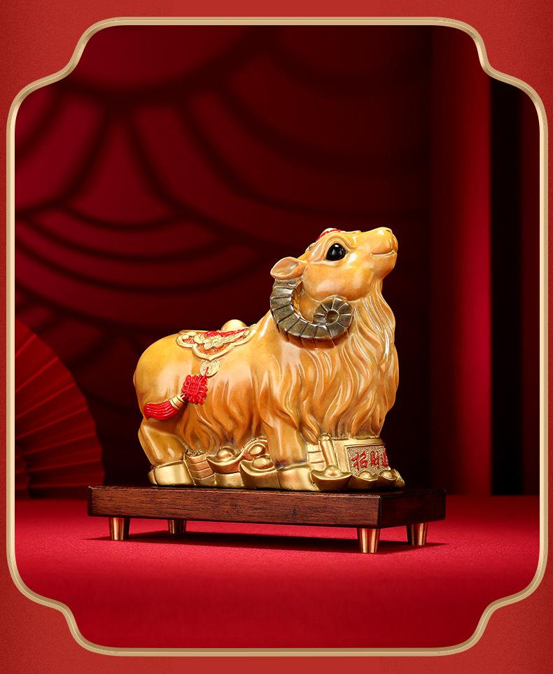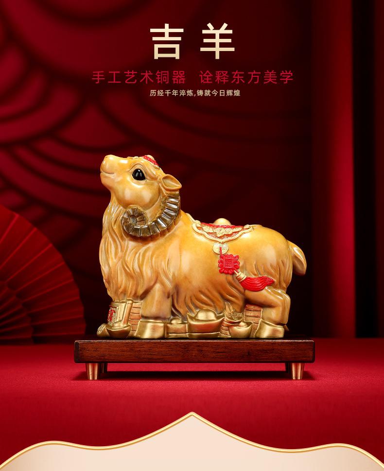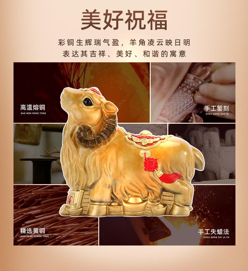Adornos de ovejas del zodíaco de cobre de color Xinxiang, adornos de ovejas para escritorio de sala de estar, decoración de latón, regalo