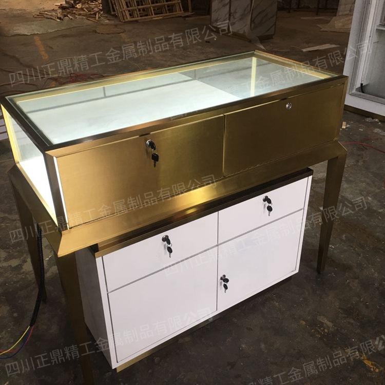 Vitrina de Exhibición de Joyería para Centro Comercial Joyería de Oro Acero Inoxidable Vidrio Mostrador de Exhibición Venta al por Mayor de Fábrica