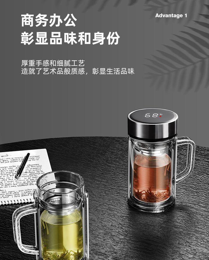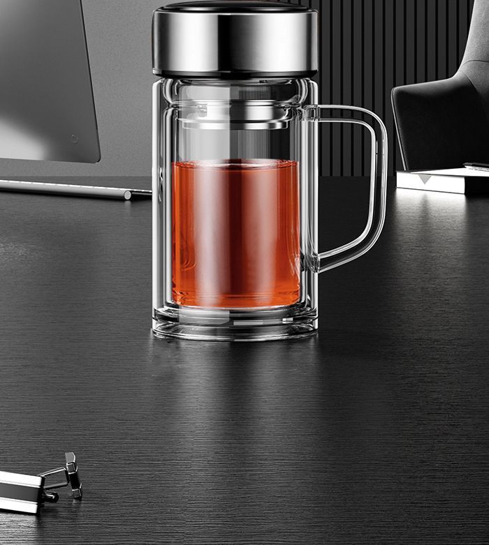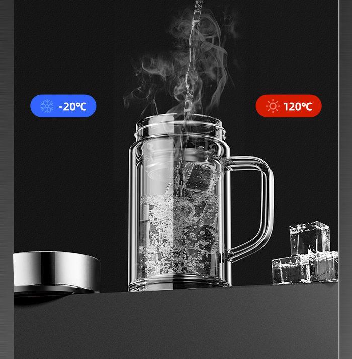 Taza de Té Doméstica de Vidrio de Doble Capa con Asa de Gran Capacidad Taza de Té de Oficina Gruesa para Negocios con Asa Taza de Té