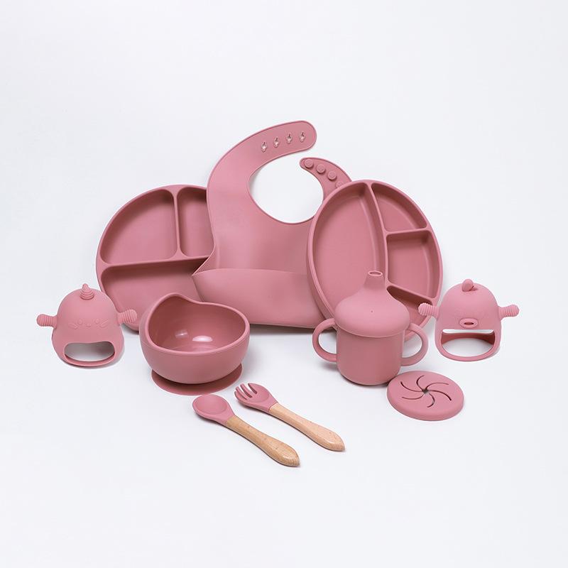 Juego de vajilla de silicona para alimentación infantil Jinxinsheng con ventosa, resistente a caídas, con compartimento para suplemento alimenticio para bebés