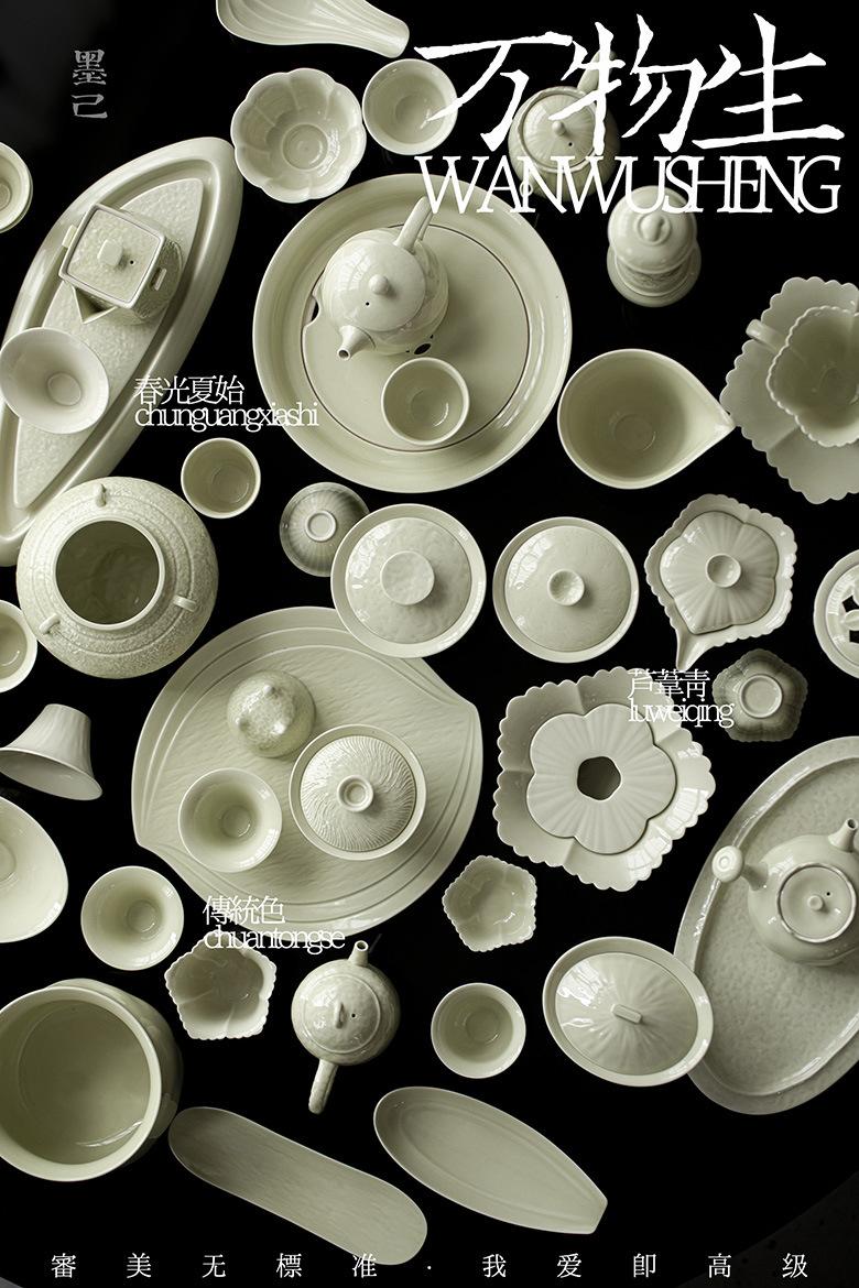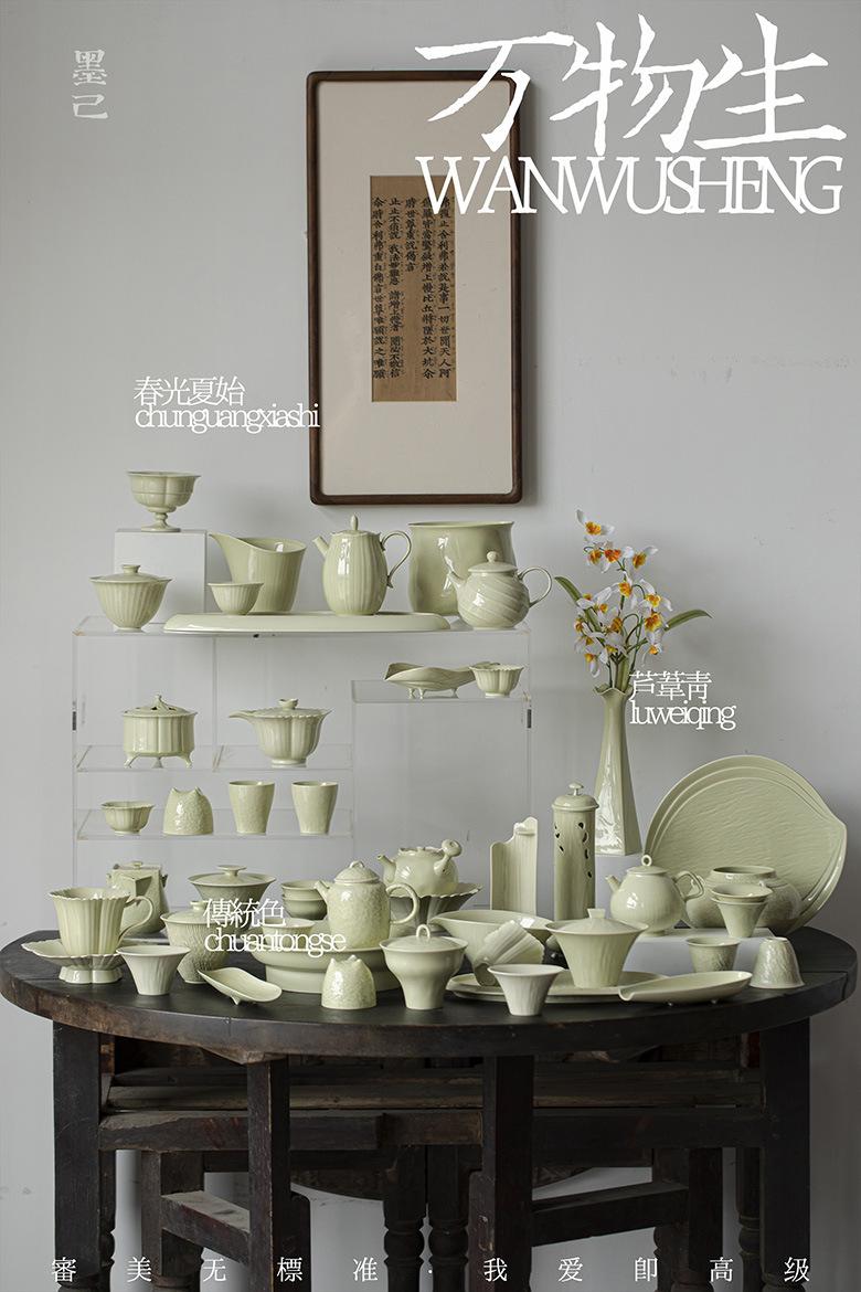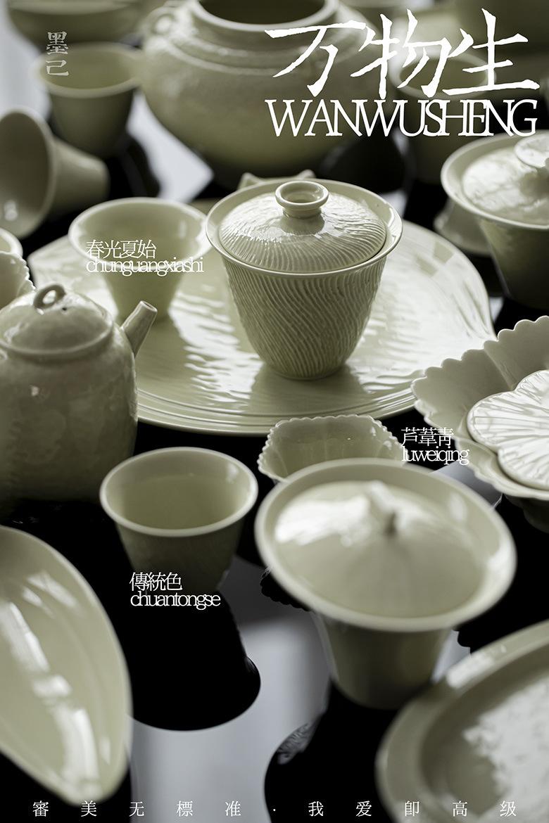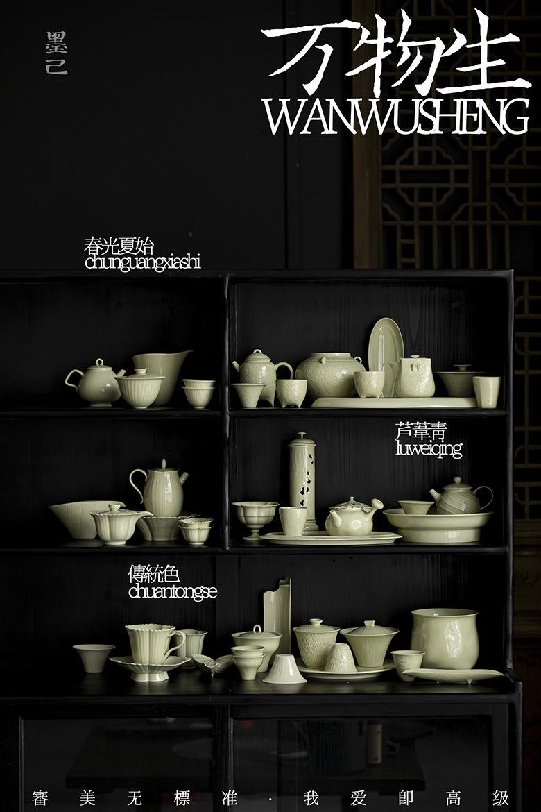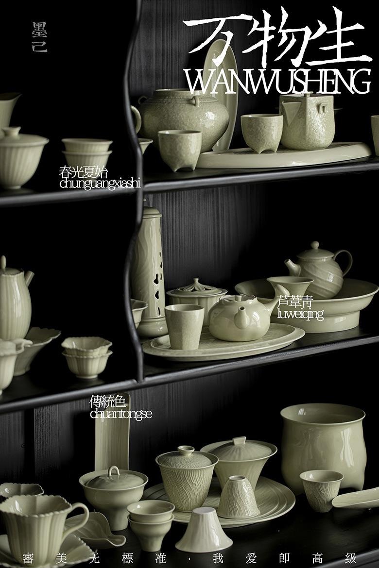 Colección de la serie Wanwusheng de Mo Ji, imitación de canción, esmaltado verde, caña verde, cuenco, tetera, taza de té, olla, soporte para ceremonia del té, incienso, accesorios para ceremonia.