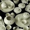 Reed green-small lace-five hand-held pot, Reed green-small lace-five petal teapot, Reed green-small lace-coffe...