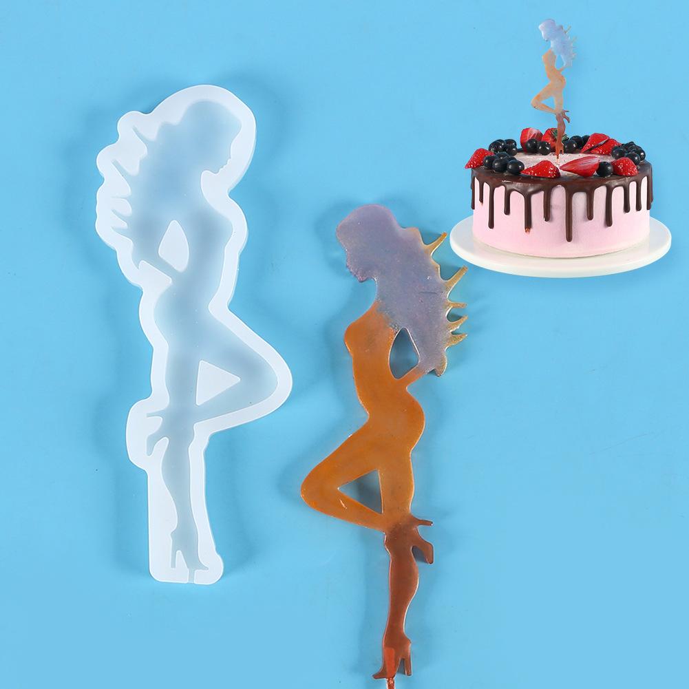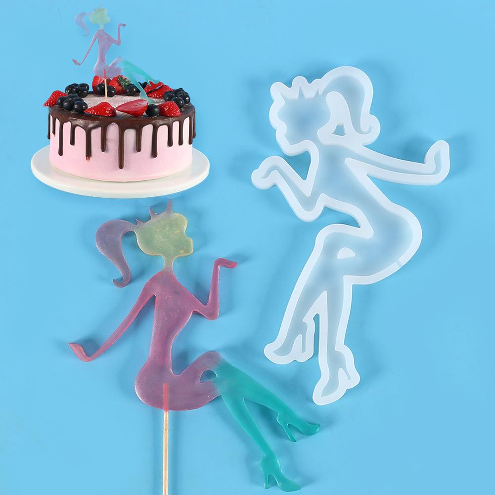 Molde de silicona para hornear pasteles de bricolaje, molde de silicona para pastel de piruleta de chocolate con diseño de pareja de ángeles y niñas modernas