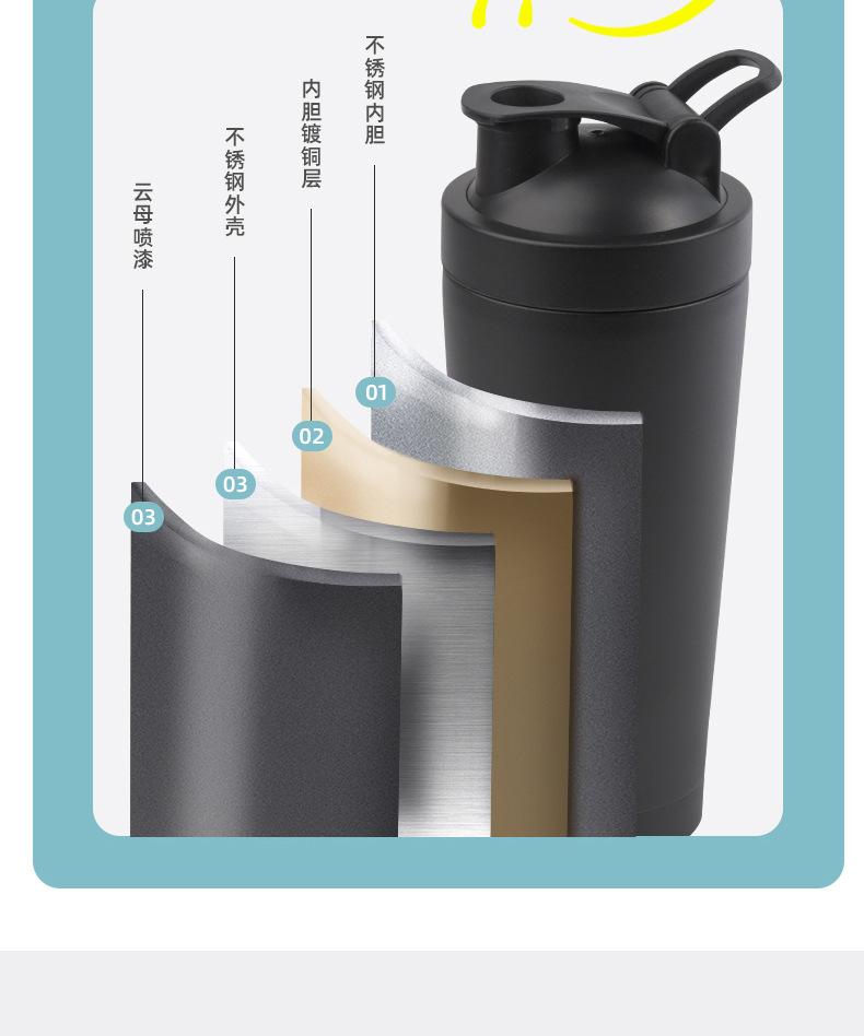 Vaso mezclador de proteína de acero inoxidable transfronterizo, fitness, portátil, de gran capacidad, vaso de fitness, vaso de agua deportivo portátil al por mayor