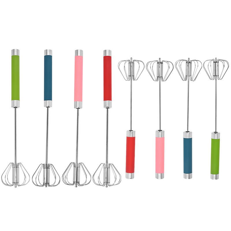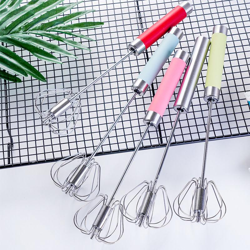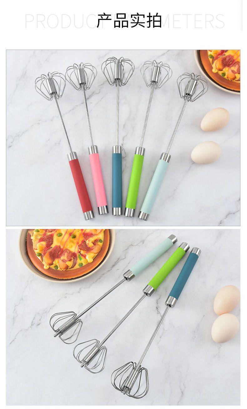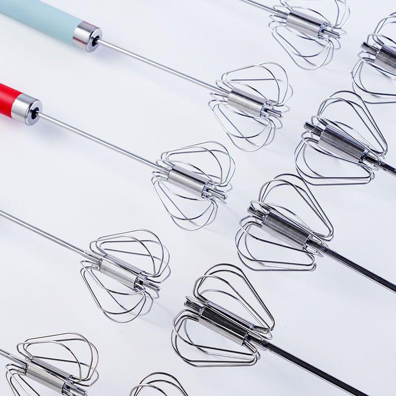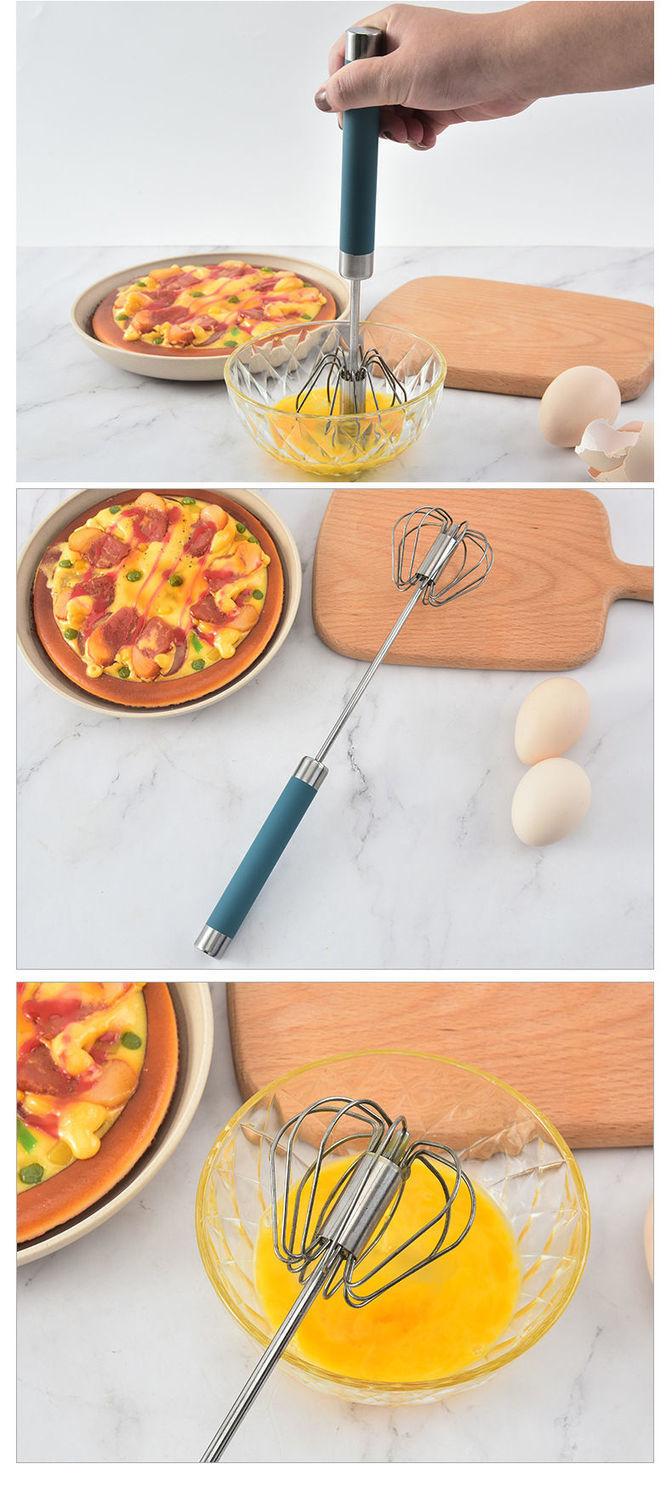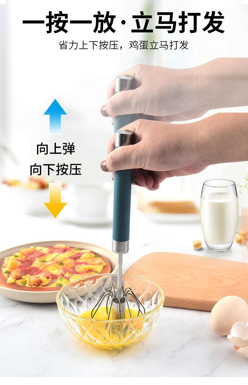 Batidor de huevos semiautomático de acero inoxidable, batidor de crema giratorio automático de presión manual, batidor de huevos, licuadora multiusos