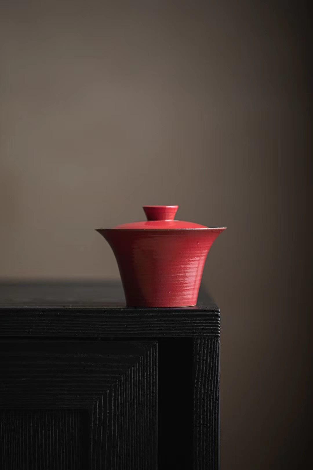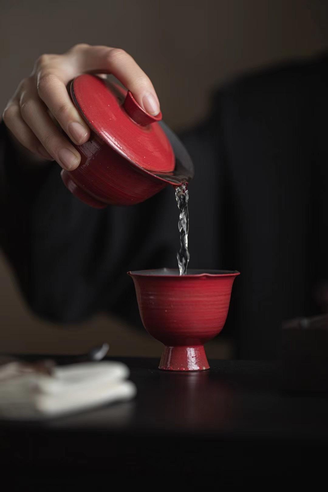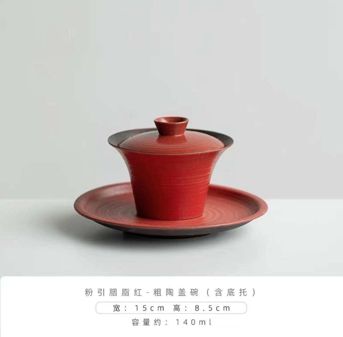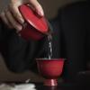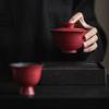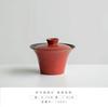 Cuenco de cerámica estilo japonés con cubierta de herradura, de cerámica roja de la Ciudad Prohibida, hecho a mano en polvo, juego de té de kung fu, taza individual