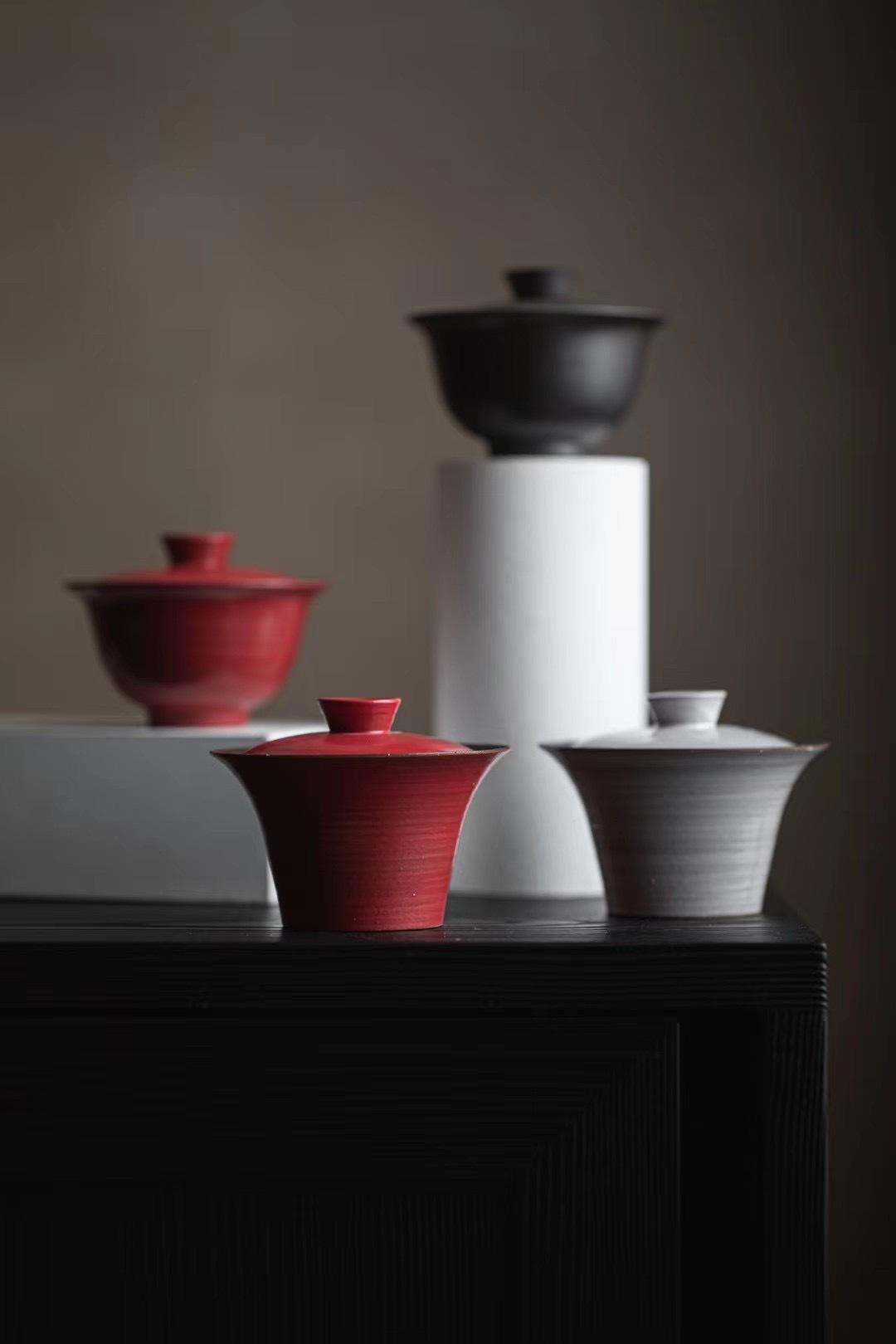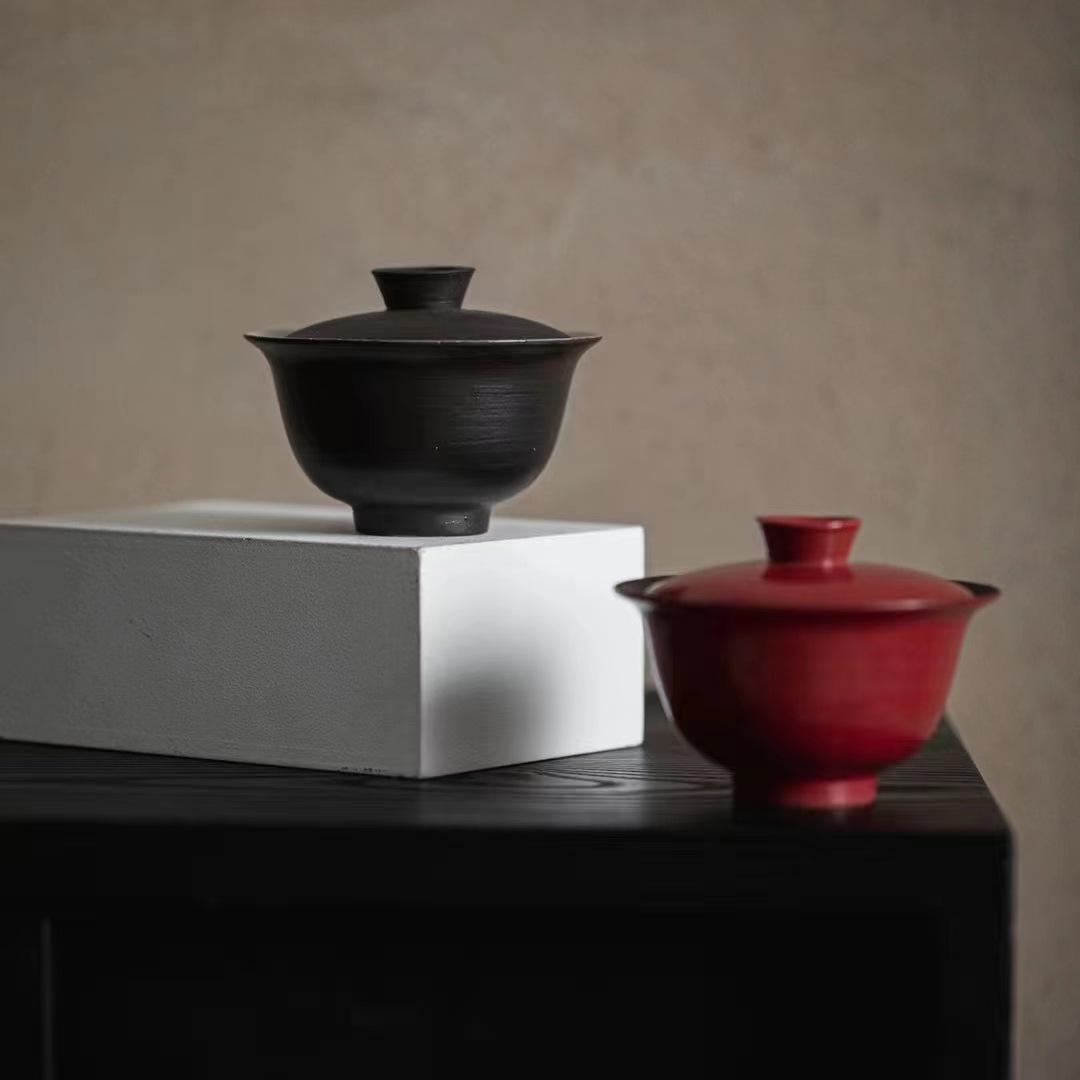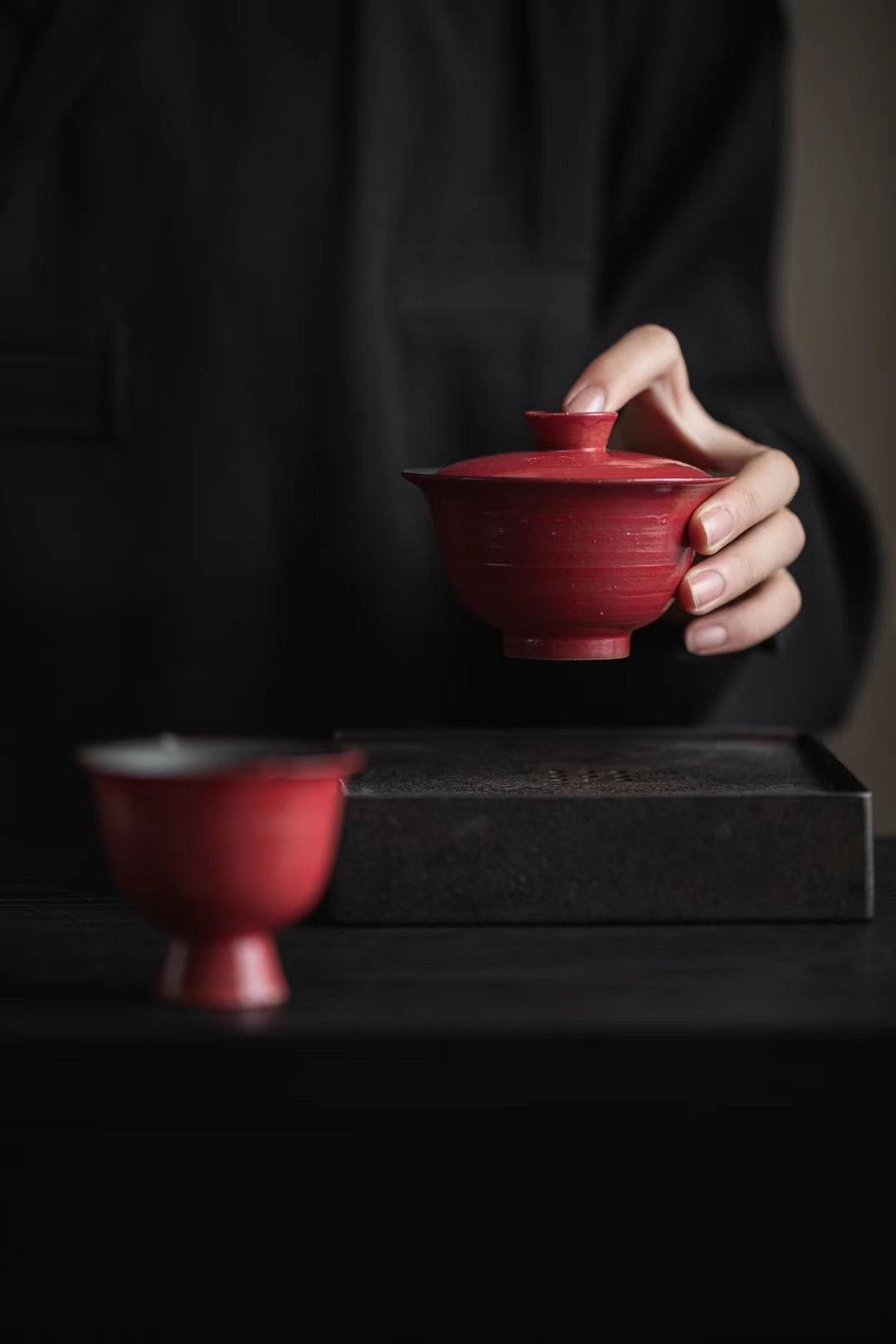 Cuenco de cerámica estilo japonés con cubierta de herradura, de cerámica roja de la Ciudad Prohibida, hecho a mano en polvo, juego de té de kung fu, taza individual