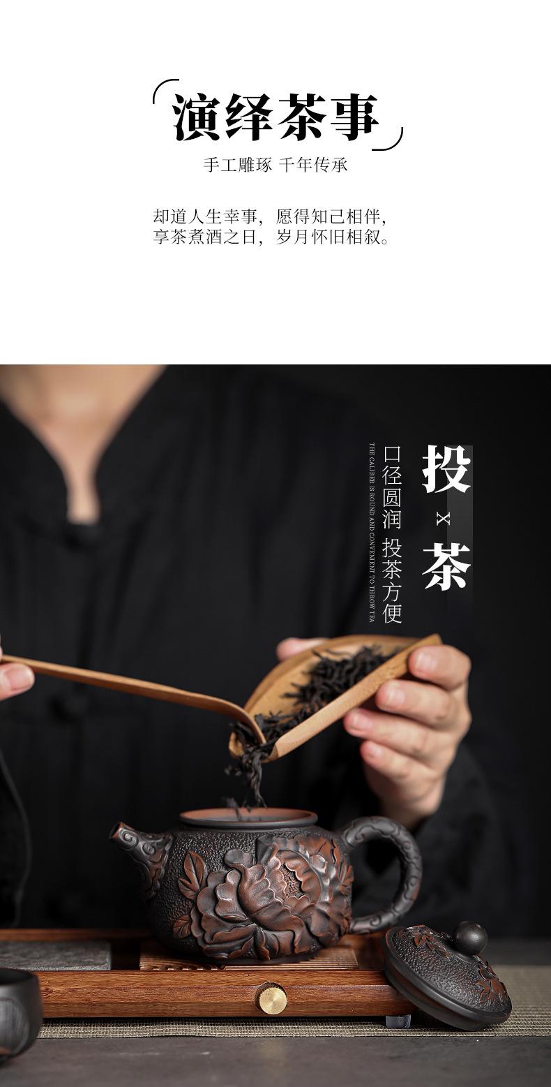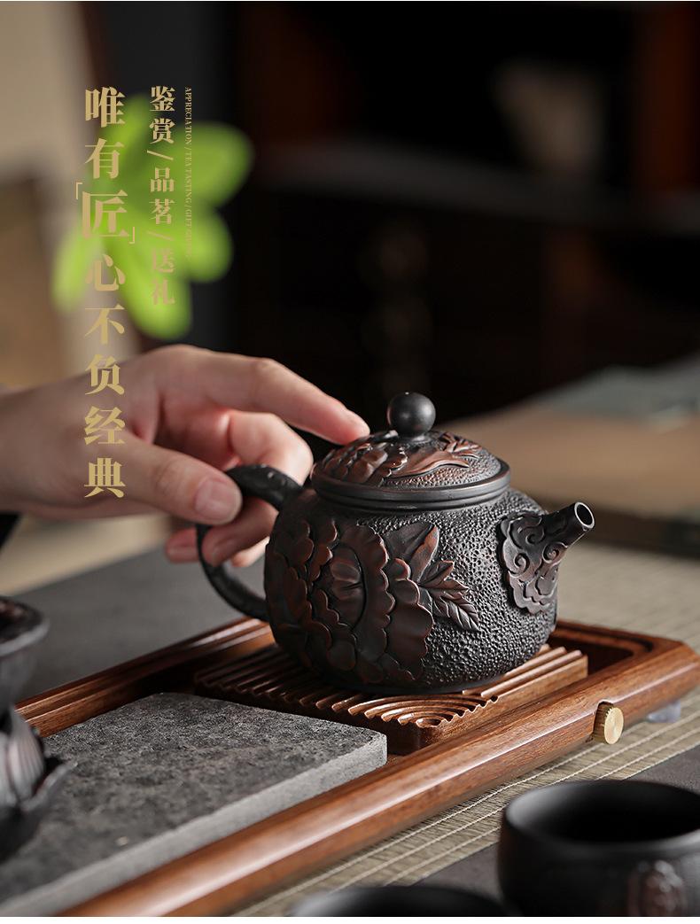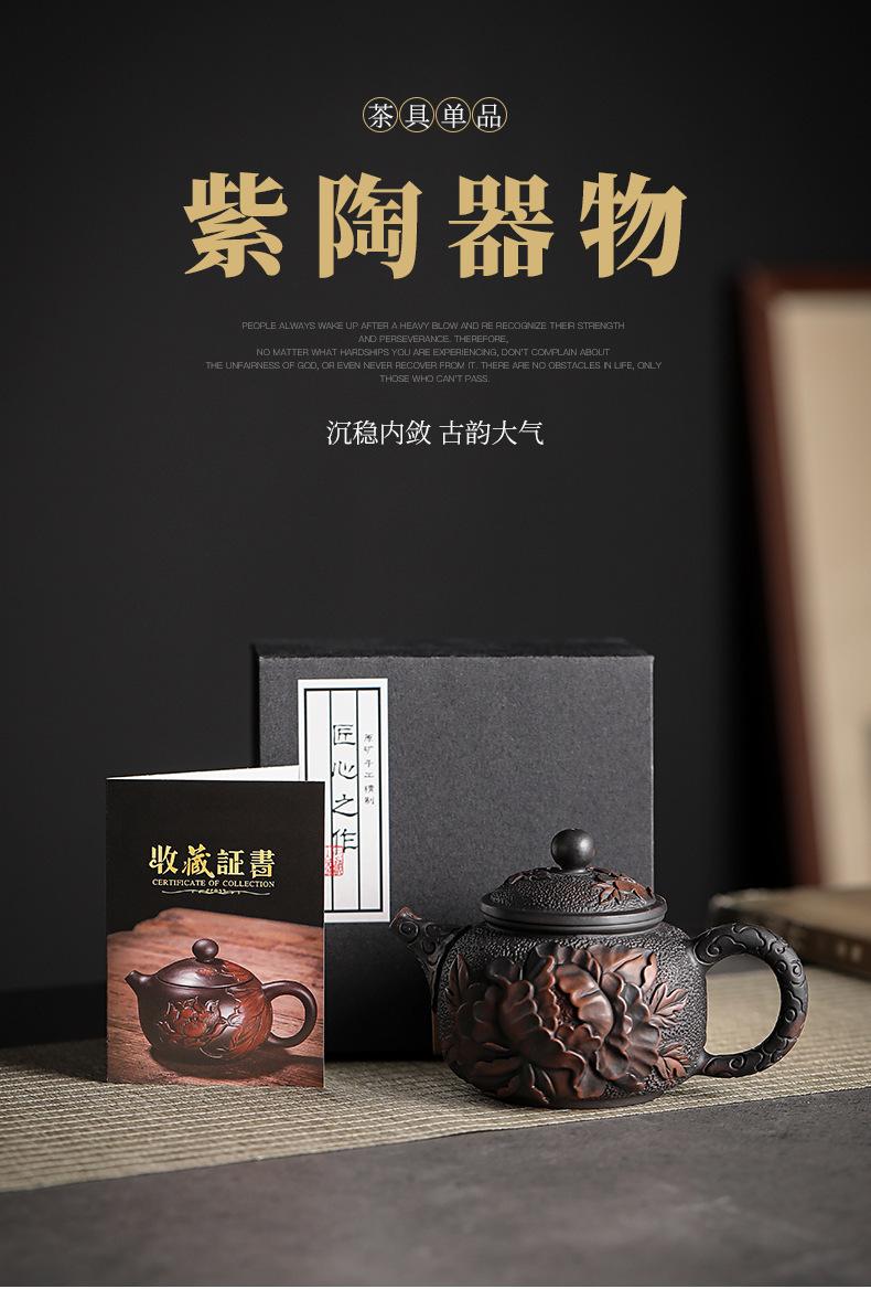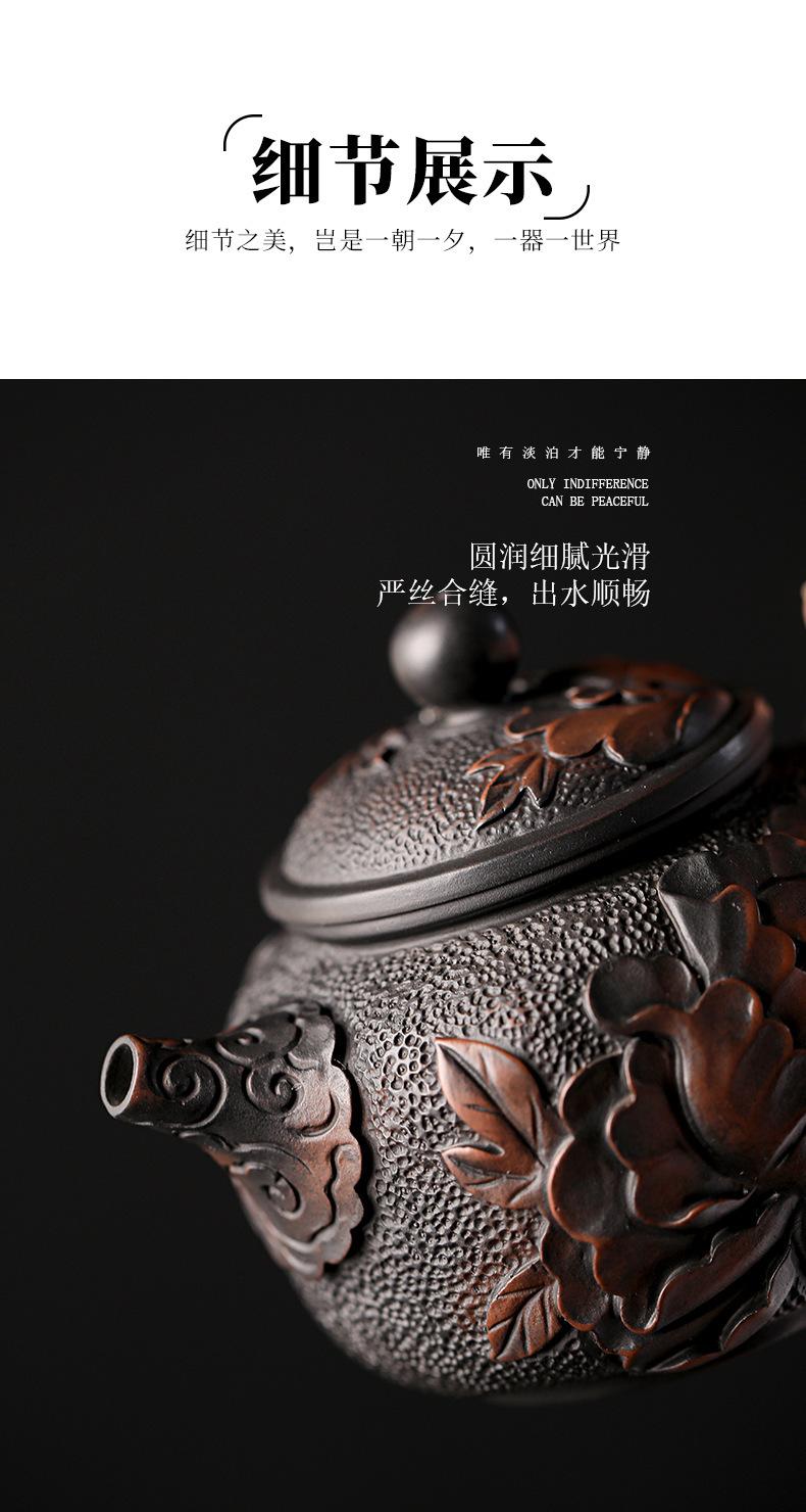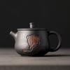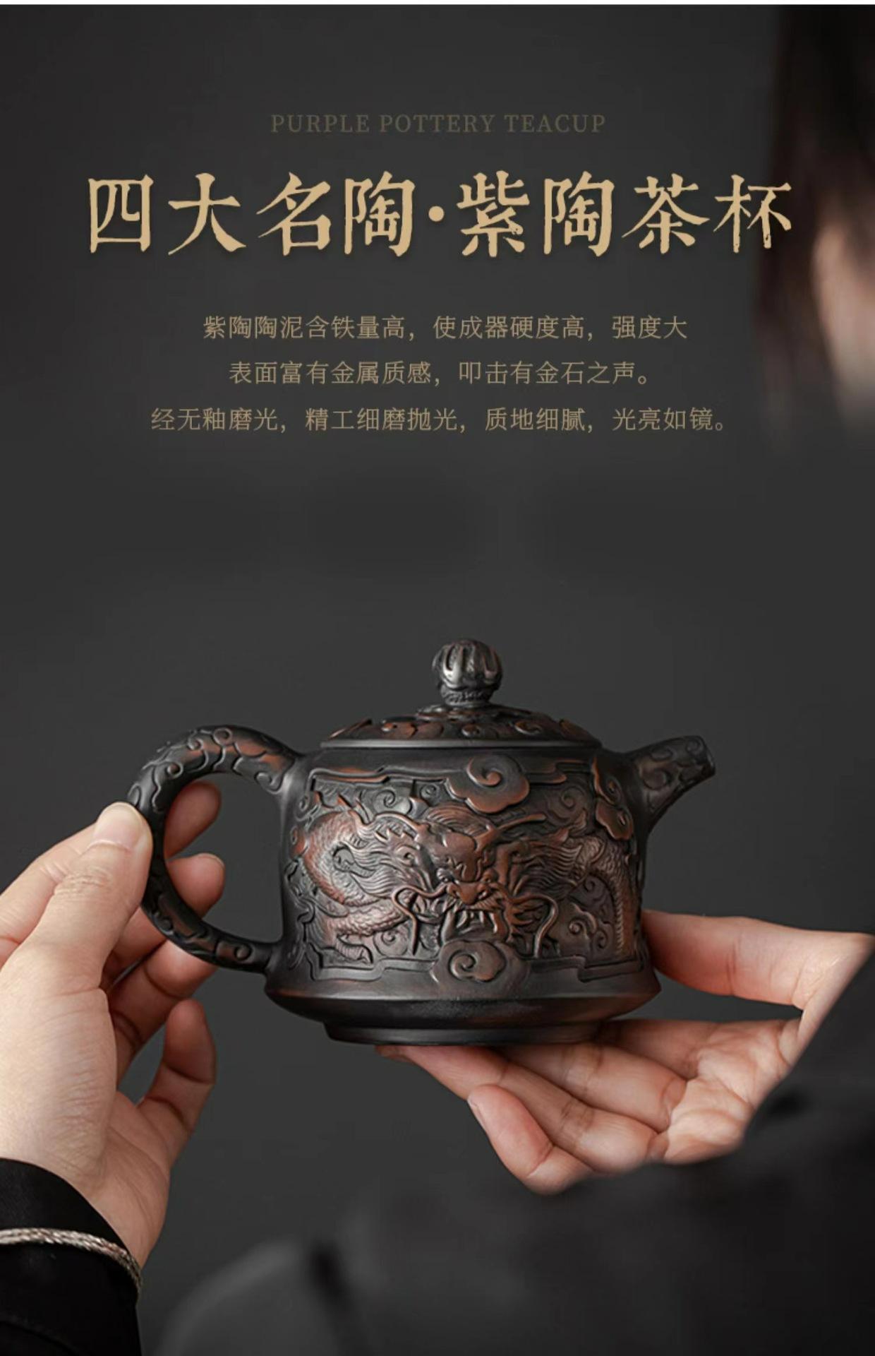 Tetera de cerámica morada, tetera hecha a mano, tetera antigua de kung fu de arcilla morada, juego de té para el hogar, tetera tallada, tetera individual Xi Shi