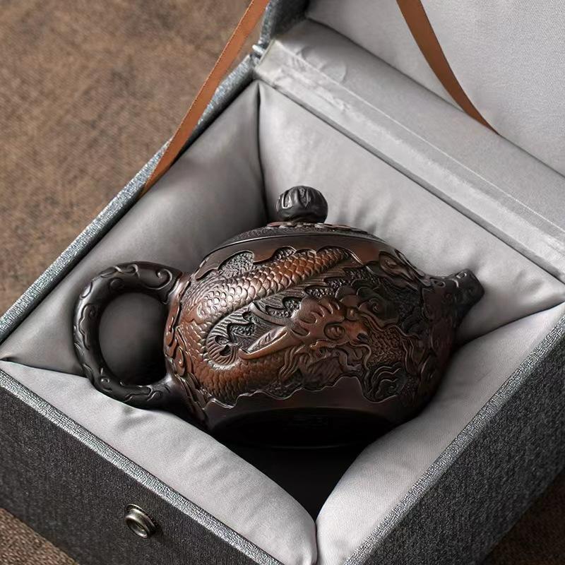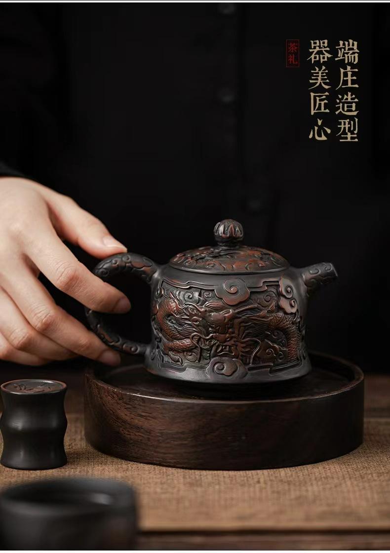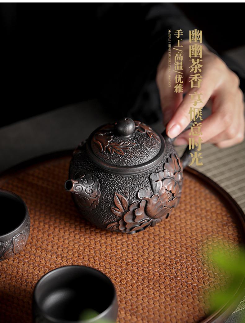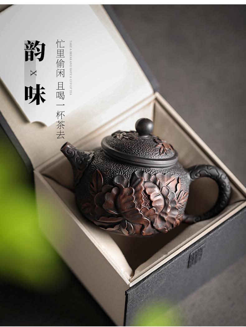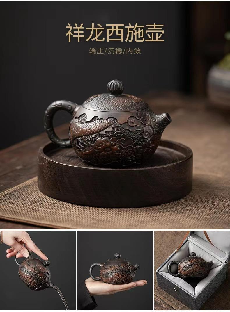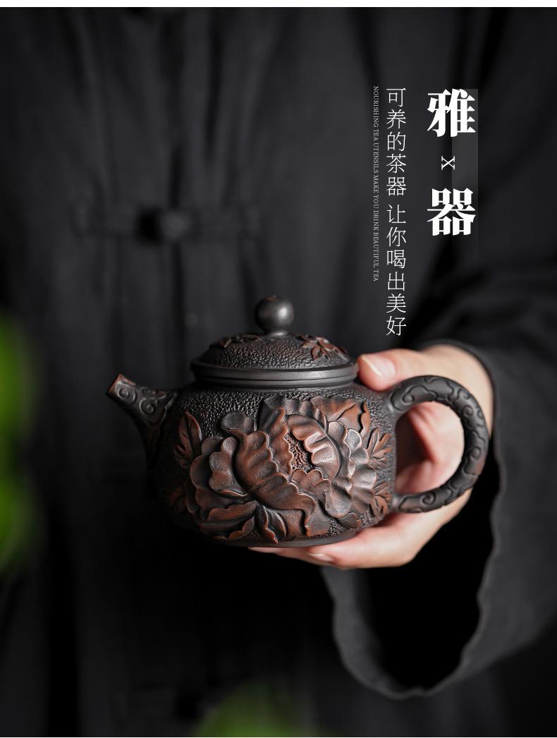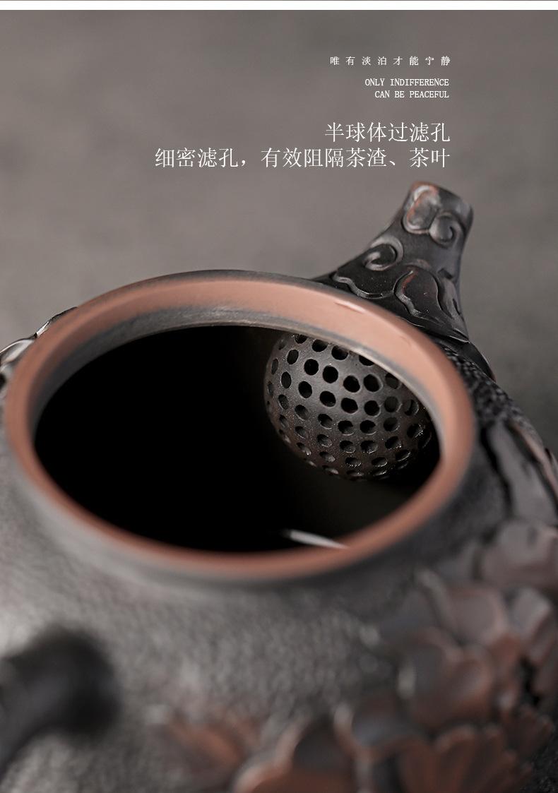 Tetera de cerámica morada, tetera hecha a mano, tetera antigua de kung fu de arcilla morada, juego de té para el hogar, tetera tallada, tetera individual Xi Shi