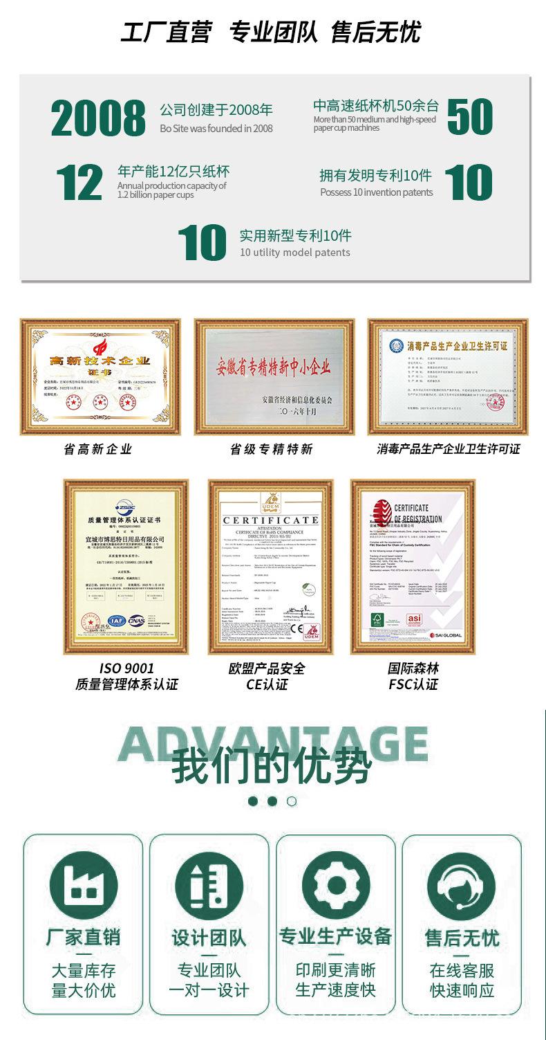 Vaso de Papel Desechable Engrosado Leche de Soya Té con Leche Bebida Caliente Para Llevar Vaso de Agua Hogar Comercial Vaso de Papel Vaso de Café Venta al por Mayor