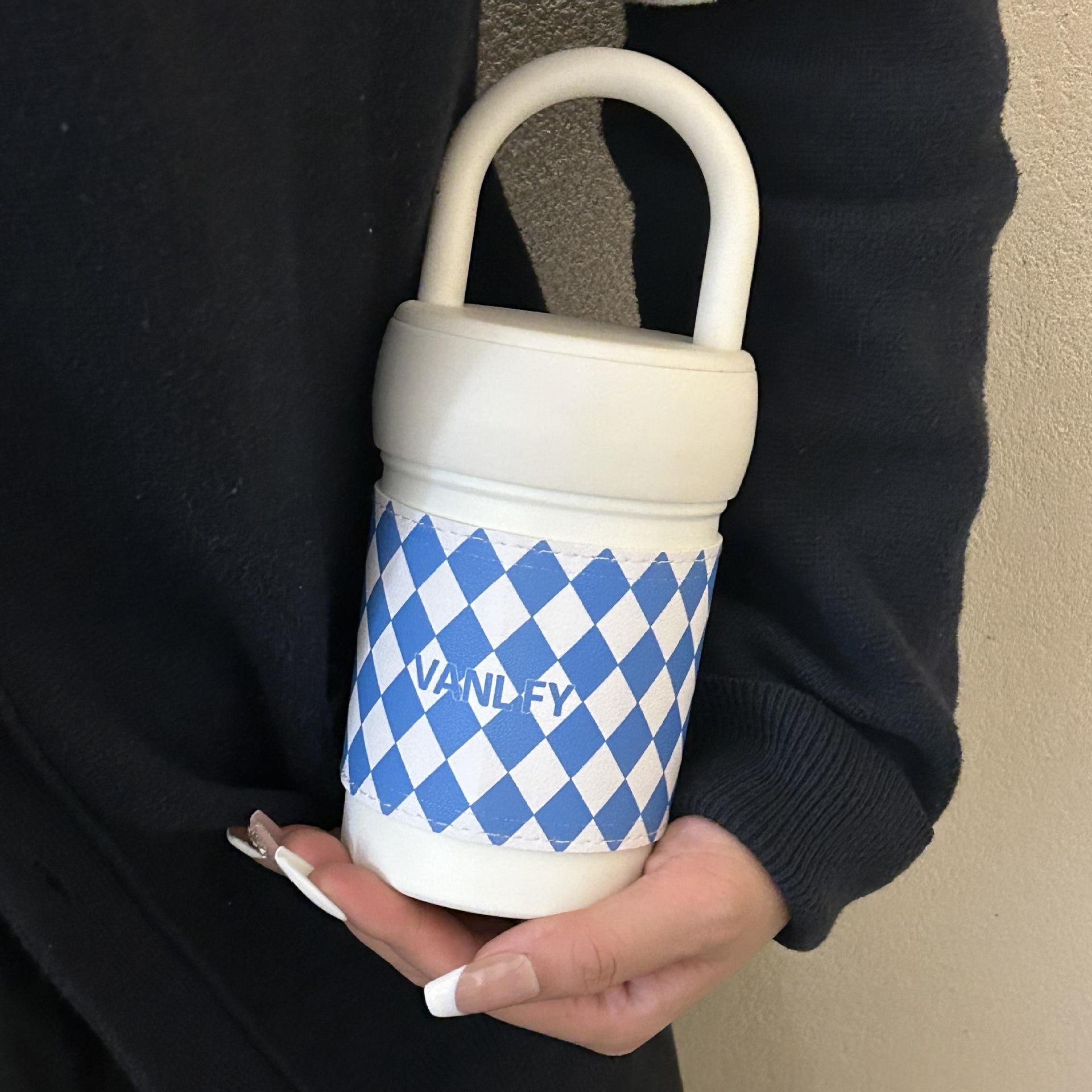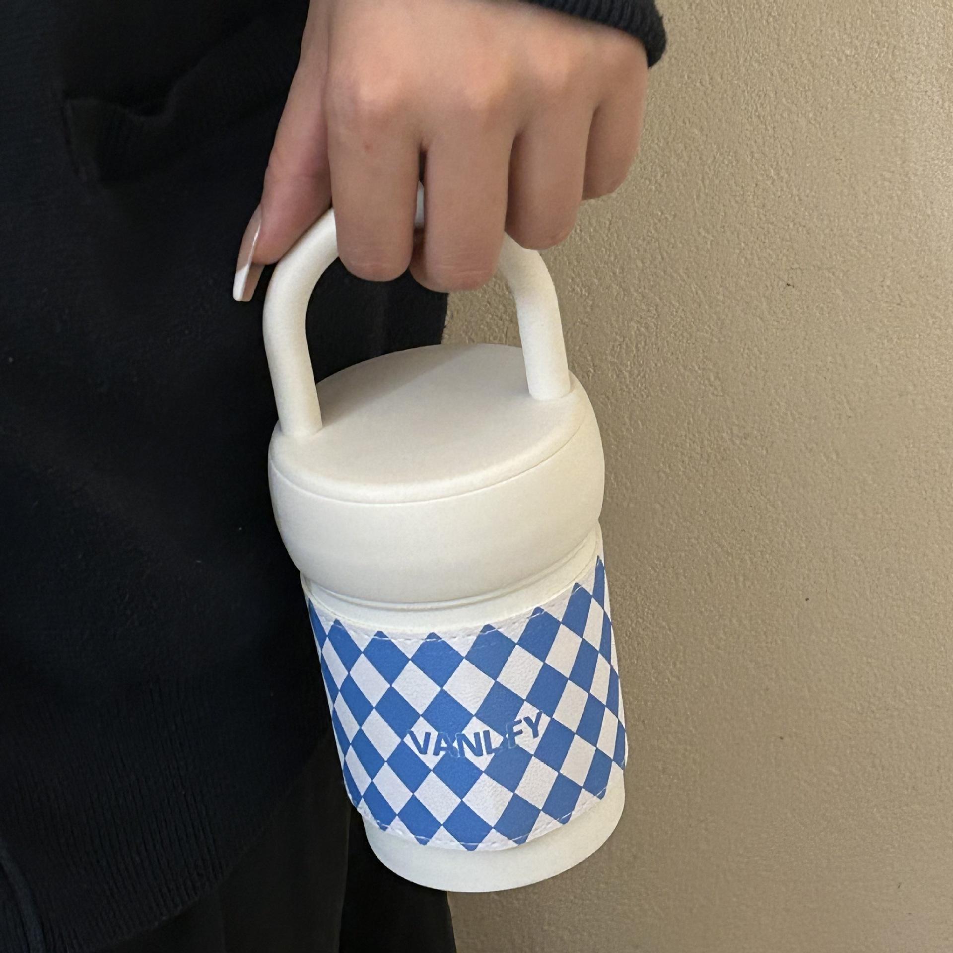 White Cup with white cover + blue grid cup cover, White Cup with white cover + pink grid cup cover, White Cup ...