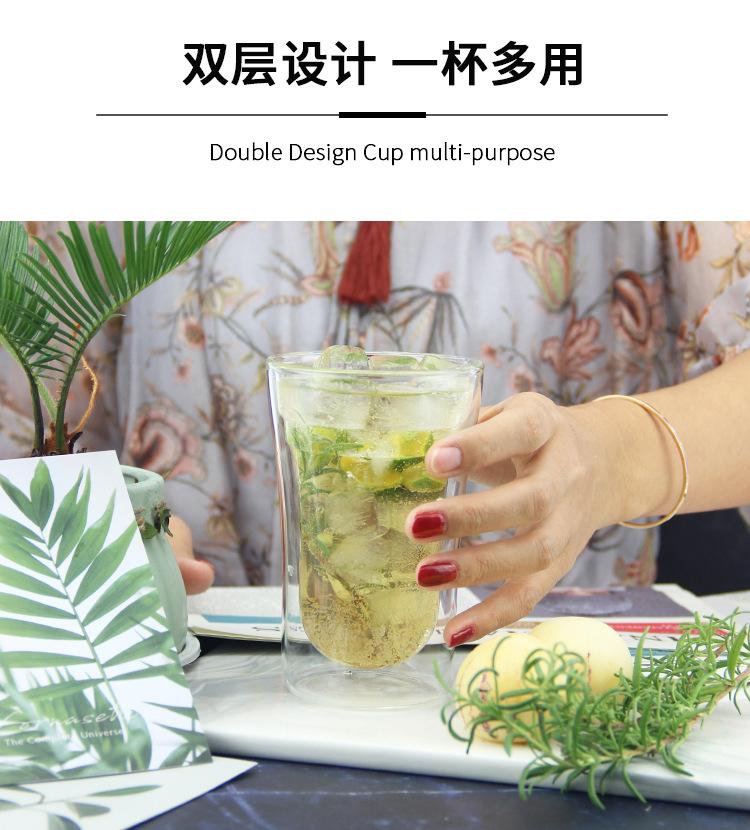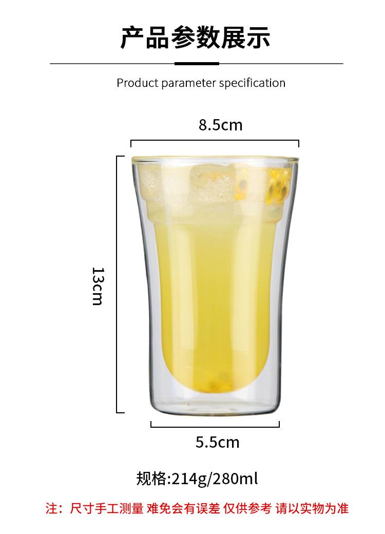 Vaso de Vidrio Transparente de Alto Borosilicato Copa para Fruta Vaso de Doble Capa Aislado para Café 280ml Vaso para Leche Venta al por Mayor