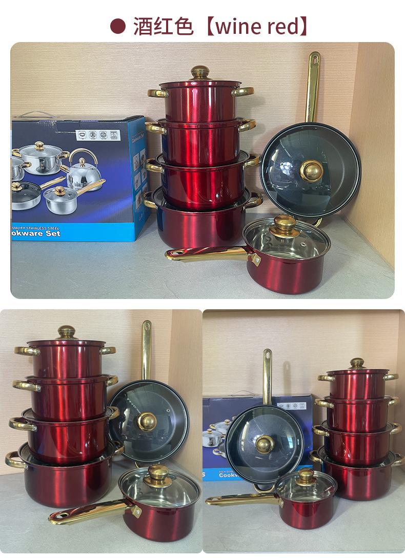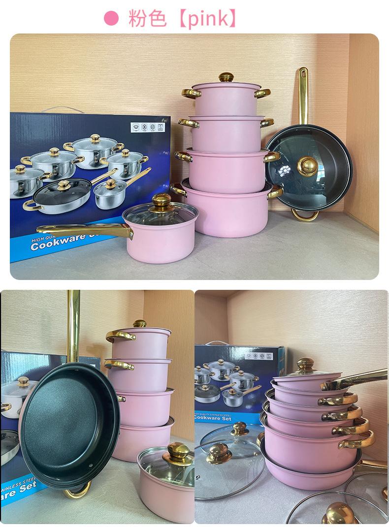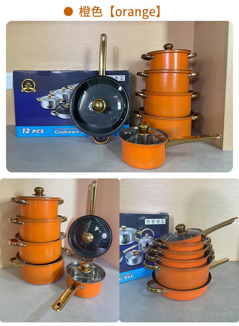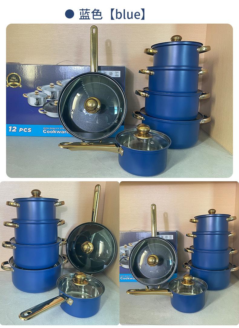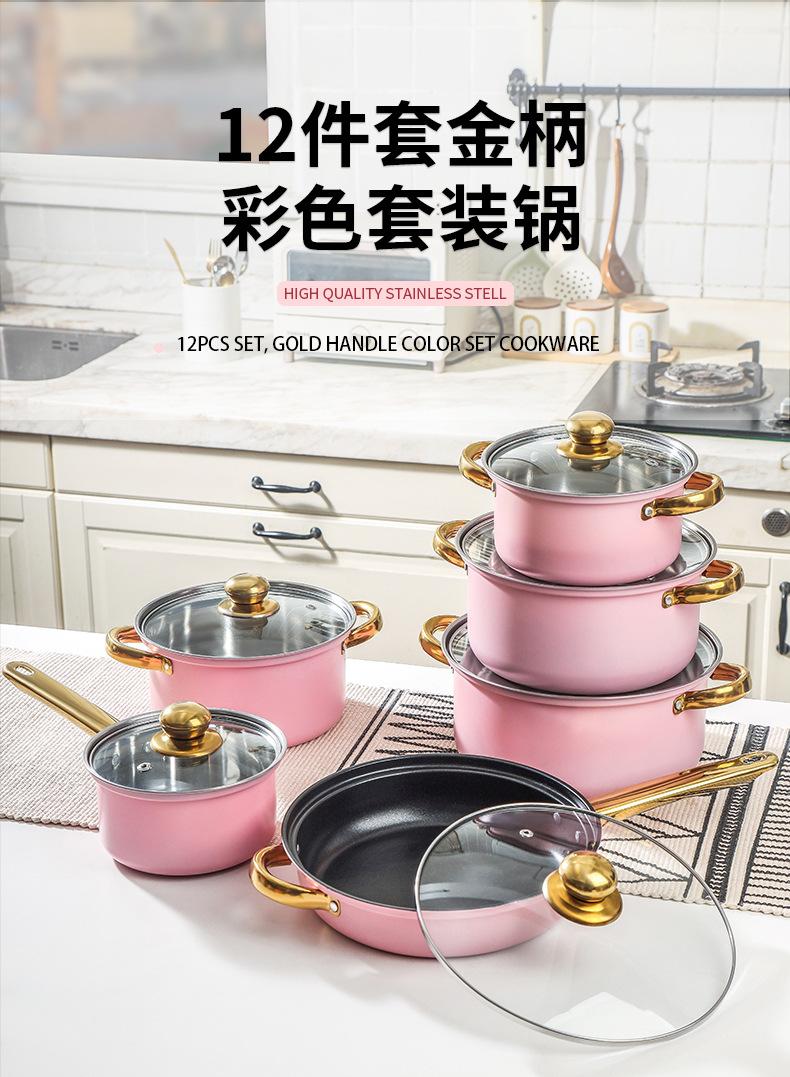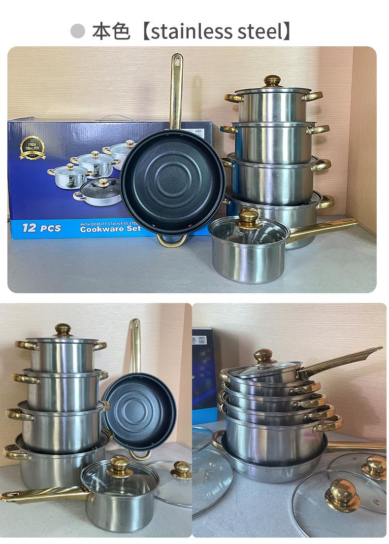 Olla dorada de acero inoxidable exclusiva de 12 piezas para sopa, sartén, leche y cocinar.