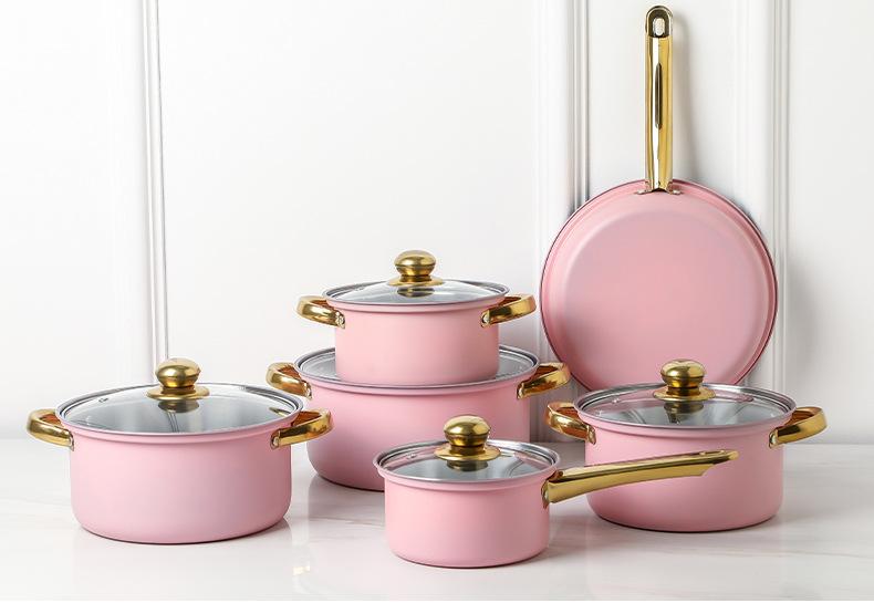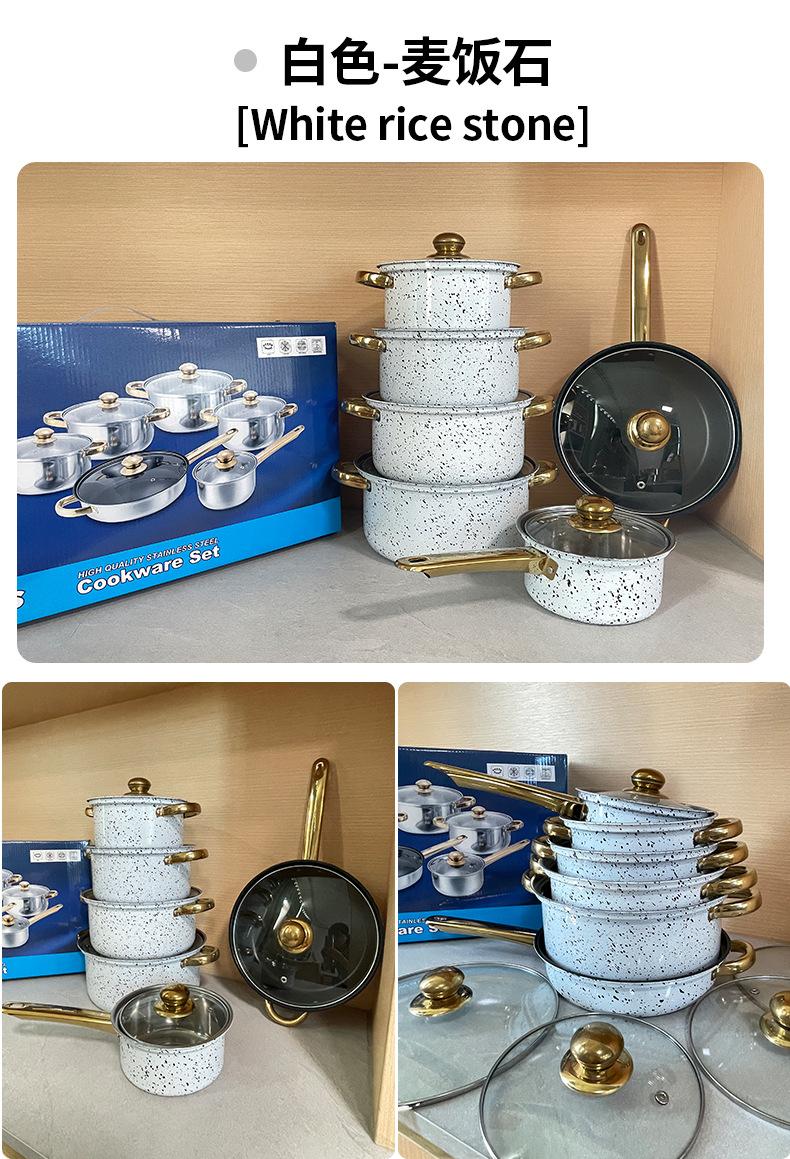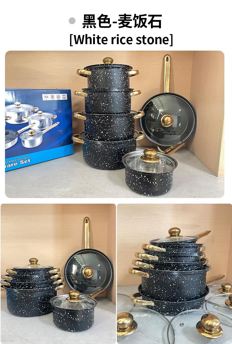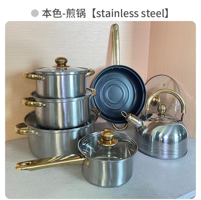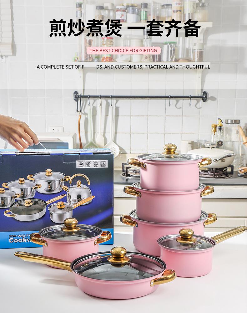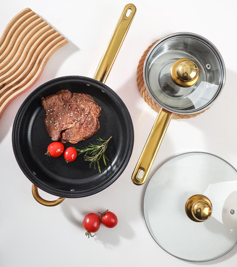 Olla dorada de acero inoxidable exclusiva de 12 piezas para sopa, sartén, leche y cocinar.