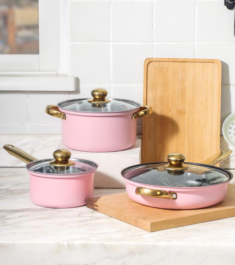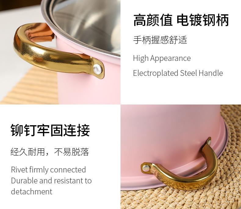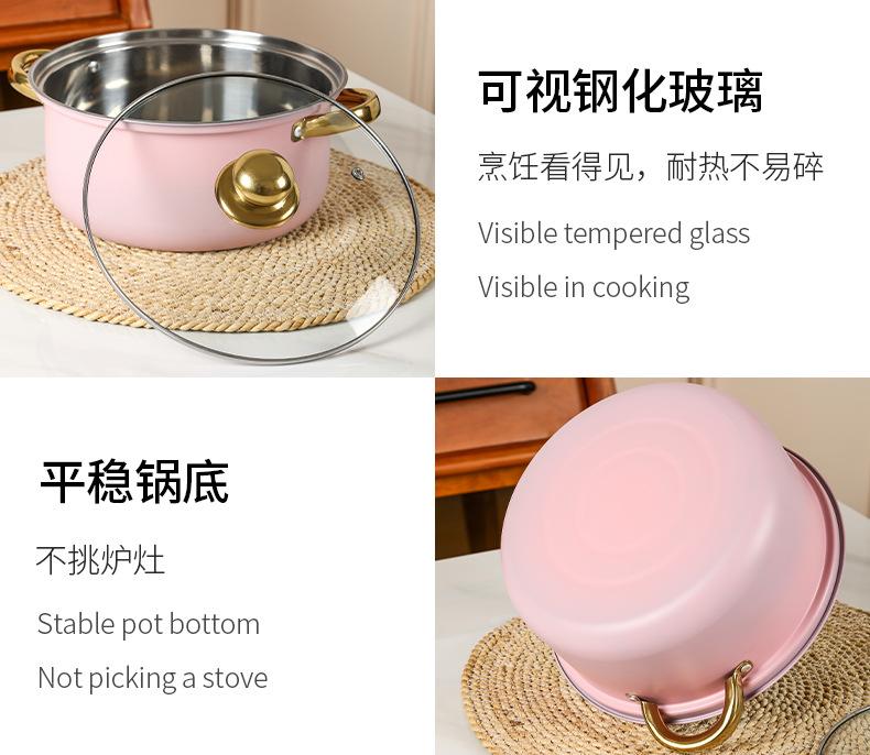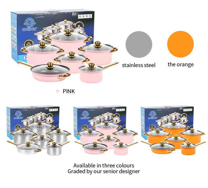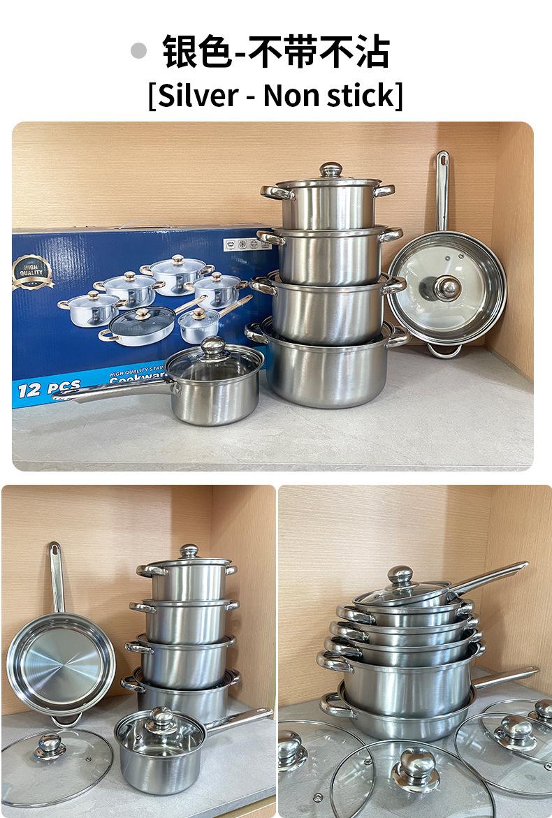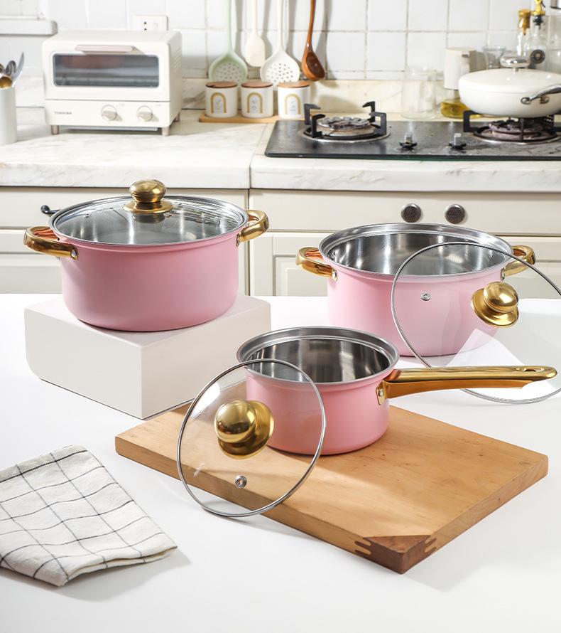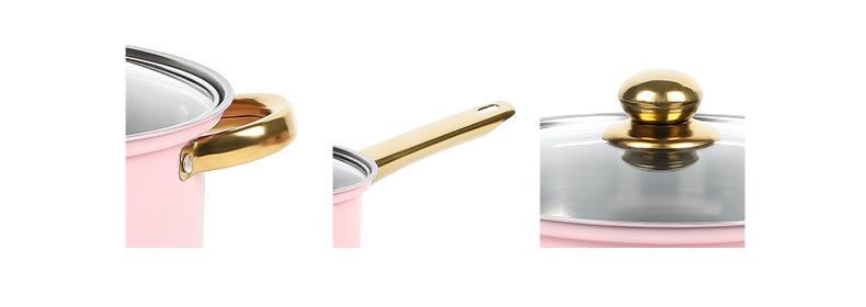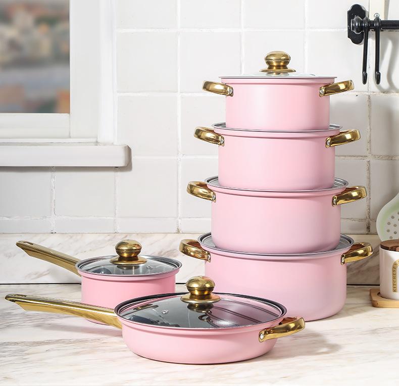 Olla dorada de acero inoxidable exclusiva de 12 piezas para sopa, sartén, leche y cocinar.